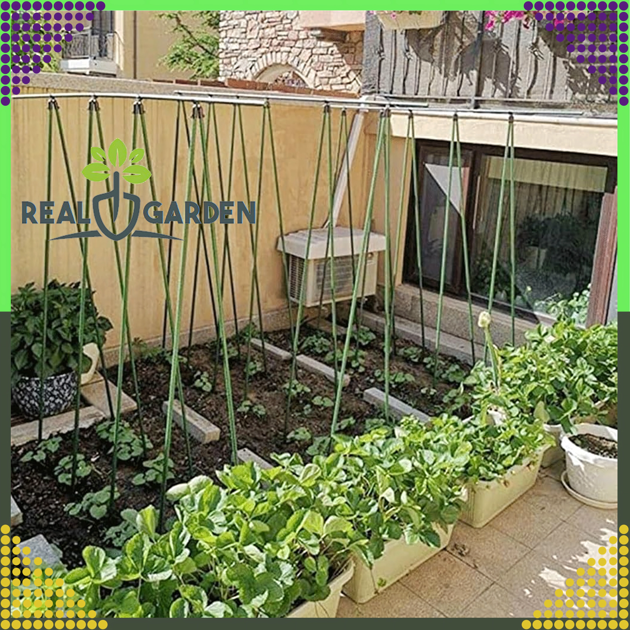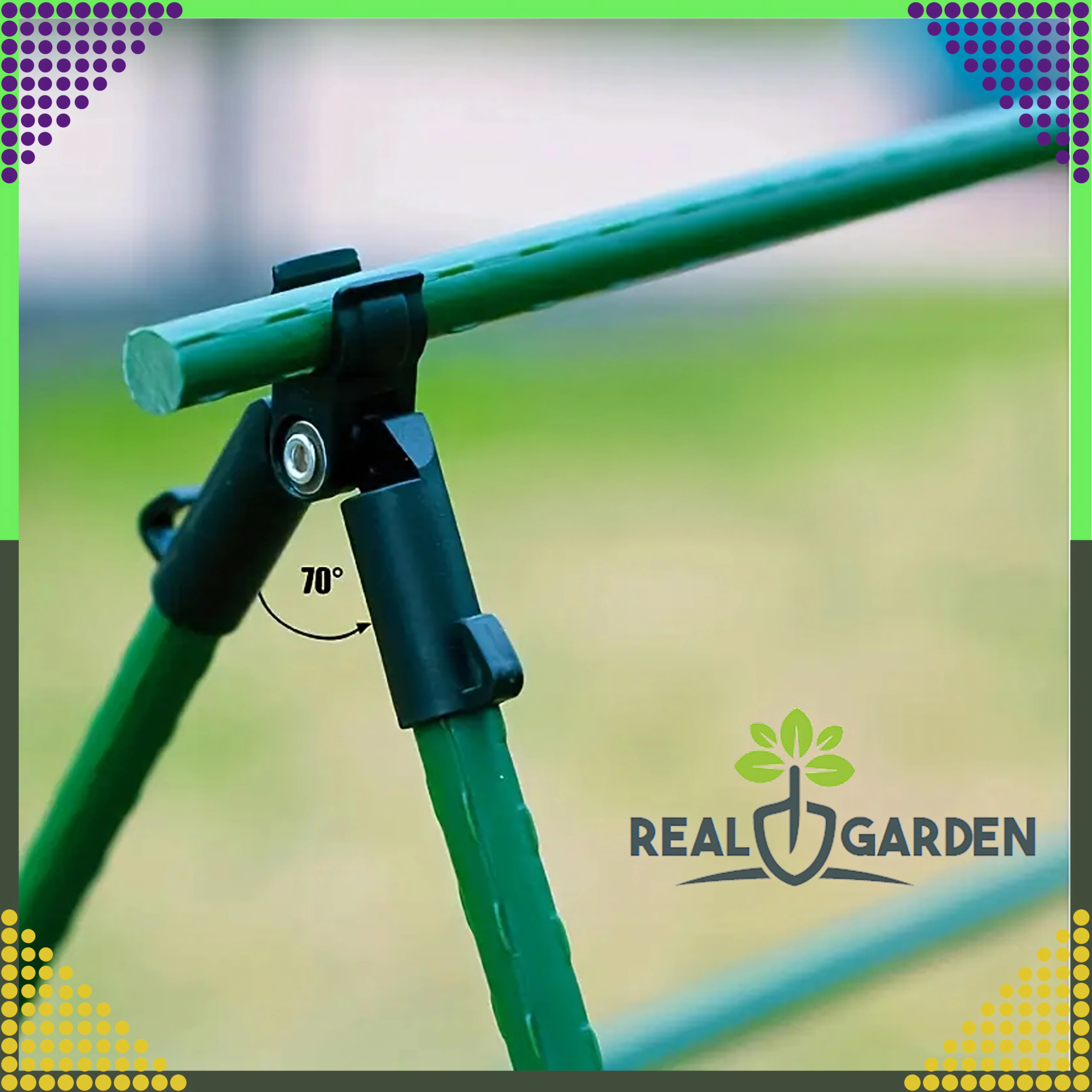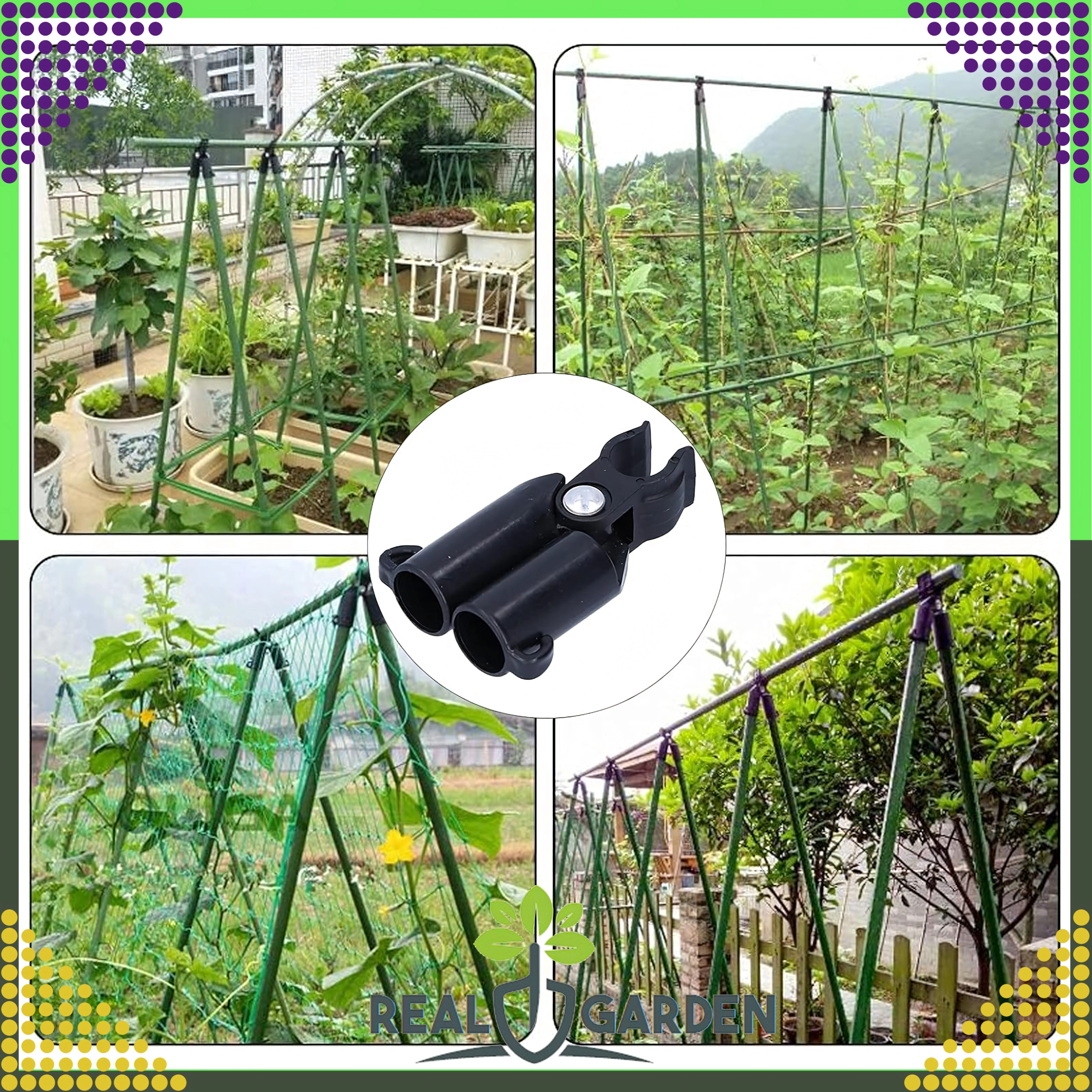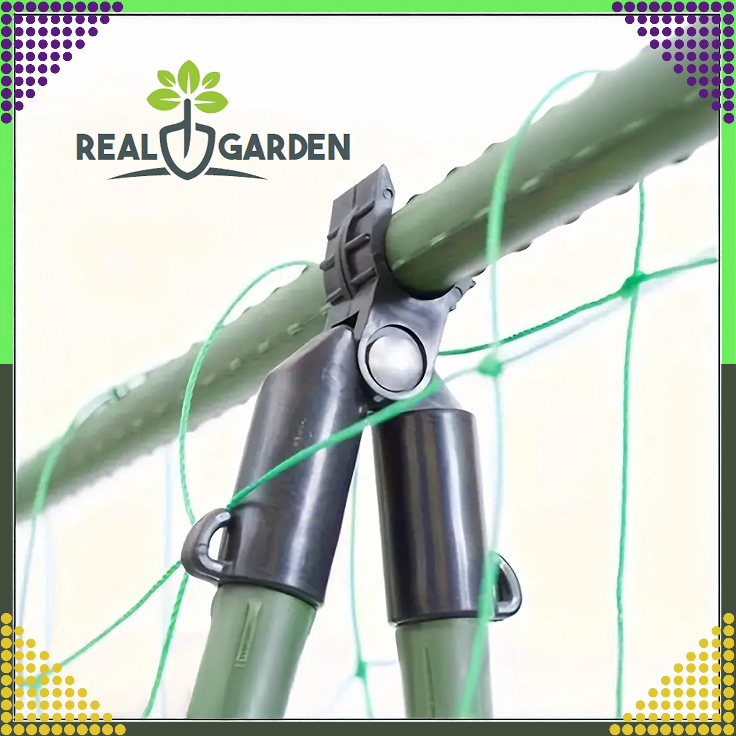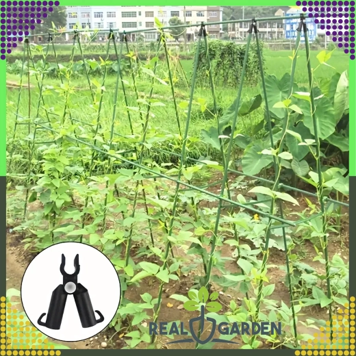 Vrcholový kloubový T‑spoj Real Garden usnadní stavbu rámů, A‑konstrukcí a opor pro rajčata, fazole či okurky. Díky kombinaci pevného plastu a kovových prvků zajišťuje stabilní spojení zahradních tyčí o průměru 9 mm a zvládne i dlouhodobé venkovní použití.
