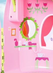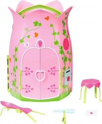 Objevte svět fantazie s Domečkem Psací Příběhy BABY born, kde každý roh podněcuje k novým příběhům. Otevřením domečku ve tvaru květiny se otevírá překrásný interiér vybavený stolečkem, krbem a houpačkou zavěšenou ze stropu herny. Na stěně je přihrádka pro uschování kouzelné hůlky, takže hraní nikdy nekončí.