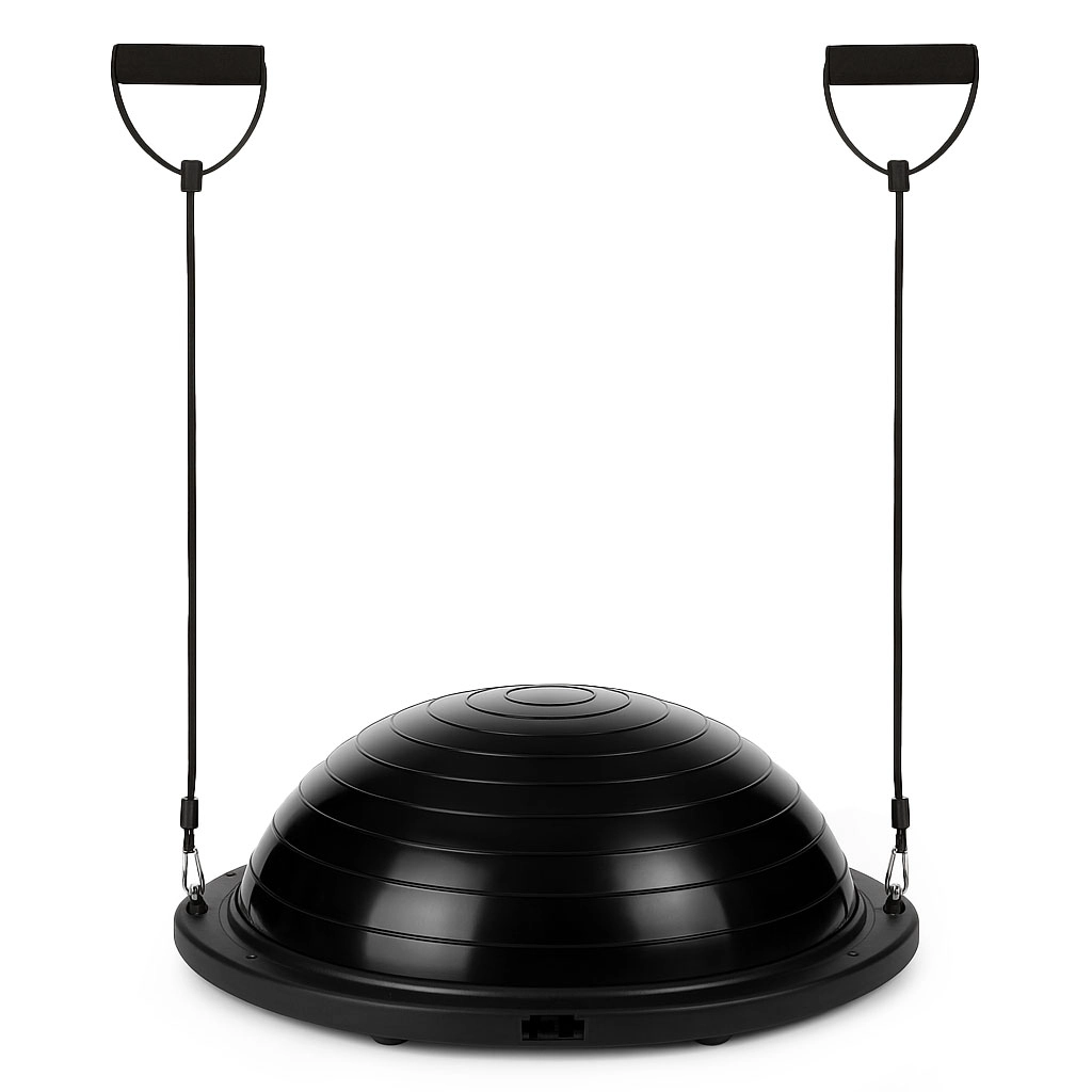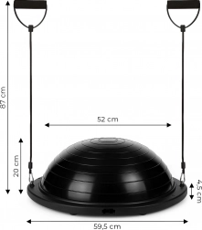 Díky možnostem cvičení na obou stranách a připevněným odporovým gumám zvládnete balanční a stabilizační cviky, posilování středu těla i tahové cviky horní poloviny. Po tréninku polokouli snadno složíte do kompaktní podoby a uložíte pod postel nebo do skříně. Nožní pumpa s dvěma nástavci umožní rychlé nafouknutí i vyfouknutí.