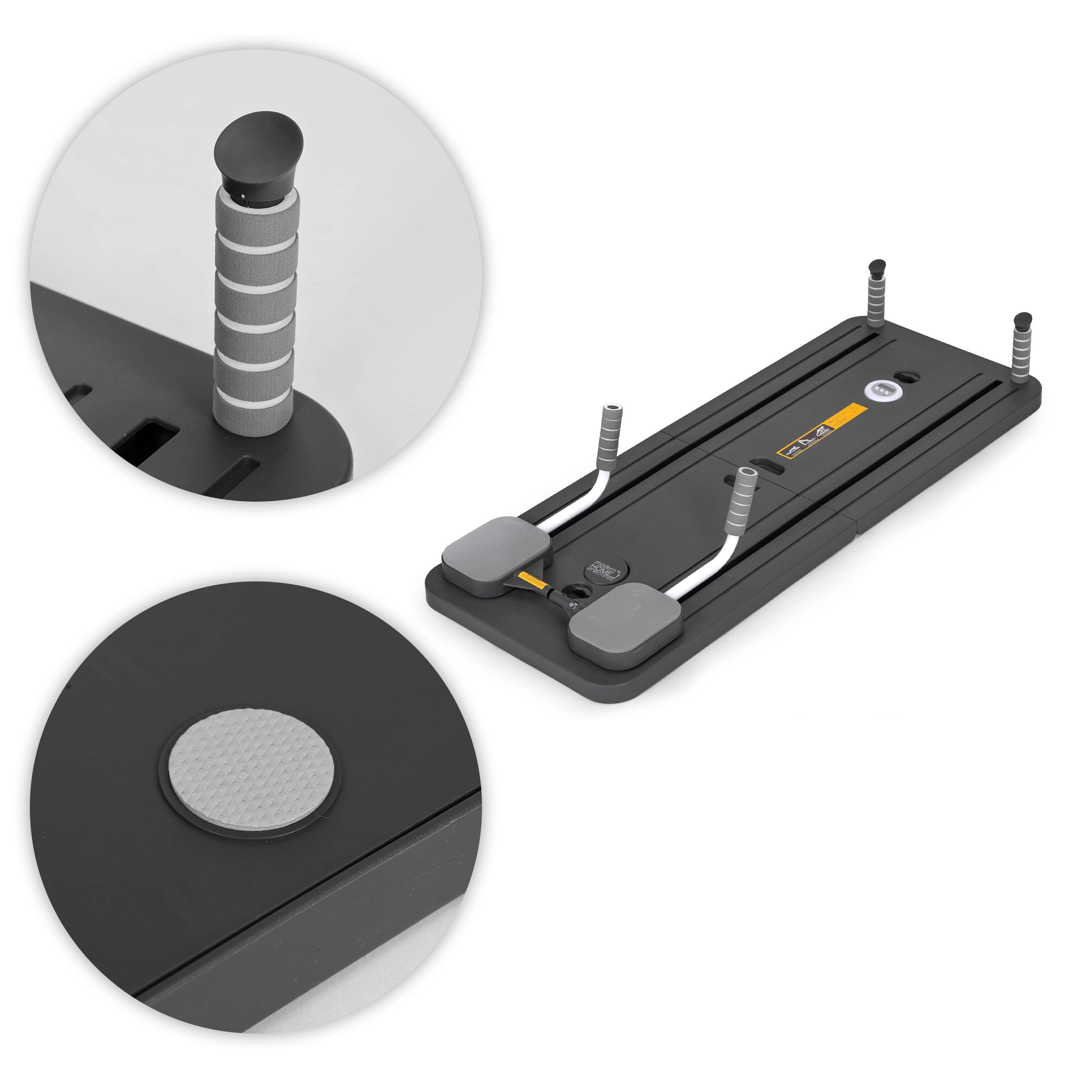 Protiskluzové podložky drží desku pevně na místě, zatímco pěnové rukojeti poskytují jistotu a komfort i během intenzivních sérií.