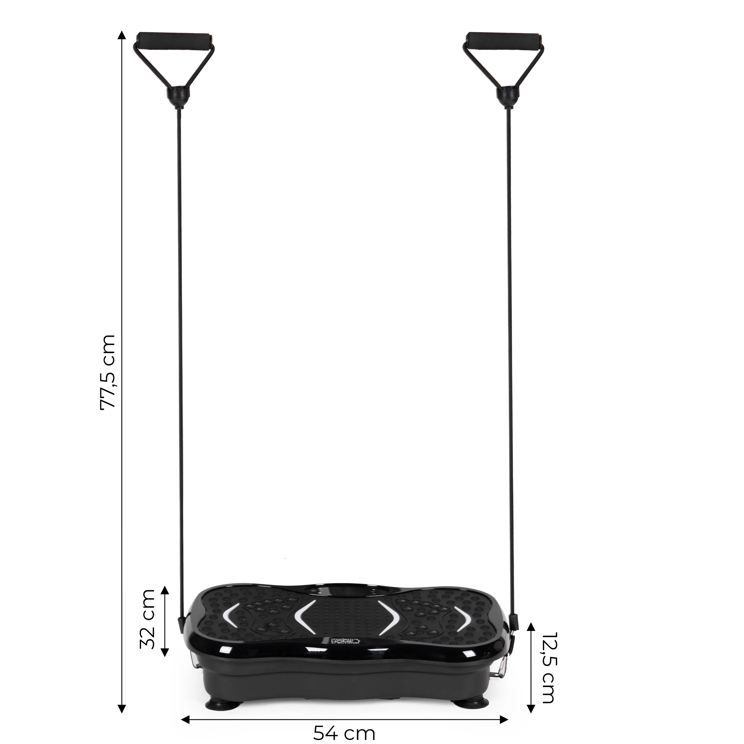 Domácí vibrační plošina pro tvarování postavy, redukování celulitidy a relaxaci svalů. Nabízí 100 úrovní rychlosti, 5 programů, Bluetooth pro přehrávání hudby, bezdrátové dálkové ovládání a expandéry pro posílení horní části těla. Stabilní konstrukce z ABS, protiskluzová základna a nosnost 120 kg.