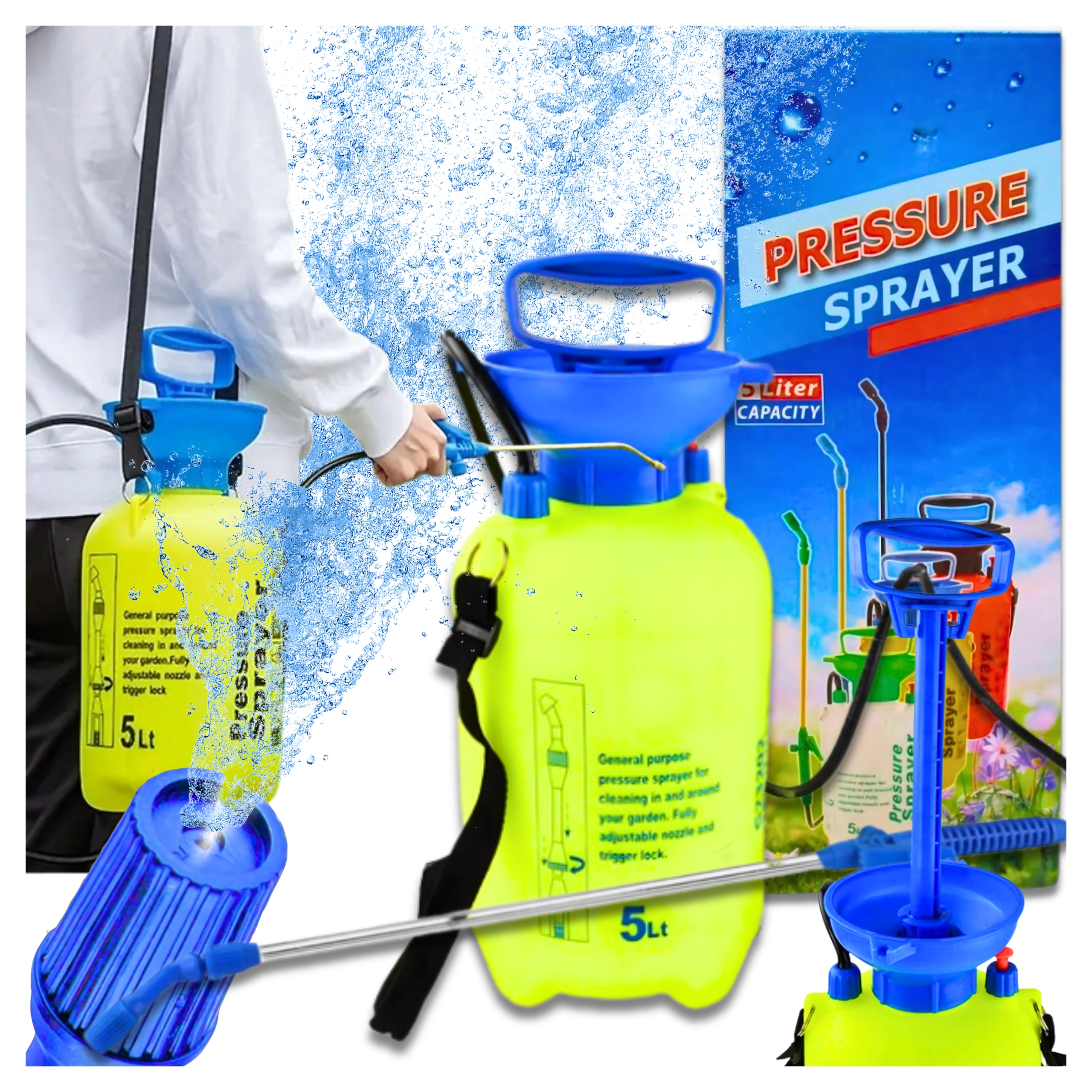 Praktický tlakový ruční postřikovač o objemu 5 l pro zahradu i domácnost. Ideální na postřik rostlin, aplikaci hnojiv, čištění povrchů a dezinfekci. Snadné použití, pohodlné nošení díky popruhu a přesné dávkování díky nastavitelné lance.