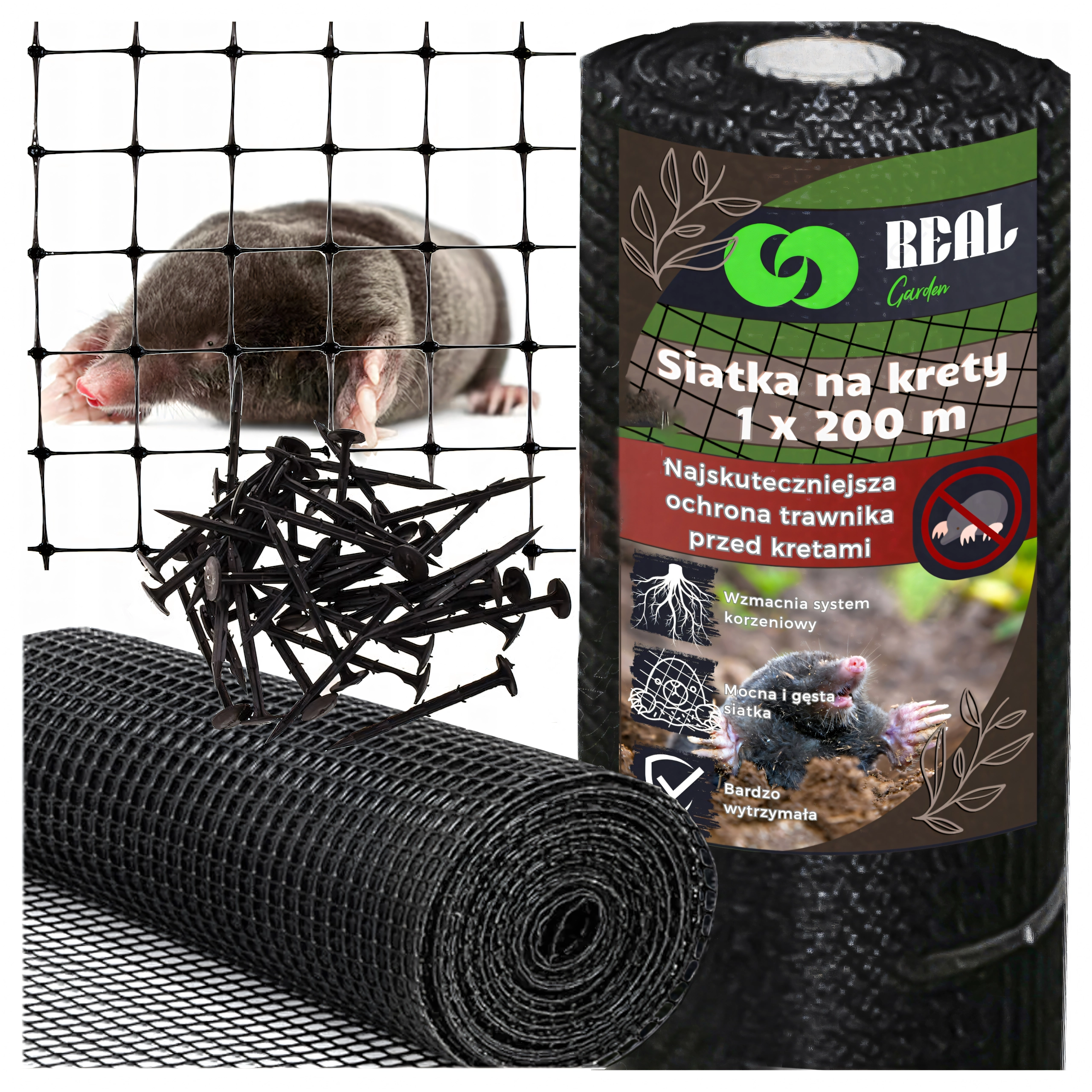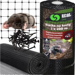 Praktická a dlouhodobá ochrana trávníku před krtinci a hlodavci. Tato černá síť s oky 16 × 16 mm a gramáží 30 g/m² se pokládá pod trávník a účinně brání prorývání krtků. Plnorozměrná role 1 × 200 m bez skládání zaručuje snadnou instalaci, součástí je 100 kotev pro pevné uchycení.