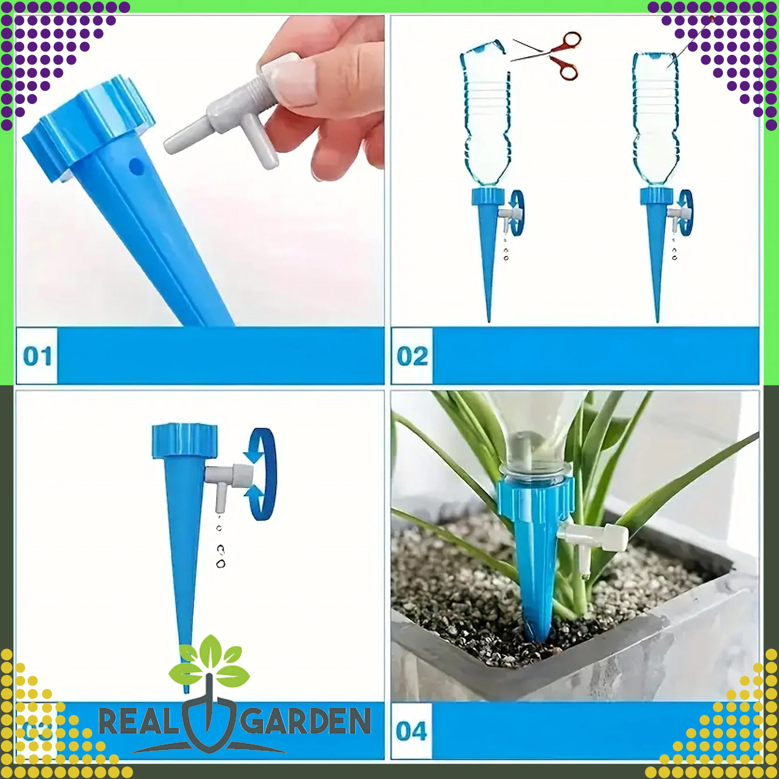 Jednoduché řešení pro všechny, kteří chtějí mít jistotu, že jejich rostliny dostanou přesně tolik vody, kolik potřebují. Zavlažovače s praktickým kohoutkem umožňují plynulou regulaci průtoku, takže se hodí pro různé typy substrátů i květináčů. Instalace je rychlá, bez nářadí – jen nasadíte na PET láhev, obrátíte a zapíchnete do květináče.