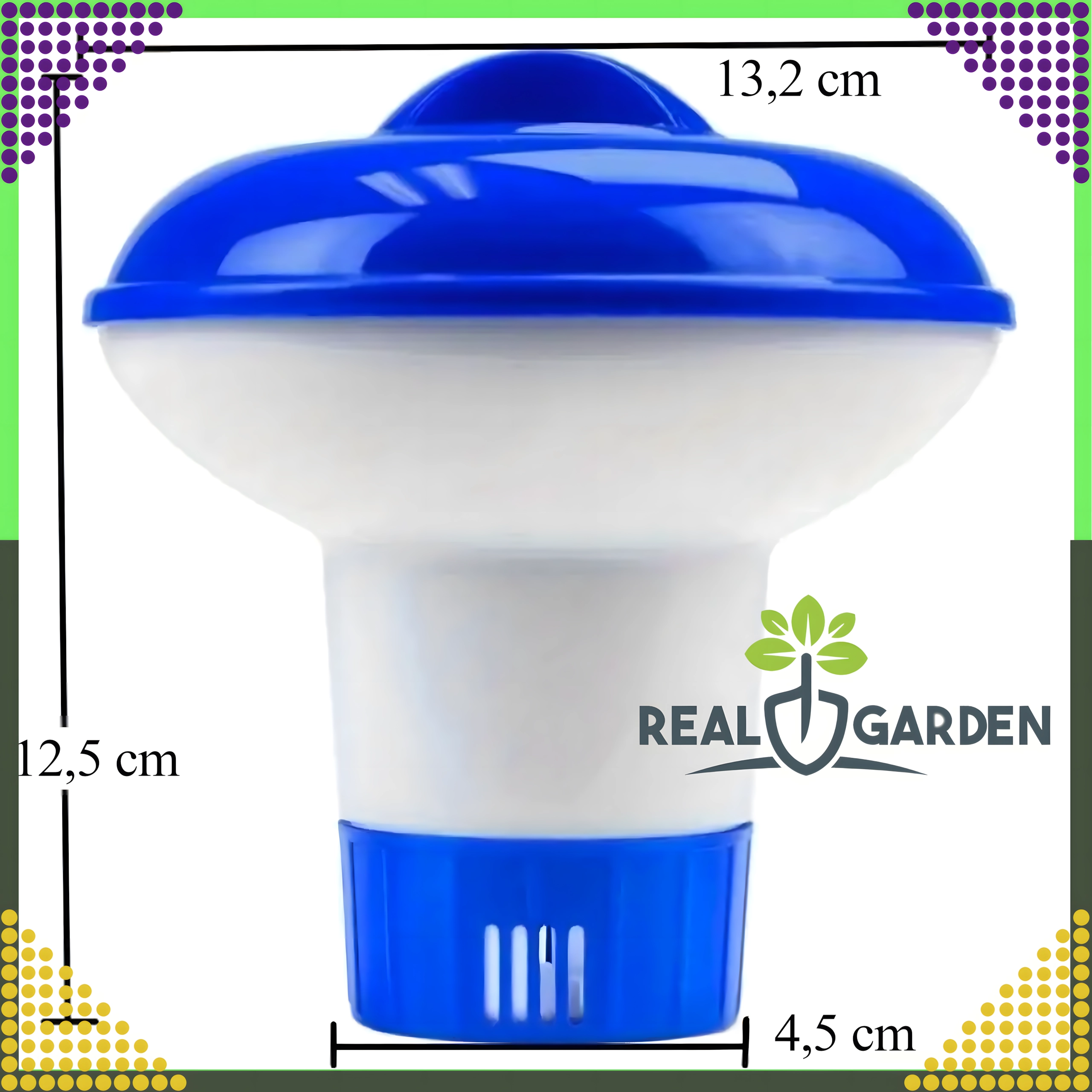 Praktický plovoucí dávkovač pro bazén zajišťuje rovnoměrné uvolňování chemie a bezpečnou údržbu vody. Je kompatibilní s tabletami 20 g i práškovou chemií, má regulaci průtoku a chrání dno bazénu před odbarvením. Vyroben z odolného plastu rezistentního vůči chlóru a UV záření.