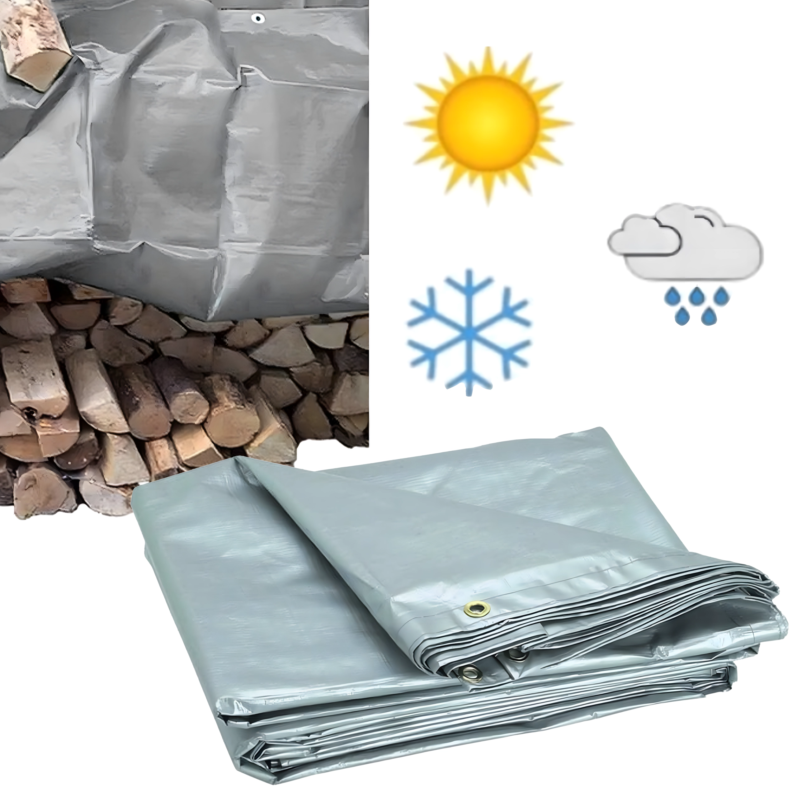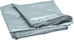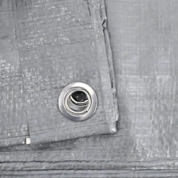 Po obvodu jsou rozmístěna kovová oka pro bezpečné vypnutí a přivázání plachty k rámům, kolíkům či nákladu. Stříbrná barva navíc pomáhá odrážet sluneční paprsky a snižovat přehřívání zakrytých věcí.