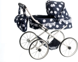 Kočárek pro panenky Ewa retro, černý s puntíky a krajkou