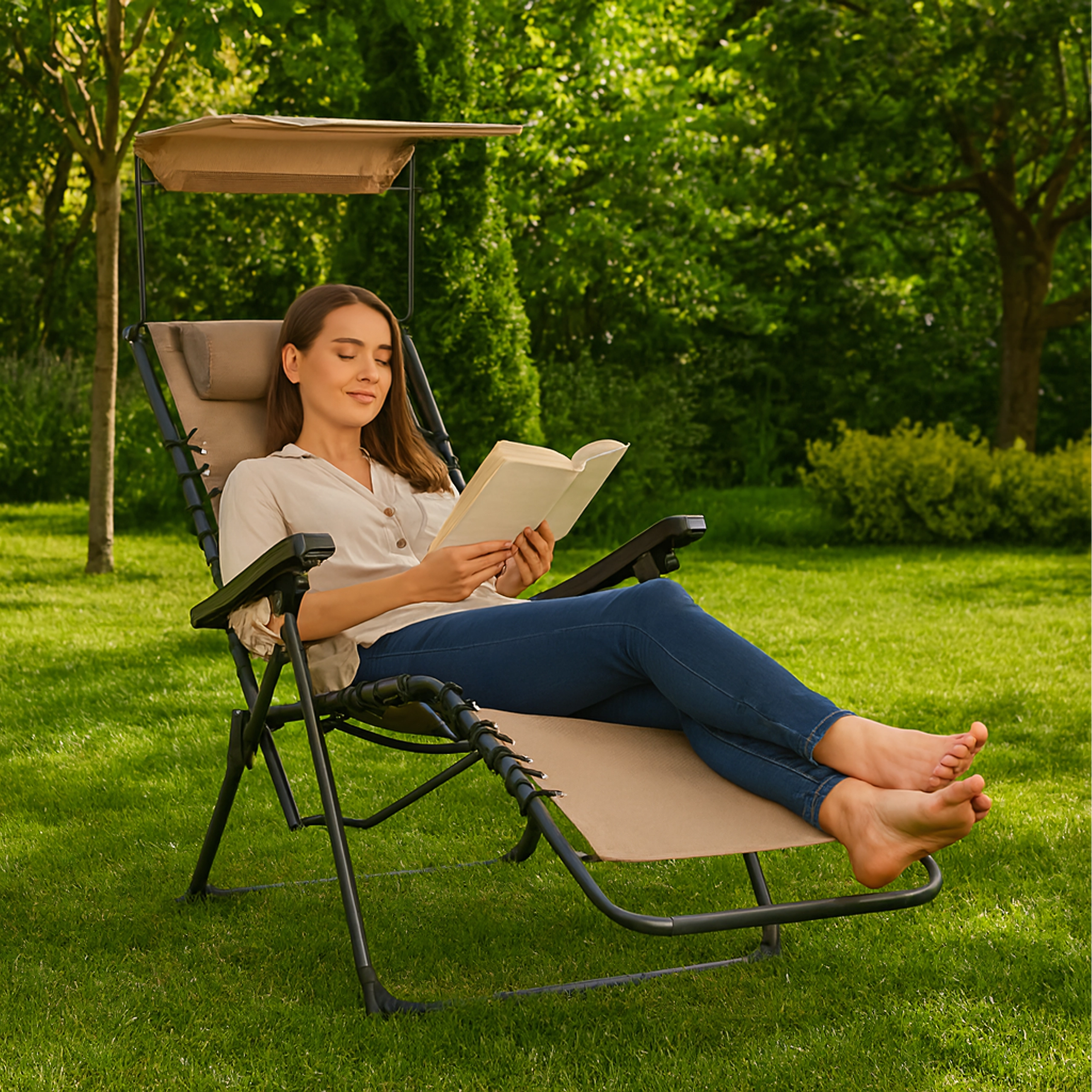 Integrovaný baldachýn si snadno nastavíte podle slunce – čtěte, odpočívejte a relaxujte bez oslnění.