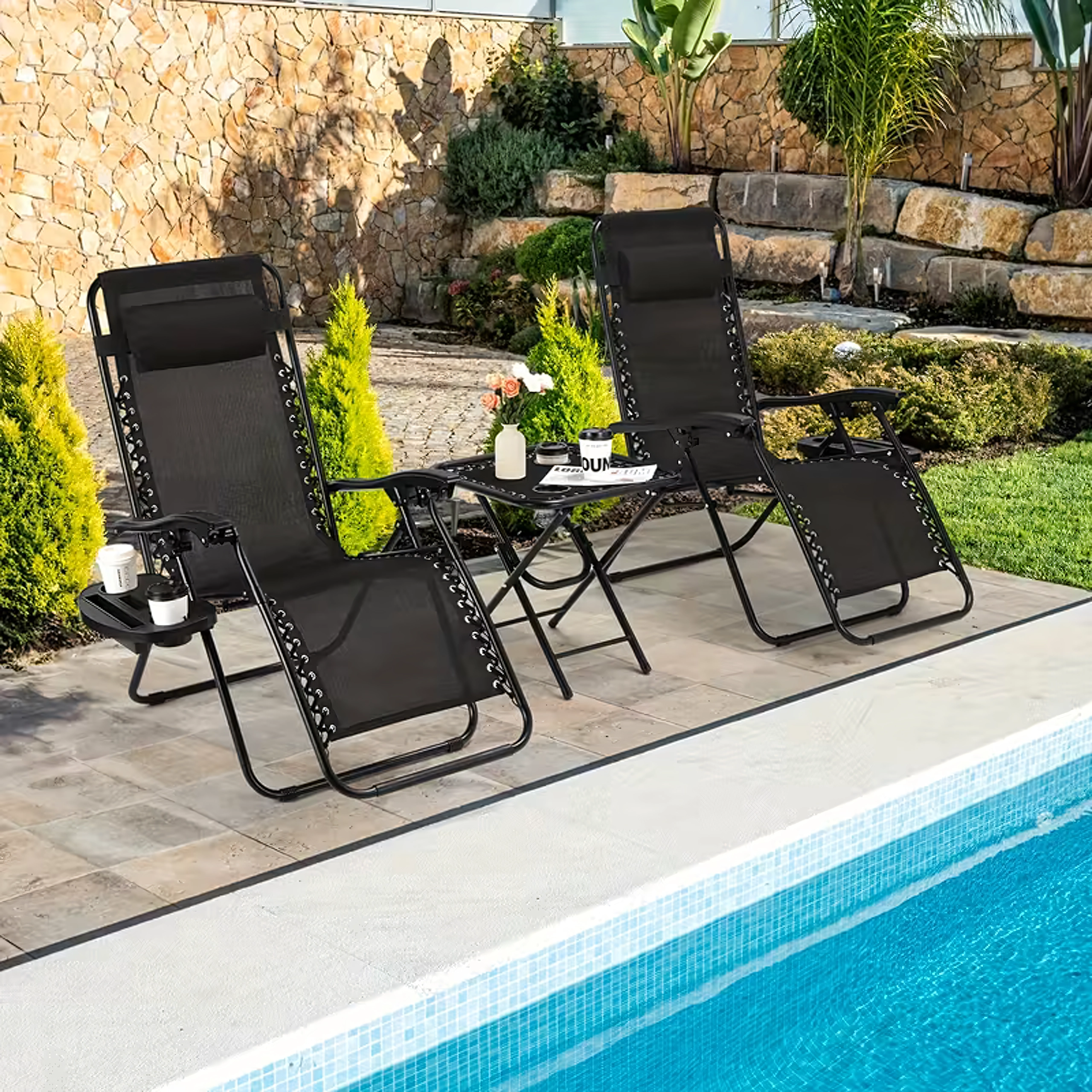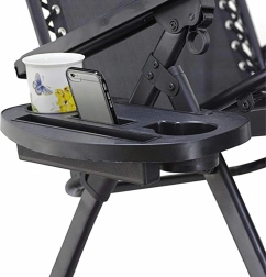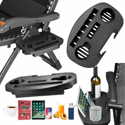 Praktický doplněk pro lehátka Zero Gravity: univerzální klipový stolík z odolného plastu s přihrádkami na vše důležité. Nabízí dva držáky na nápoje, slot na telefon nebo tablet a prostor pro drobnosti. Rychlá montáž bez nářadí – ideální na terasu, balkon, zahradu, pláž i kemping.