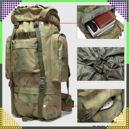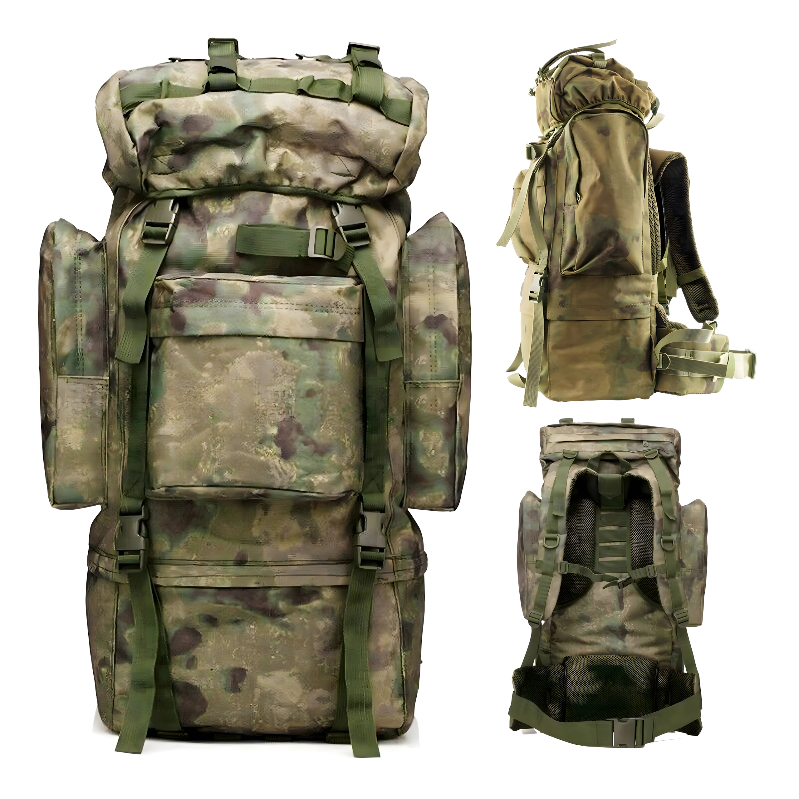 Velkoobjemový taktický batoh s kapacitou 65 litrů vyrobený z odolného polyestru 800D. Nabízí voděodolnost, pohodlný ventilační systém zad a ramenních popruhů, nastavitelný nosný systém, bederní pás a množství kapes pro přehlednou organizaci výbavy. Ideální na turistiku, kempování, survival i vojenské použití.