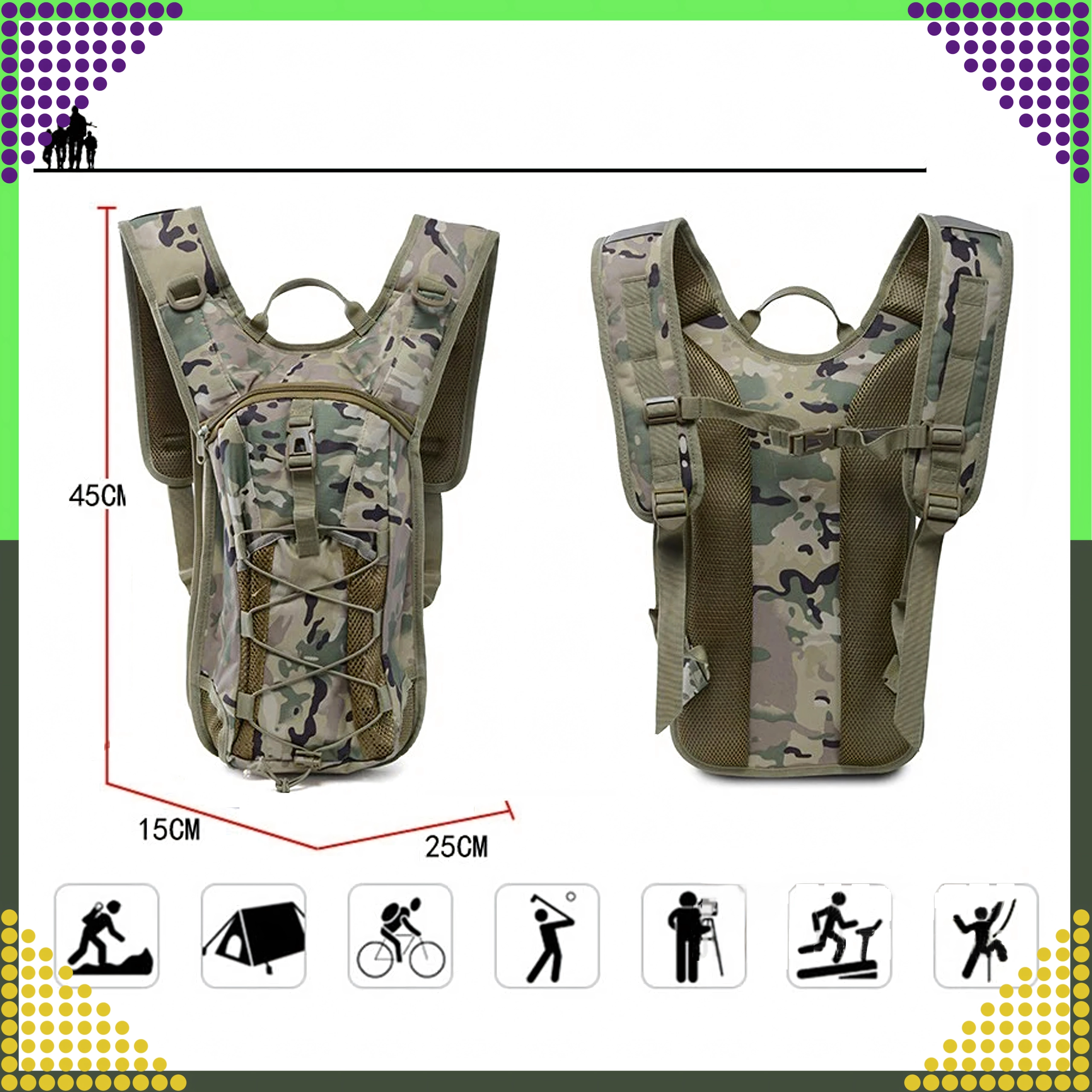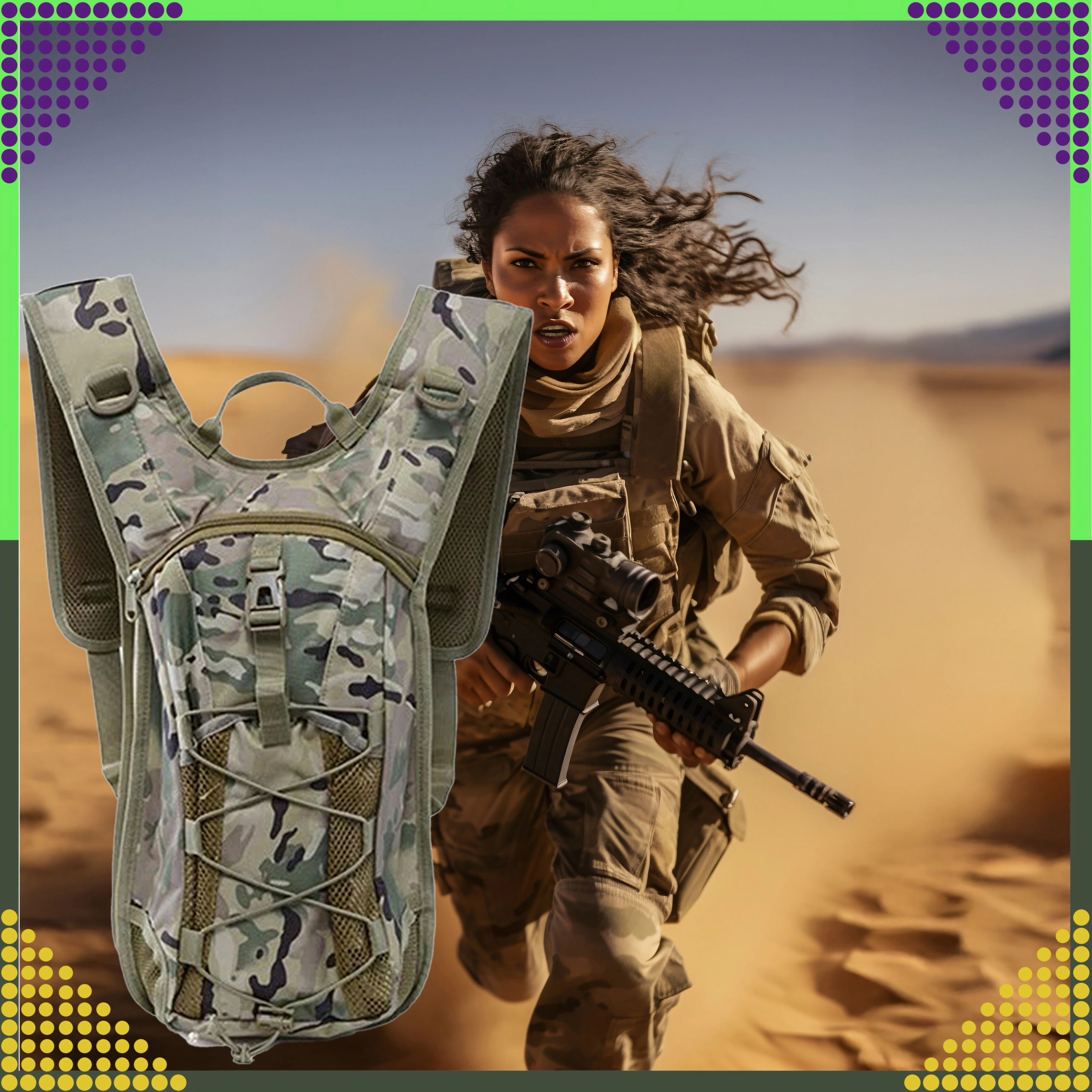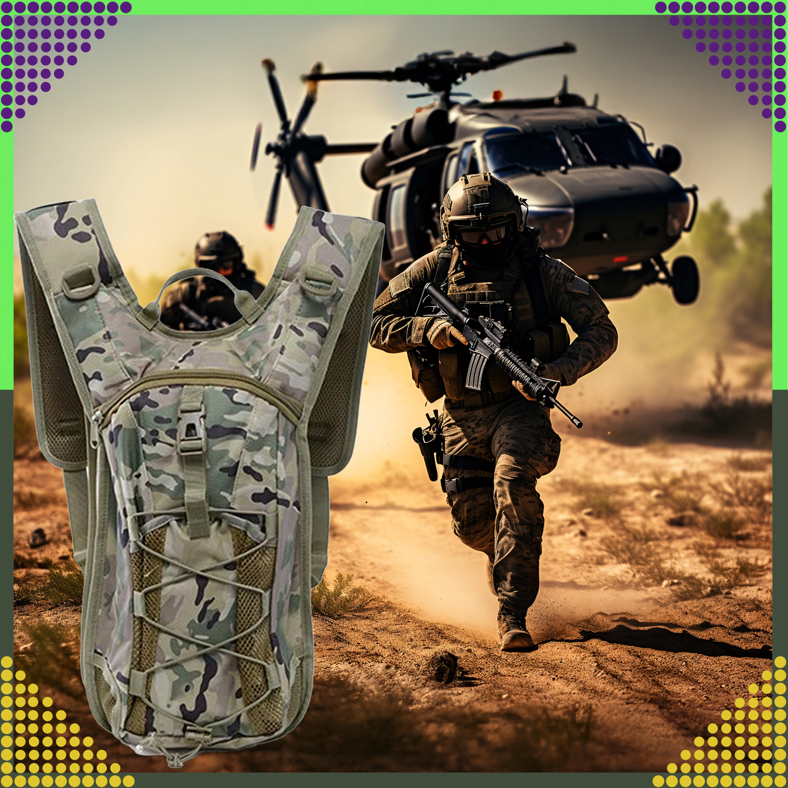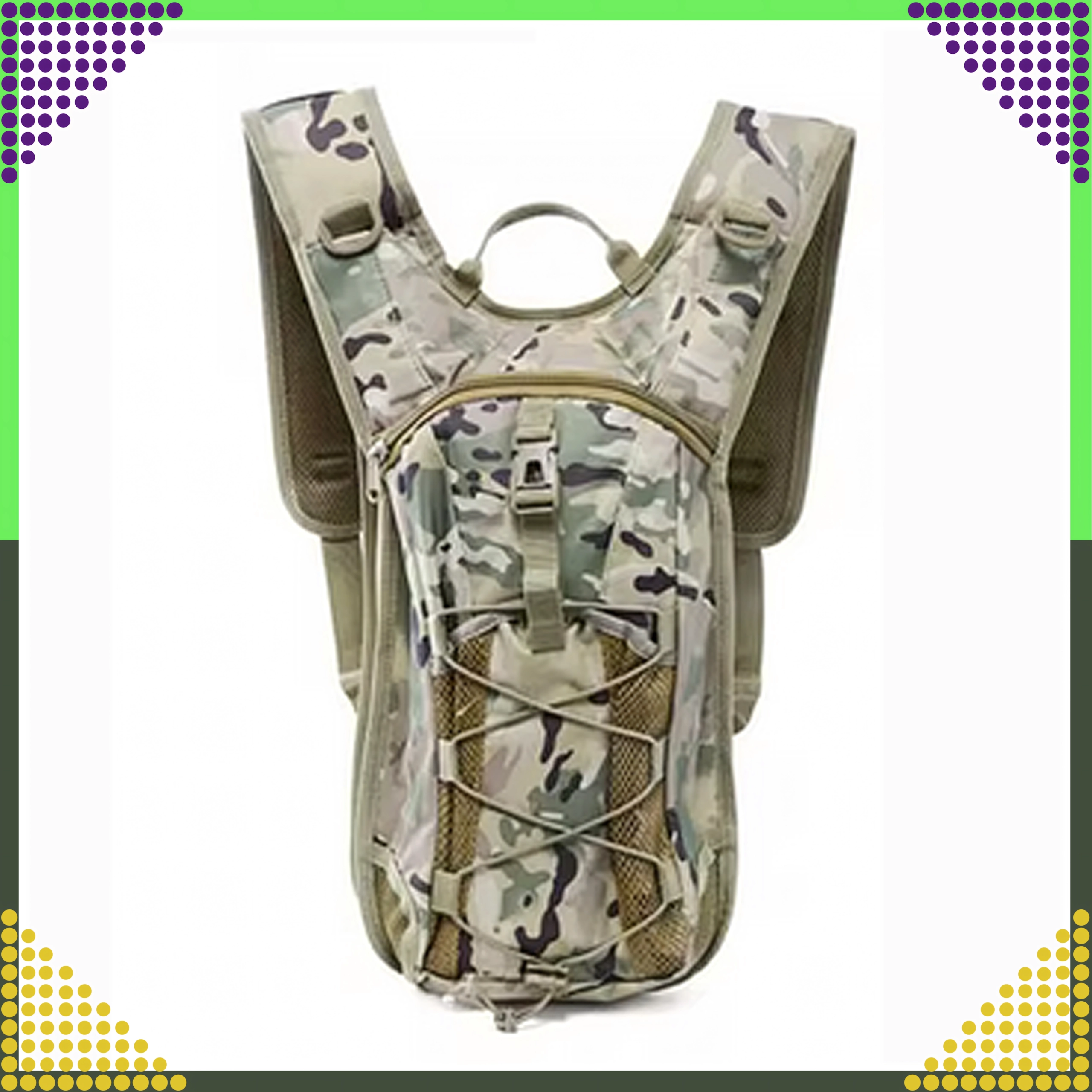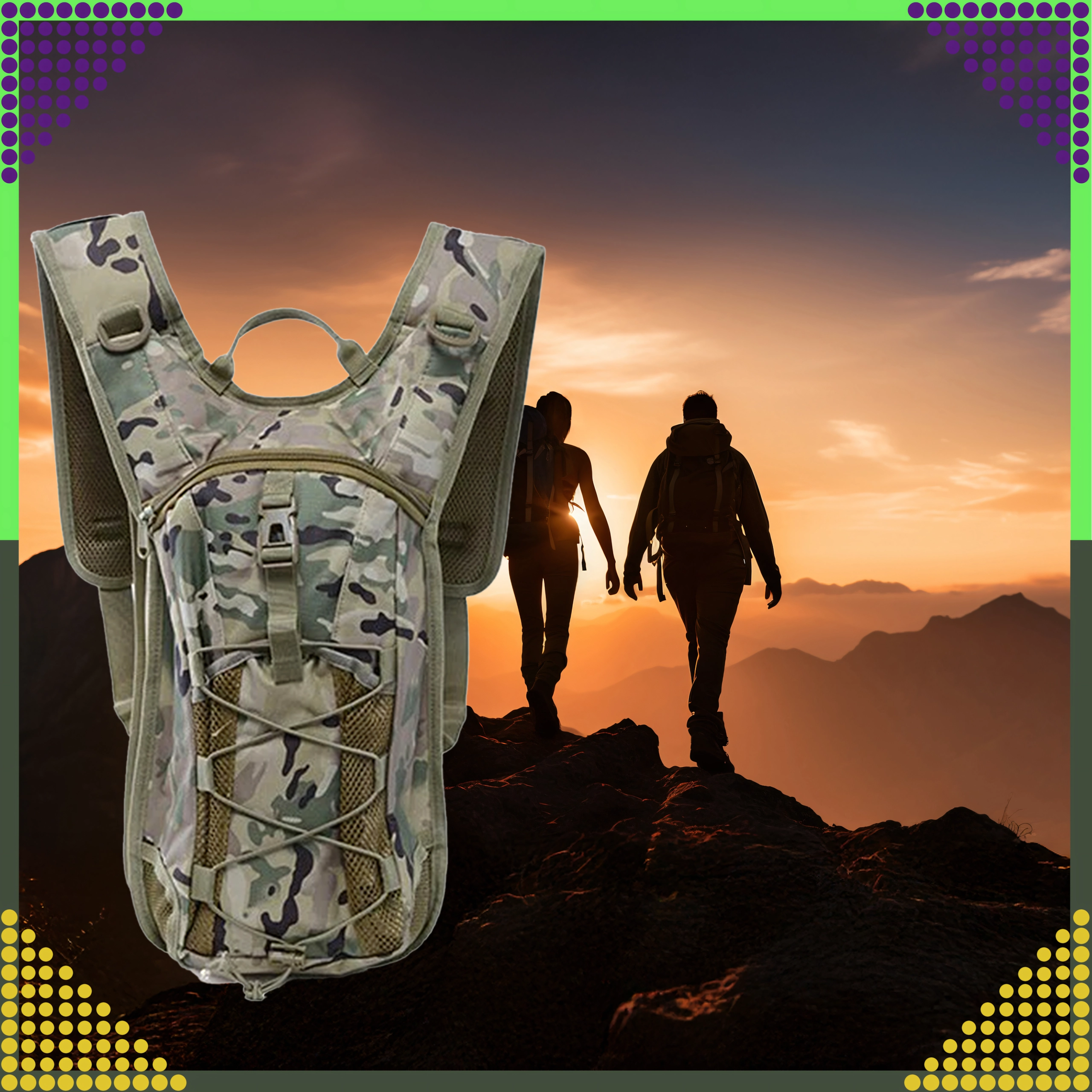 Lehký a kompaktní hydratační batoh s rezervoárem o objemu 3 l pro běh, turistiku, cyklistiku i survival. Nabízí hands‑free hydrataci, prodyšné polstrování, praktické kapsy a pevné provedení v maskovacím designu.
