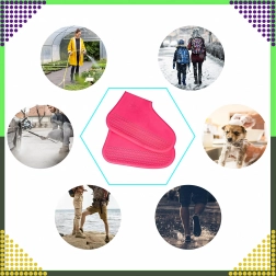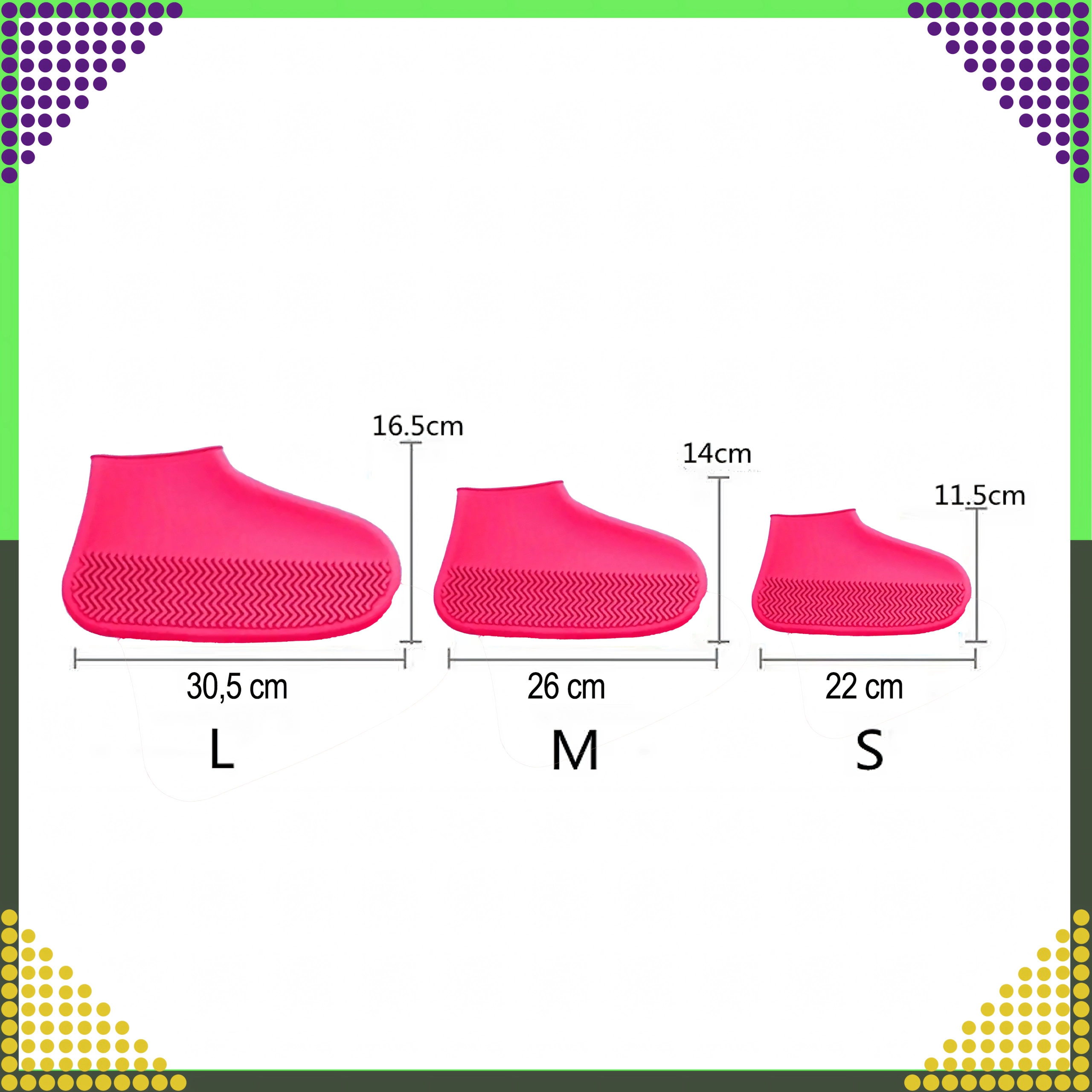 Praktické silikonové návleky na boty ve velikosti M chrání obuv před deštěm, blátem i sněhem. Jsou z pružného, voděodolného materiálu se silnou protiskluzovou podrážkou pro bezpečný krok. Snadno se navlékají, jsou lehké, opakovaně použitelné a jednoduché na čištění – ideální do města, na procházky i do přírody.
