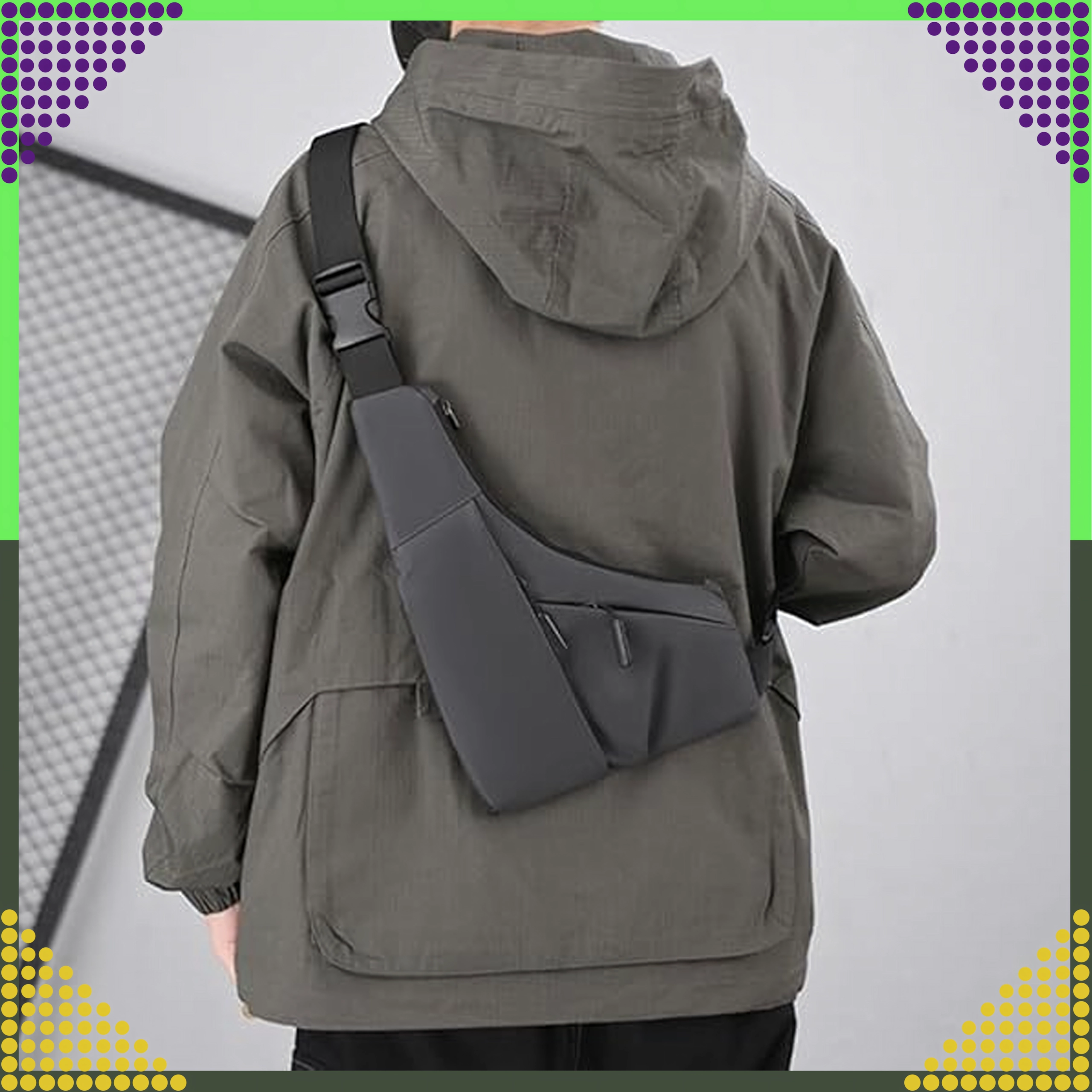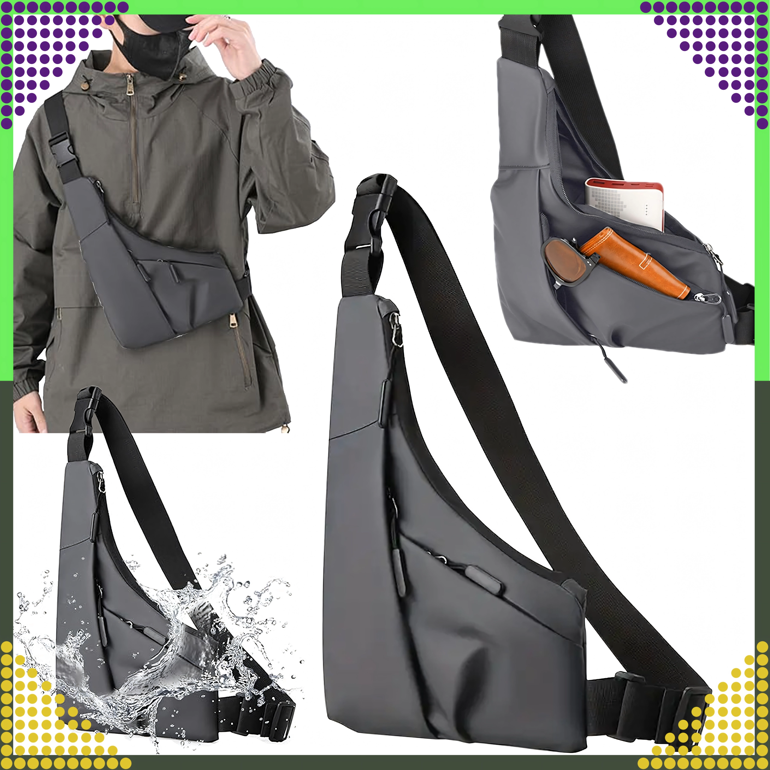Tato univerzální šedá ledvinka přes rameno kombinuje styl a funkčnost pro každodenní použití. Díky kompaktním rozměrům a promyšlené organizaci bezpečně uschová telefon, peněženku, klíče, sluchátka i brýle. Odolná, voděodolná tkanina chrání obsah proti dešti a stříkající vodě, zatímco nastavitelný popruh zajišťuje pohodlné nošení přes hruď i záda.