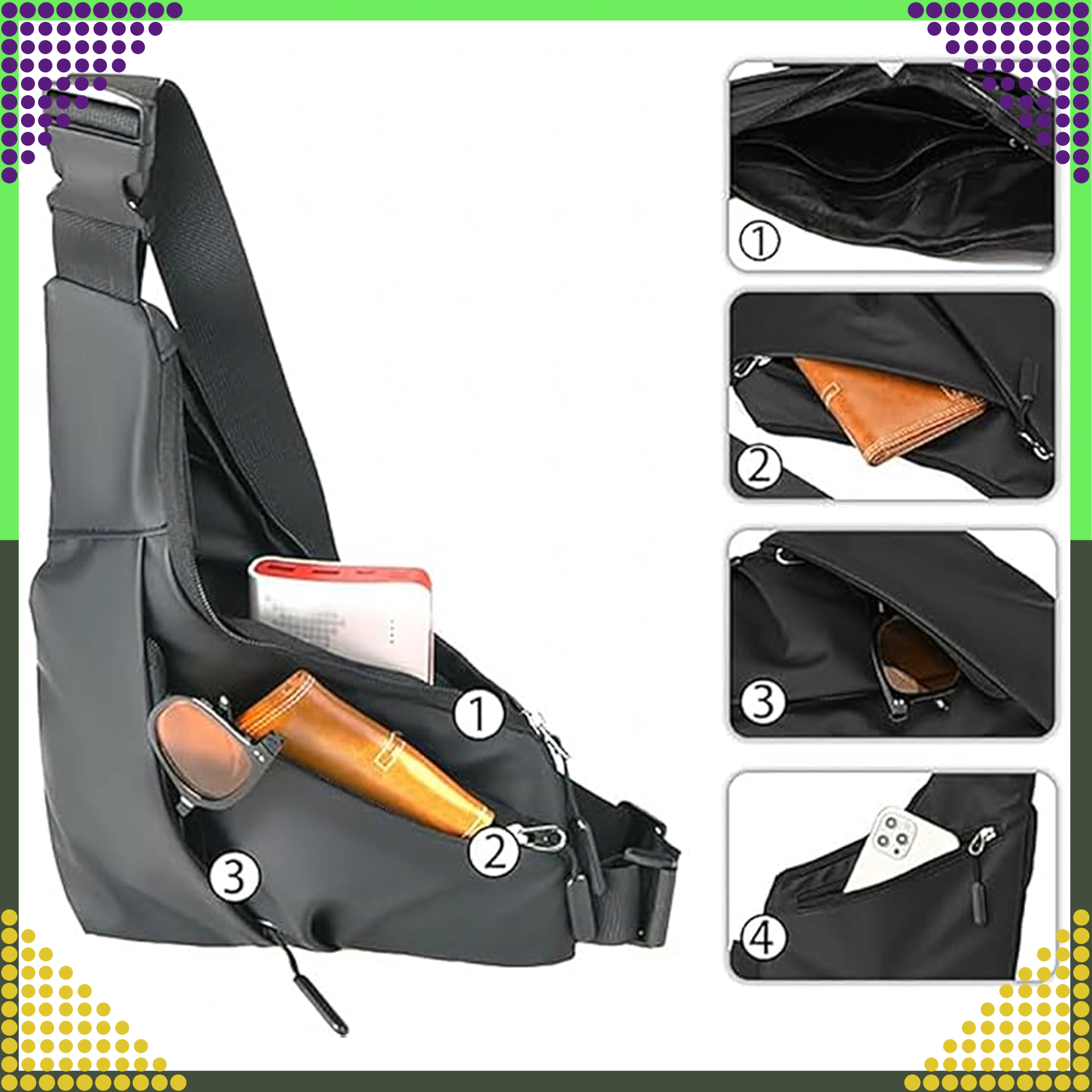 Nastavitelný ramenní popruh umožní nosit tašku přes hruď nebo na zádech. Lehká konstrukce je ideální pro každodenní pohyb, sport a cestování.