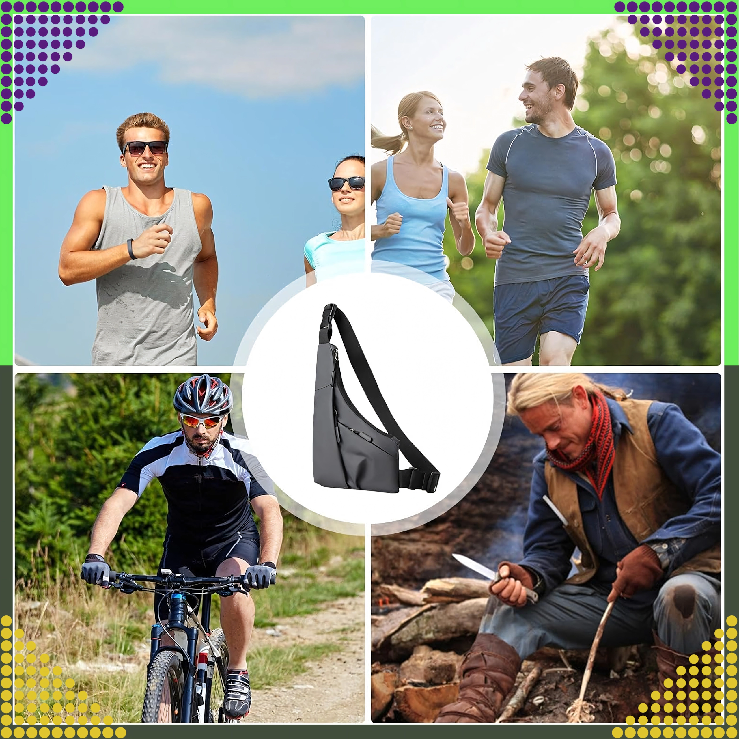 Crossbody taška je ideální na procházky, do práce, do posilovny, na kolo i na cestování. Diskrétní zadní kapsa chrání cennosti, pevné zipy a kvalitní švy zvyšují životnost. Díky nízké hmotnosti ji můžete mít na sobě celý den bez omezení.