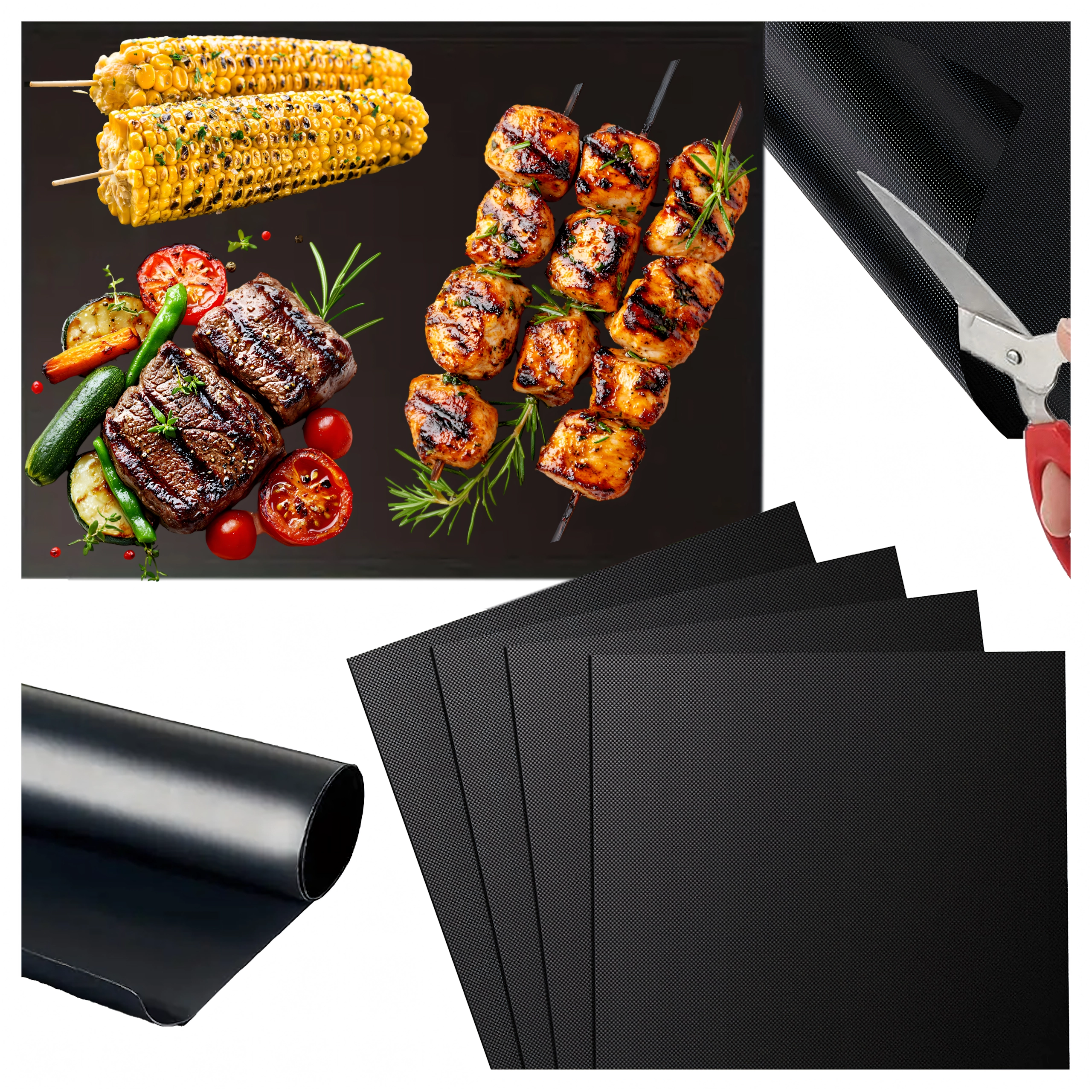 Praktická teflonová grilovací podložka pro gril i troubu v sadě 4 ks usnadní přípravu jídla bez připalování a bez tuku. Je nepřilnavá, snadno se čistí, bez PFOA a vhodná pro opakované použití až do 260 °C. Ideální na maso, ryby, zeleninu i ovoce a udržuje gril i troubu čisté.