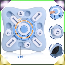 Edukativní hračka pro psy přináší smysluplnou zábavu i při krmení. Pes vyhledává pamlsky v zasouvacích přihrádkách, trénuje koncentraci a využívá přirozený instinkt. Zpomalující prvky pomáhají omezit hltání, což může pozitivně ovlivnit trávení a celkové pohodlí vašeho mazlíčka.