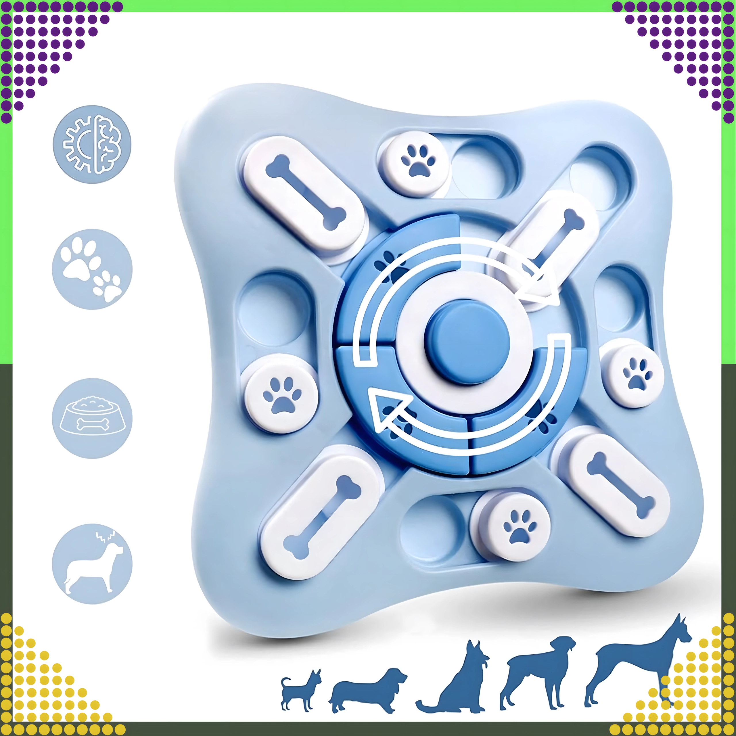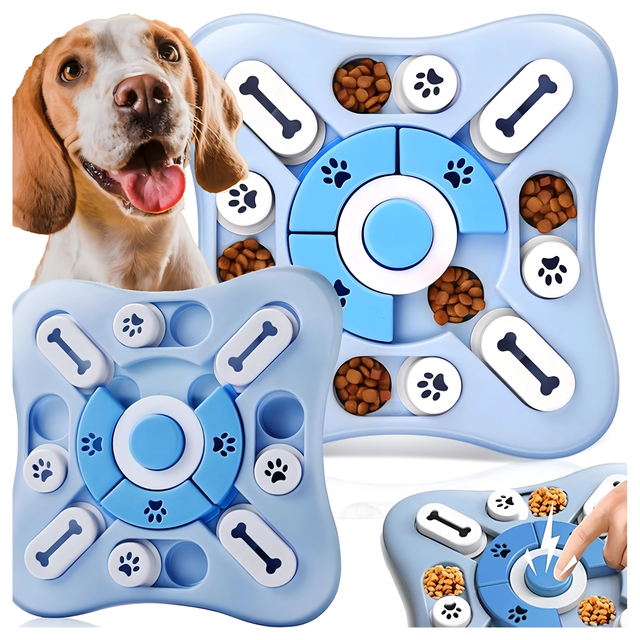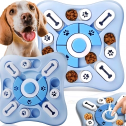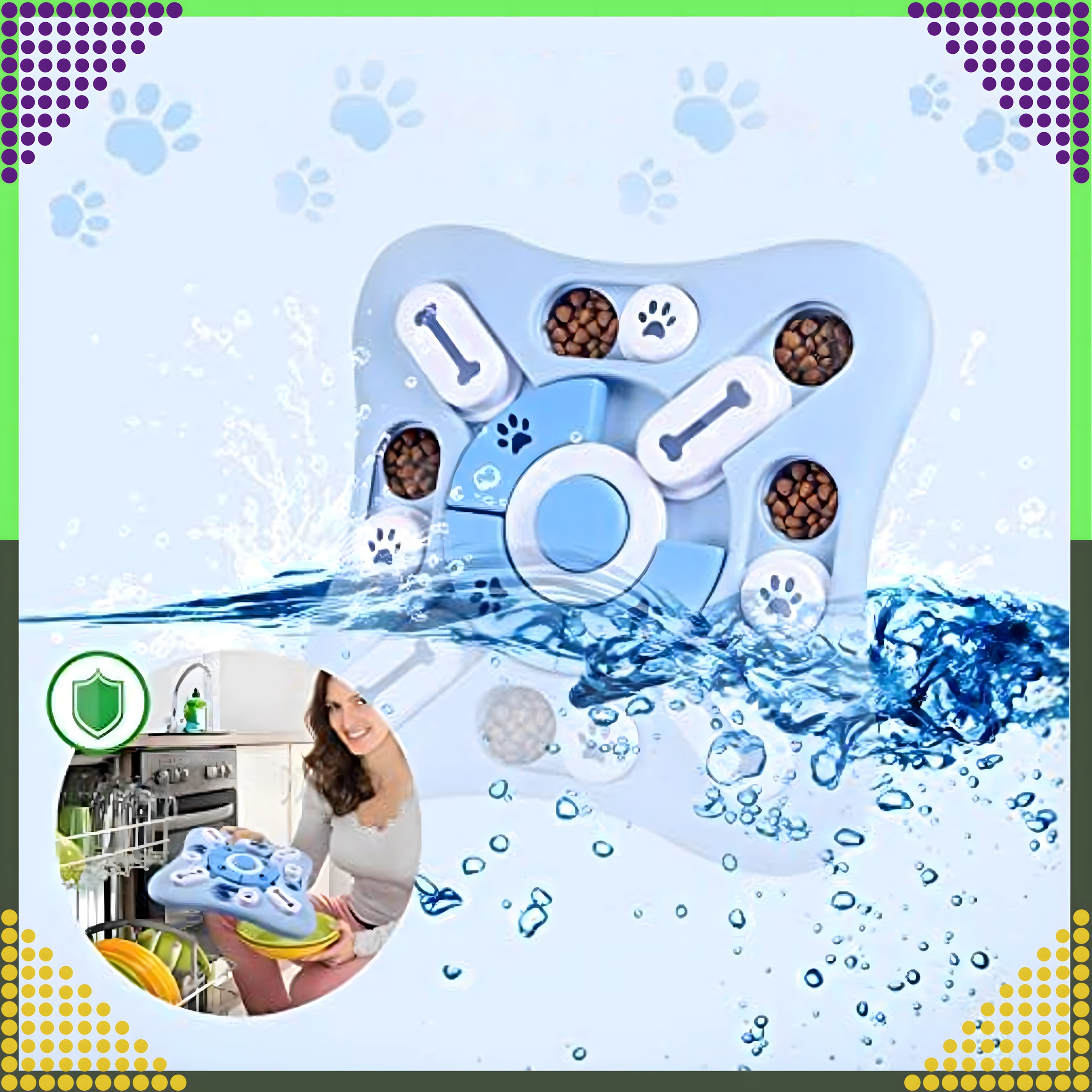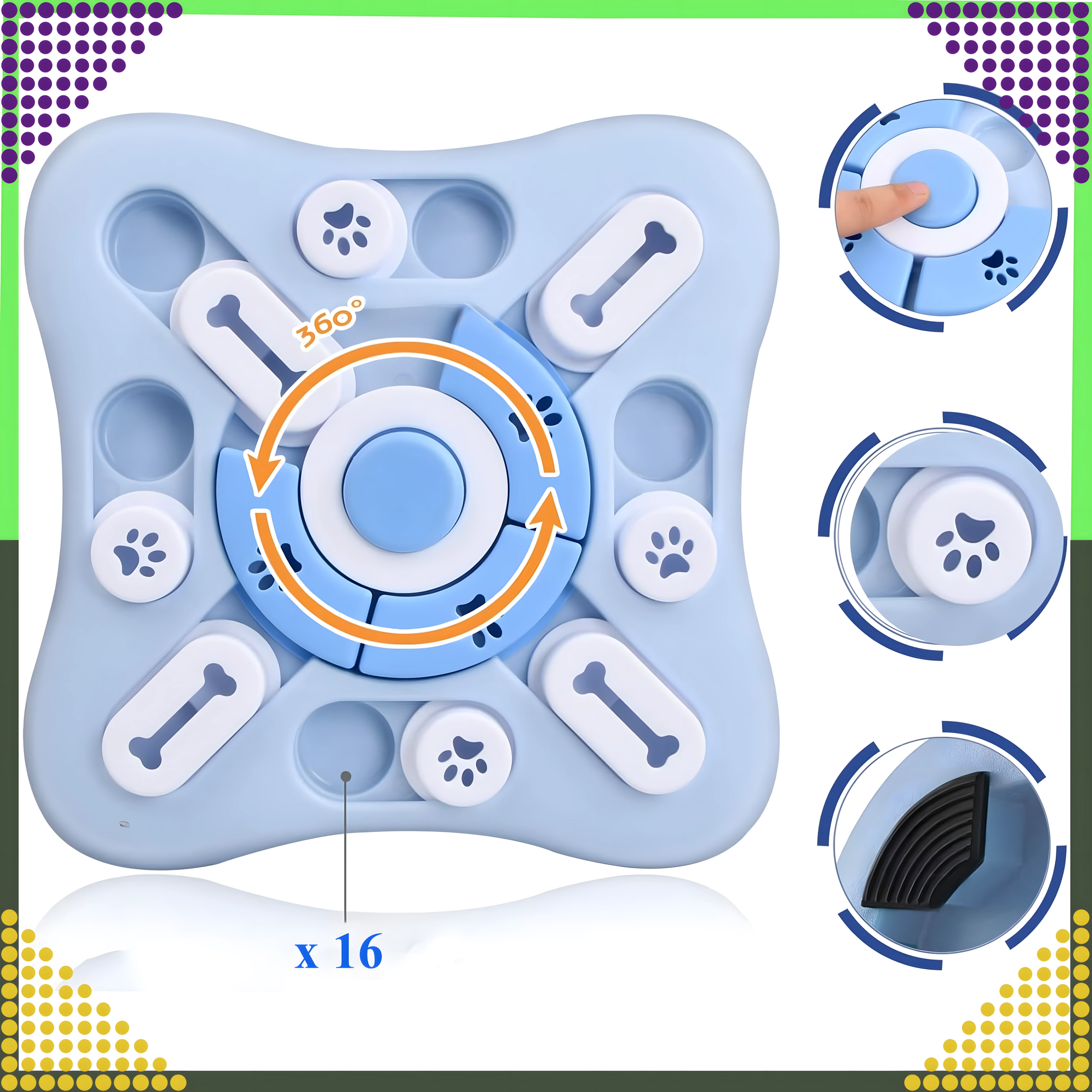 Díky promyšlené konstrukci s antiskluzovými nožičkami a snadným čištěním je ideální pro každodenní použití. Centrální pískátko zvyšuje motivaci ke hře a posouvací schovky na pamlsky s motivy tlapek a kosti jsou intuitivní pro ovládání tlapkou.