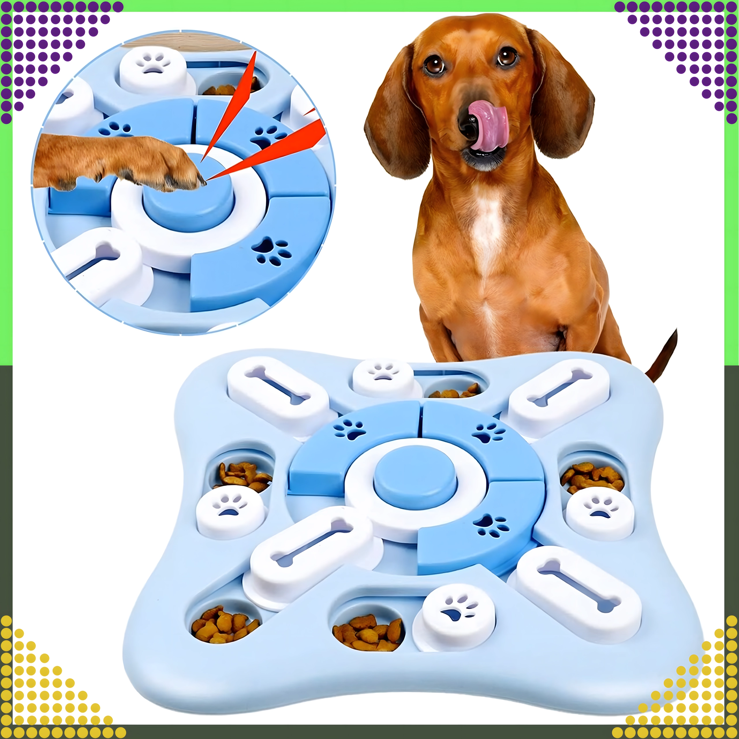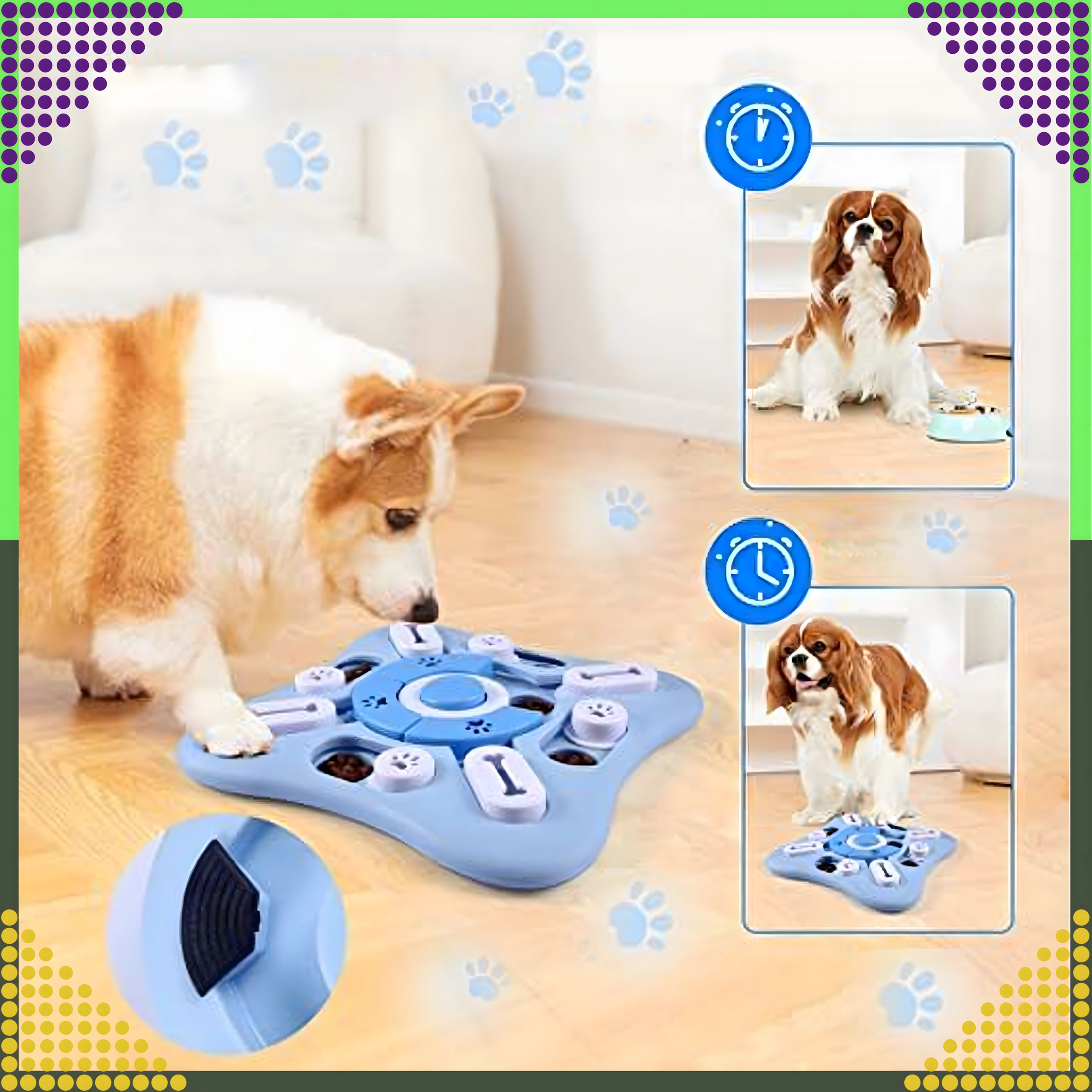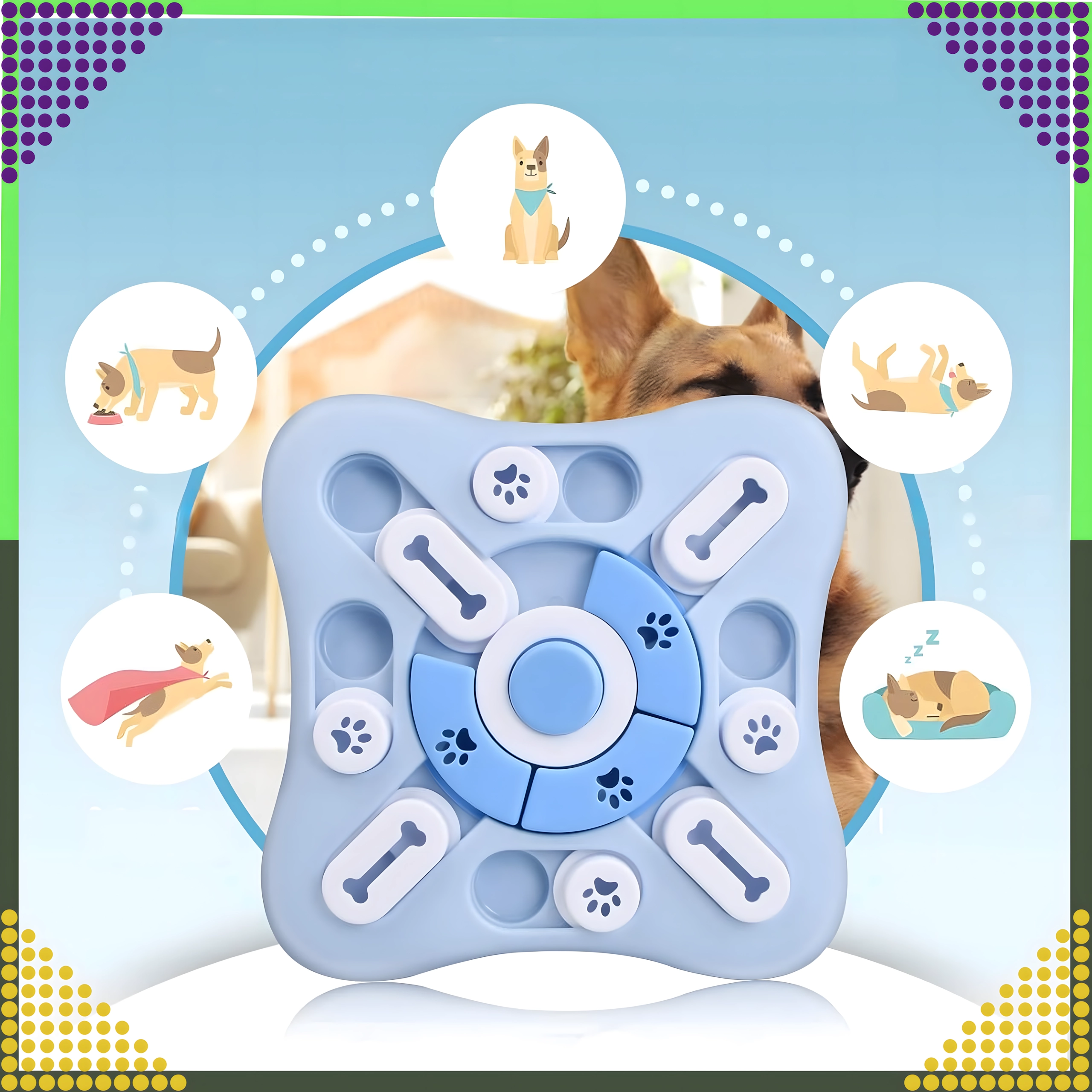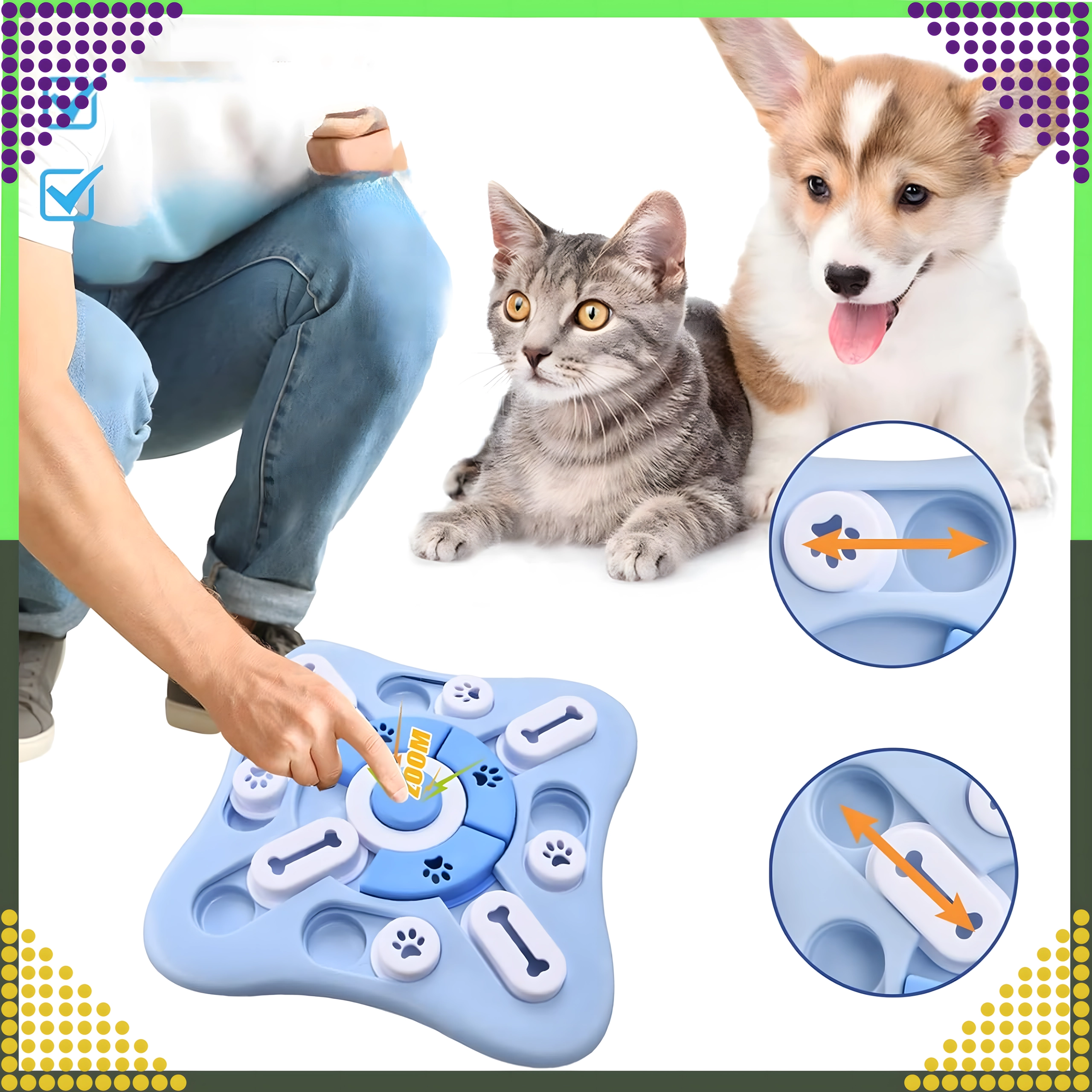 Díky promyšlené konstrukci s antiskluzovými nožičkami a snadným čištěním je ideální pro každodenní použití. Centrální pískátko zvyšuje motivaci ke hře a posouvací schovky na pamlsky s motivy tlapek a kosti jsou intuitivní pro ovládání tlapkou.