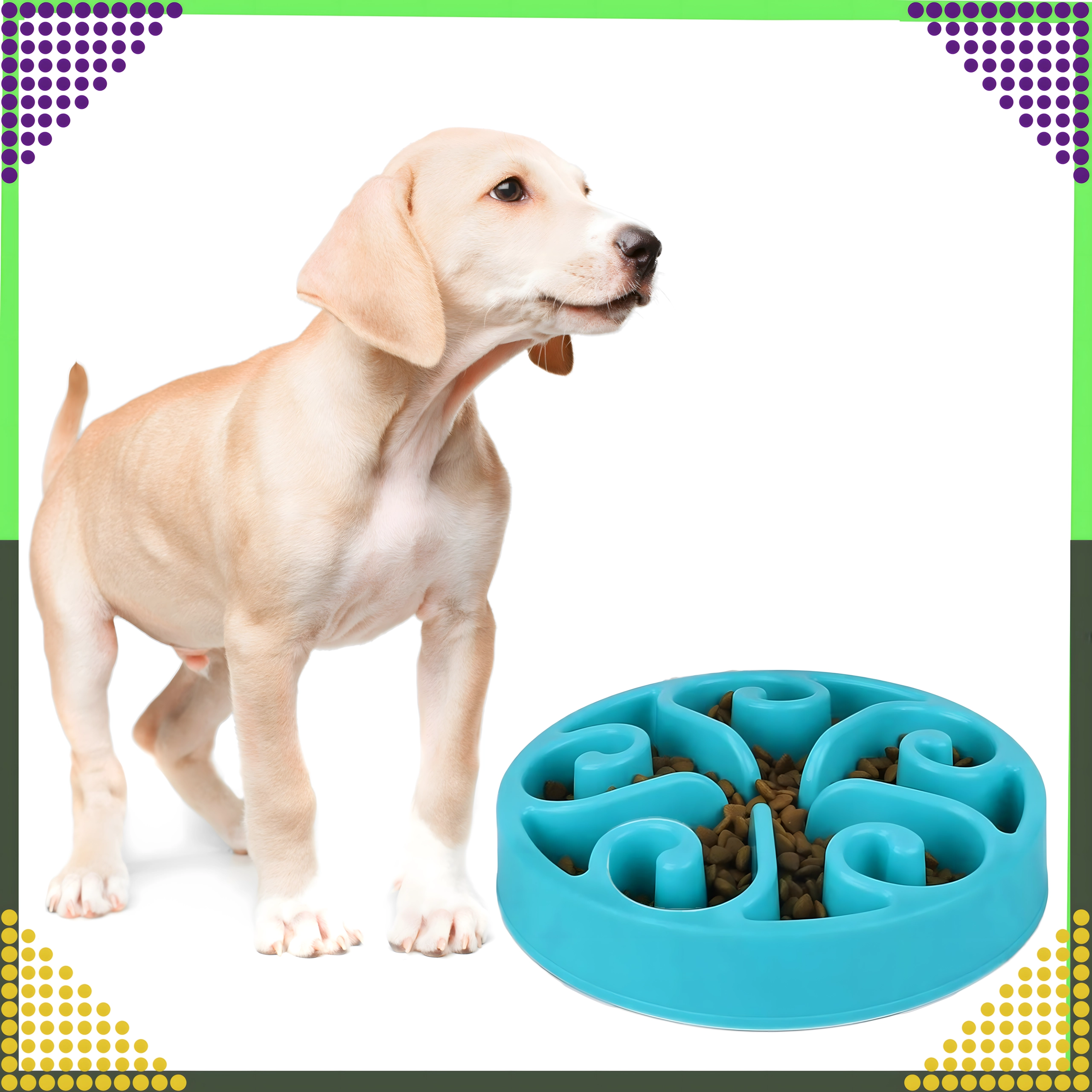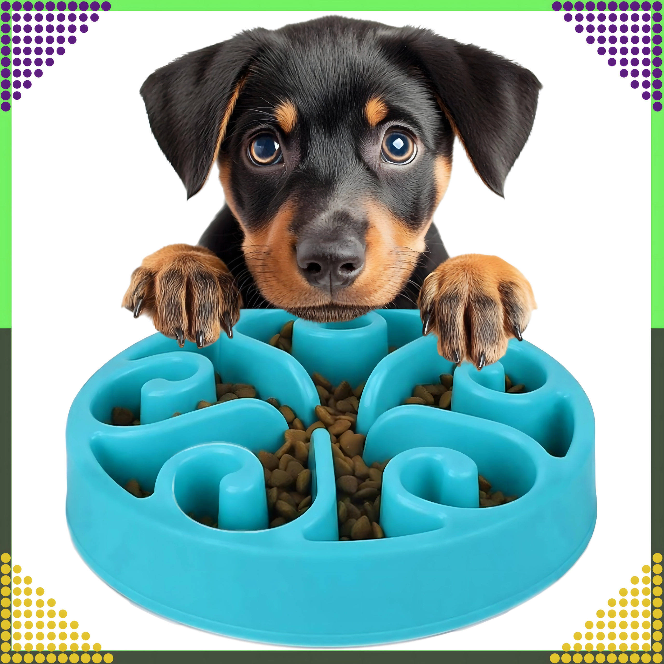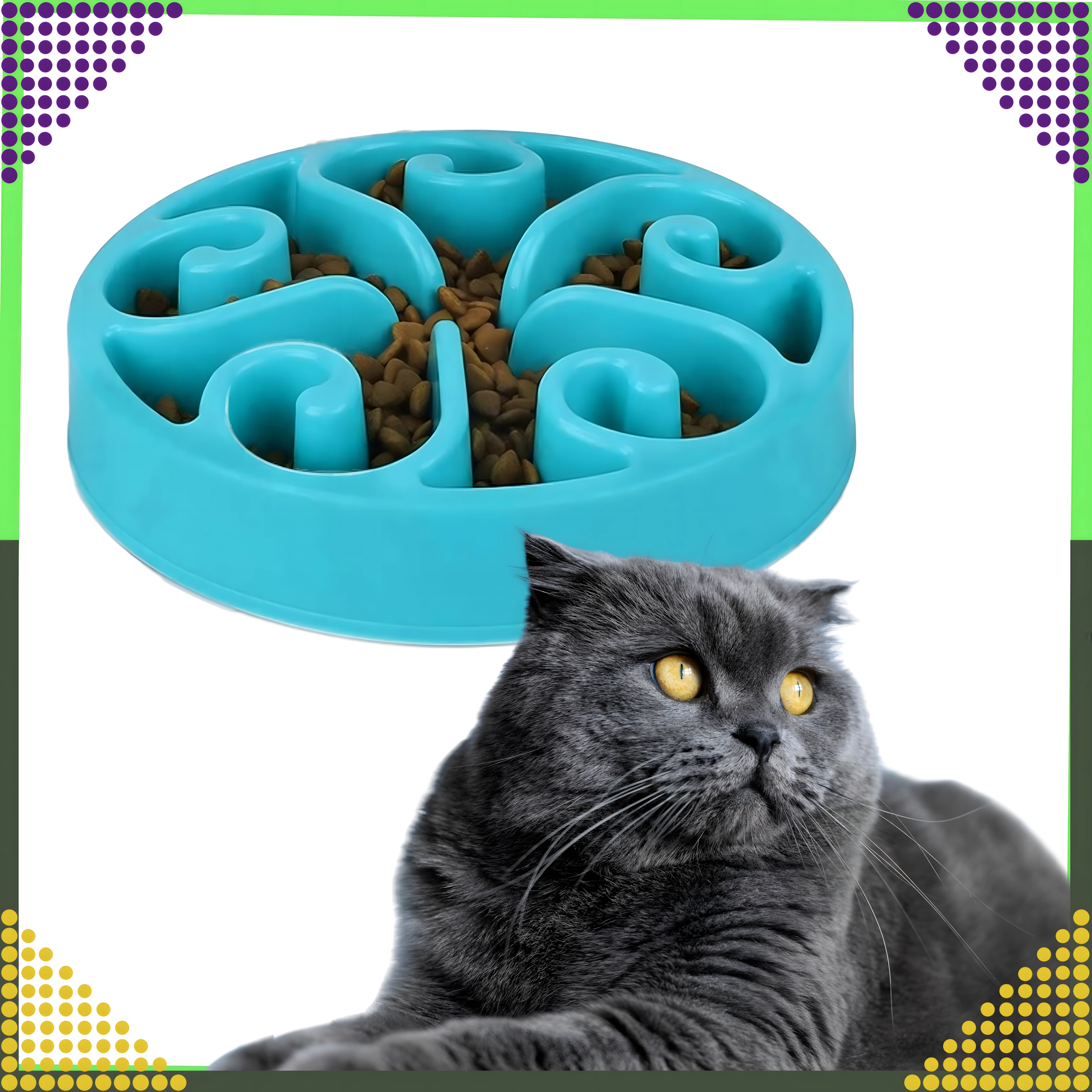 Vyvýšené kanálky a přepážky vytvářejí labyrint, který zvíře nutí jíst pomaleji. Tím se snižuje hltání, podporuje lepší trávení a omezuje riziko obezity.