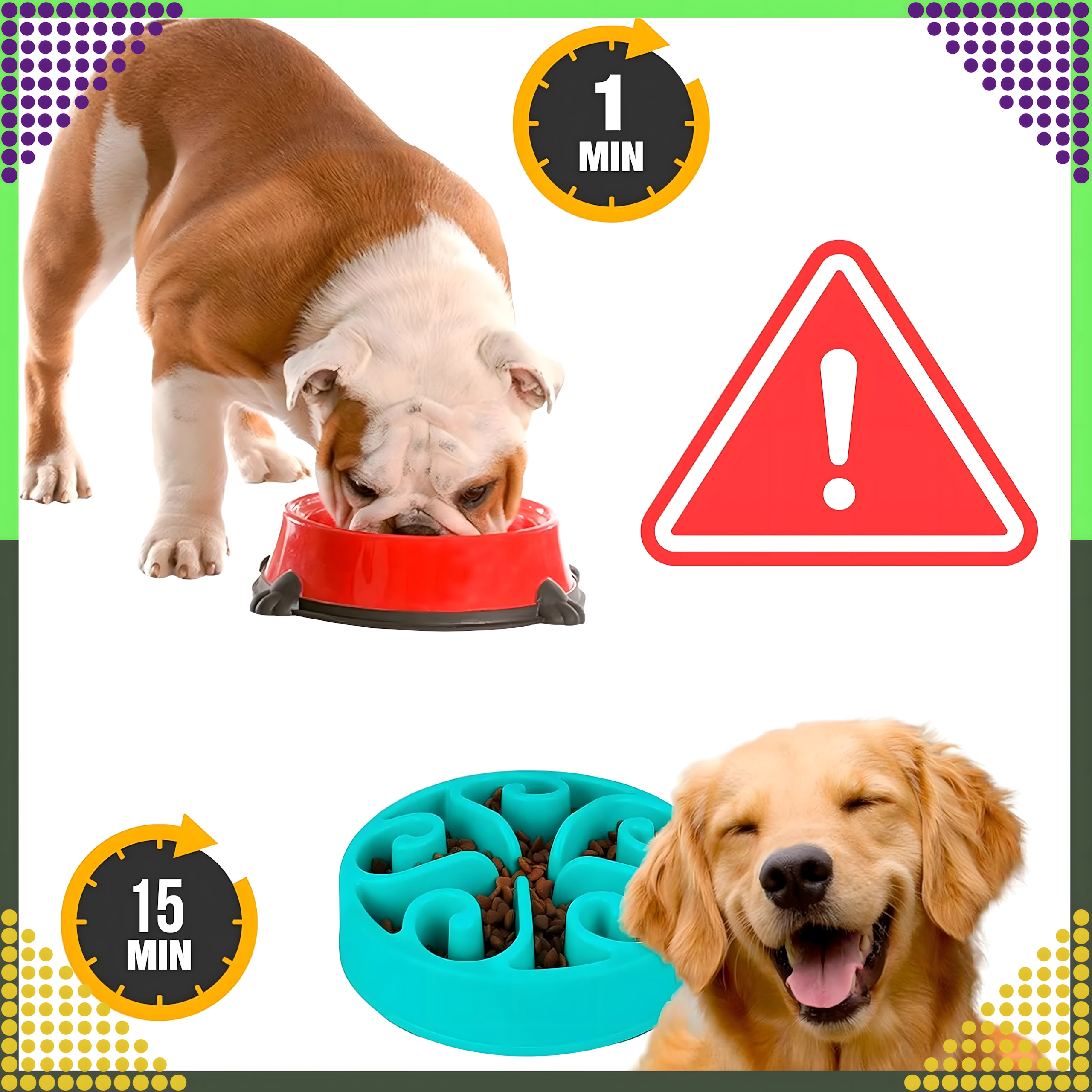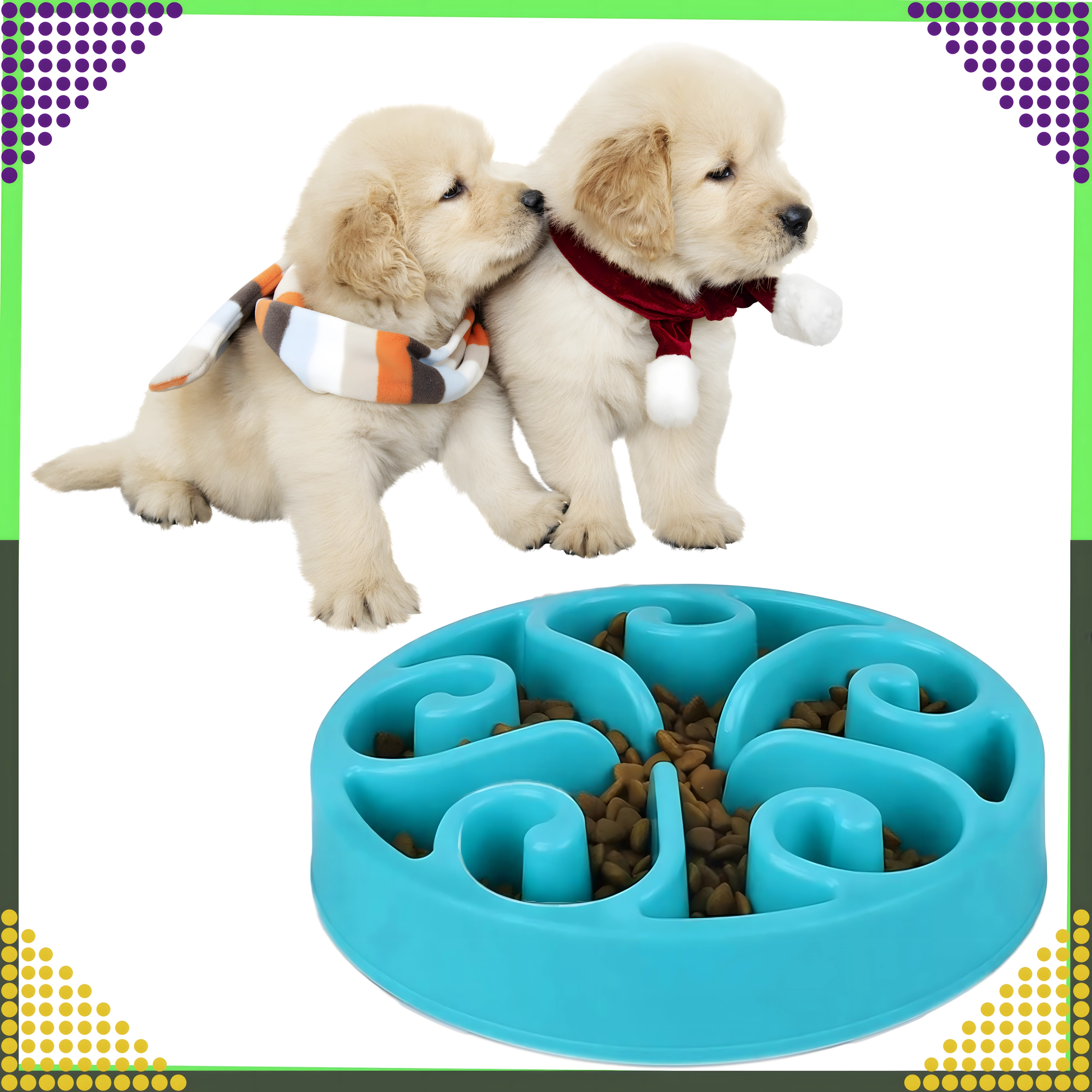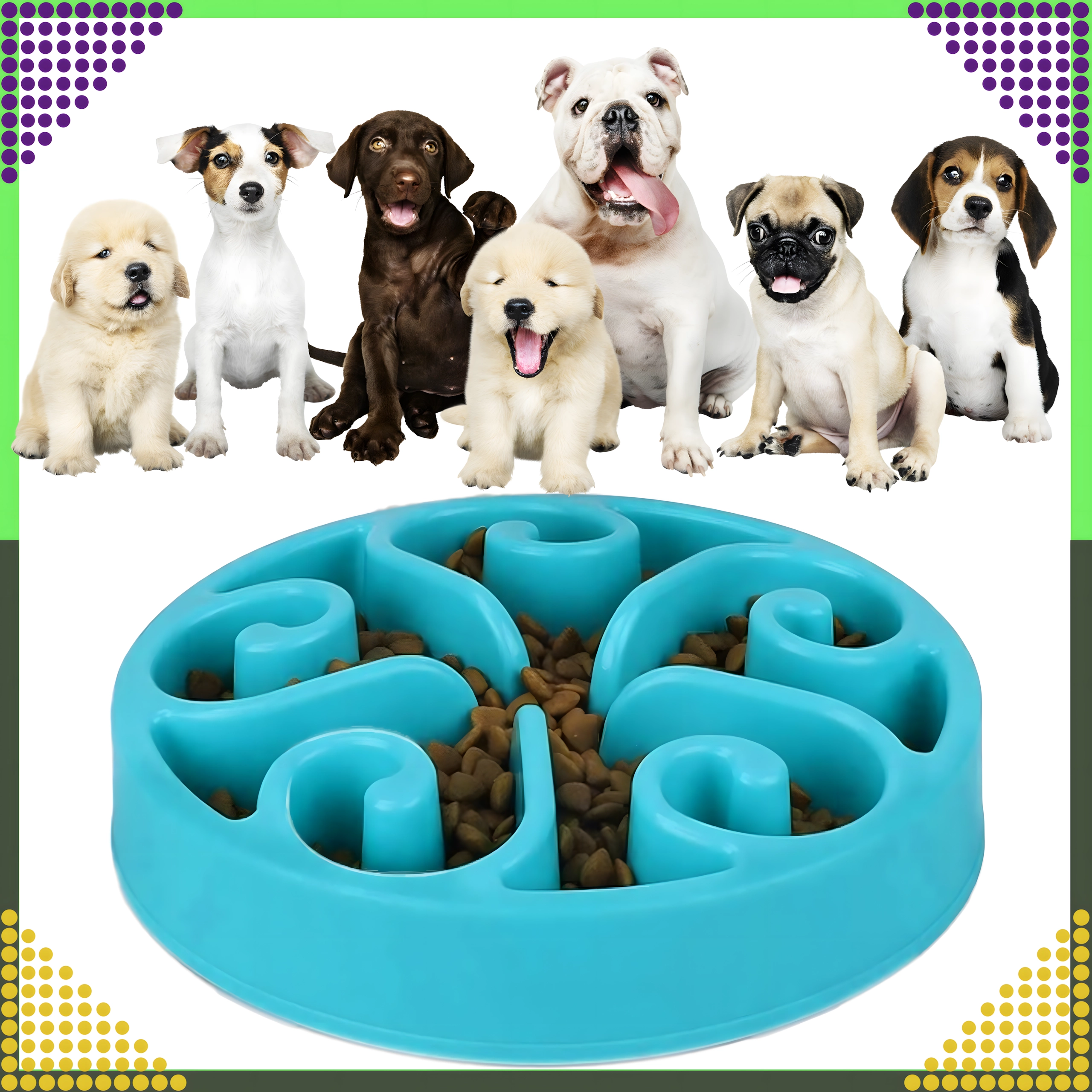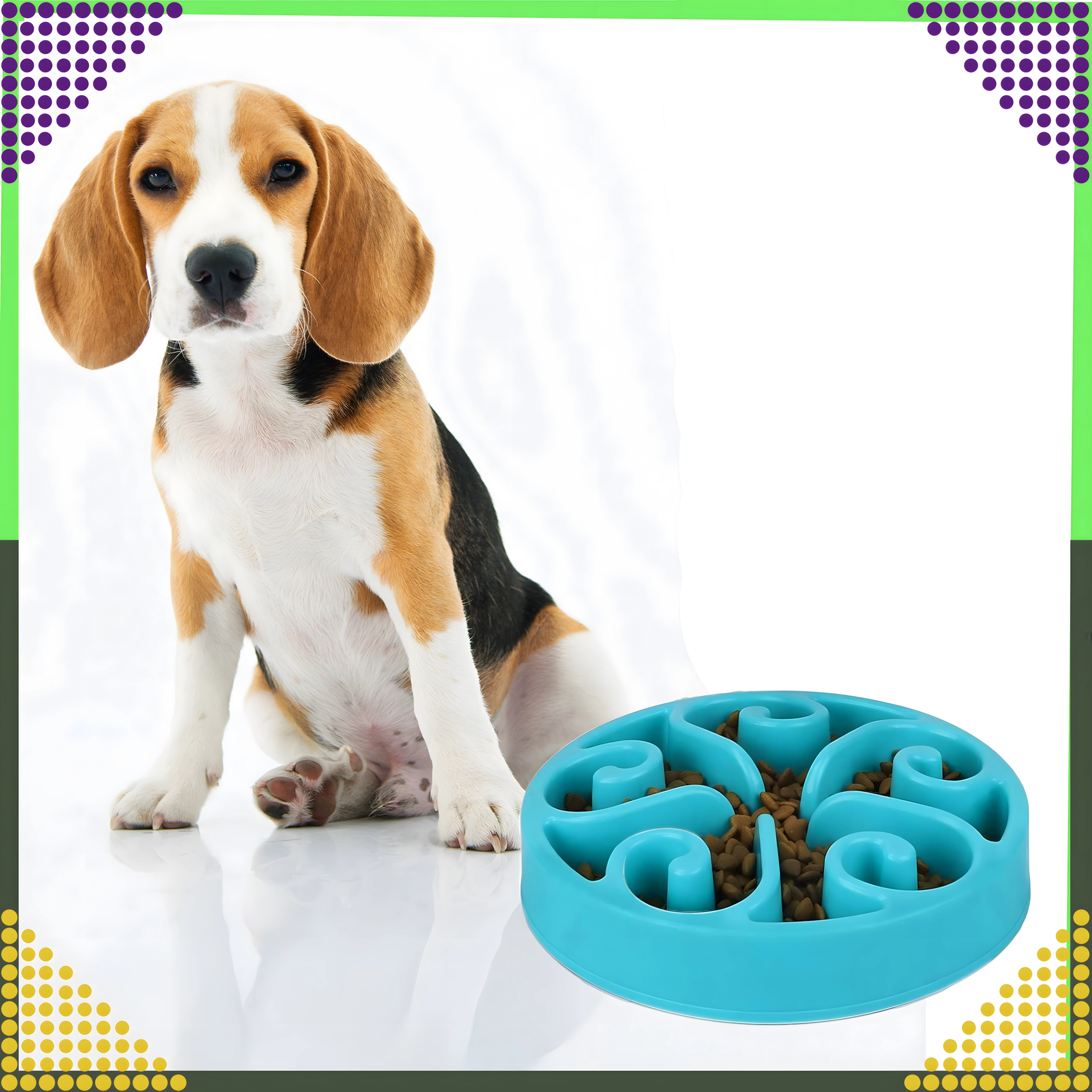 Vyvýšené kanálky a přepážky vytvářejí labyrint, který zvíře nutí jíst pomaleji. Tím se snižuje hltání, podporuje lepší trávení a omezuje riziko obezity.