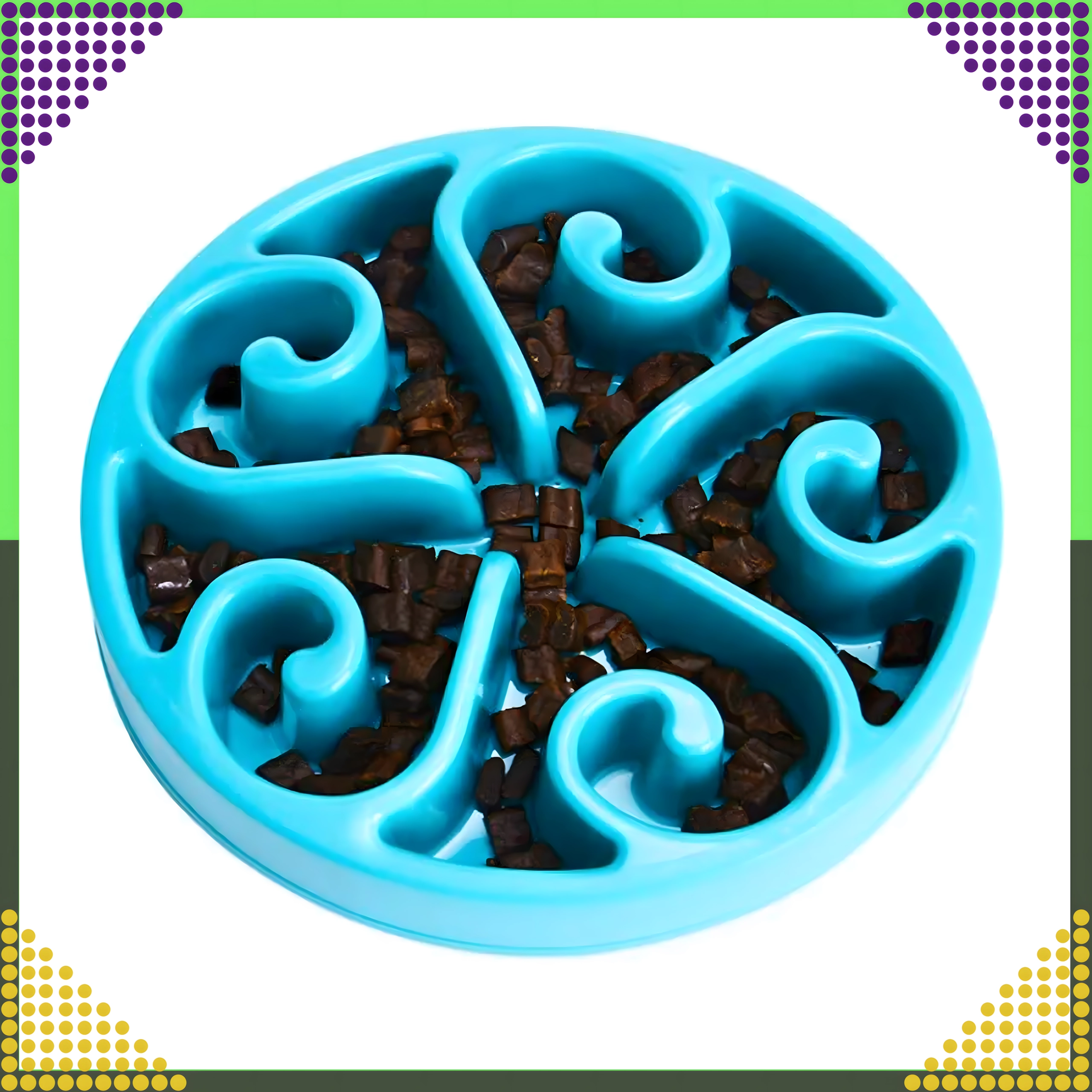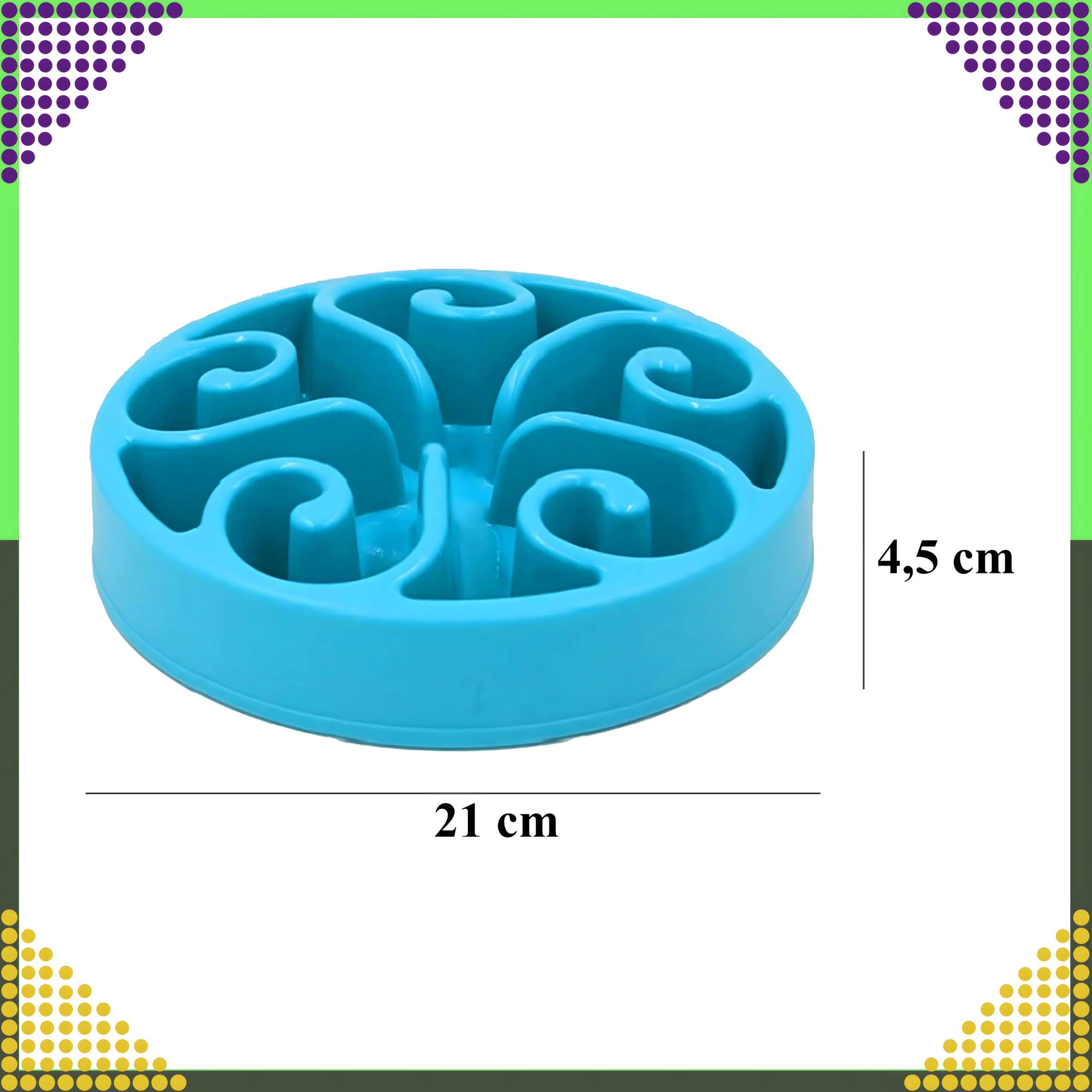 Tato miska pro pomalé krmení je navržena tak, aby zvíře jedlo v klidu a bez hltání. Vyvýšené kanálky a přepážky rozdělují granule či mokré krmivo do menších porcí, takže pes nebo kočka musí jídlo „lovit“ a zpracovávat po částech. To přirozeně zpomaluje tempo krmení a podporuje zdravé trávení.