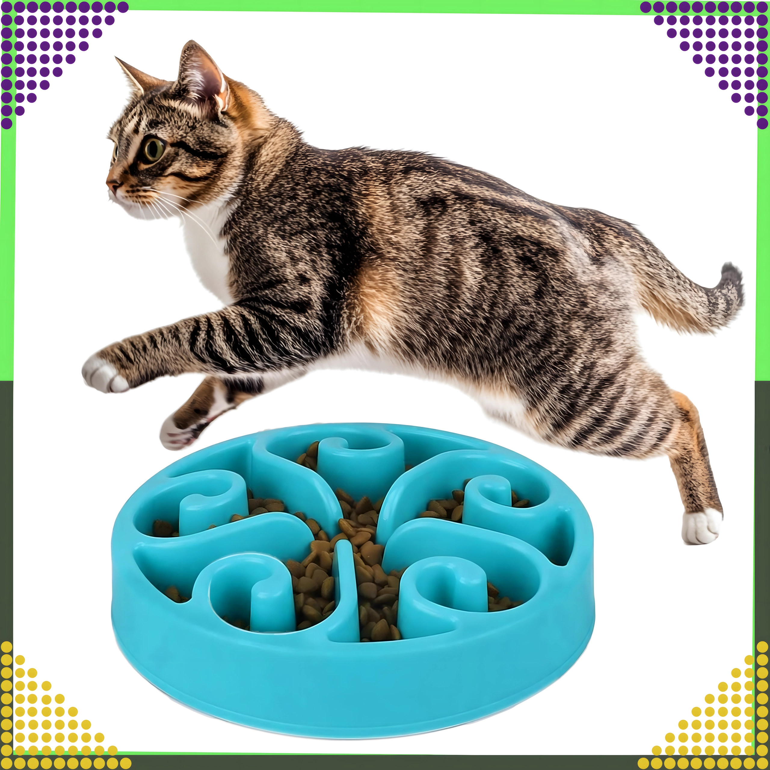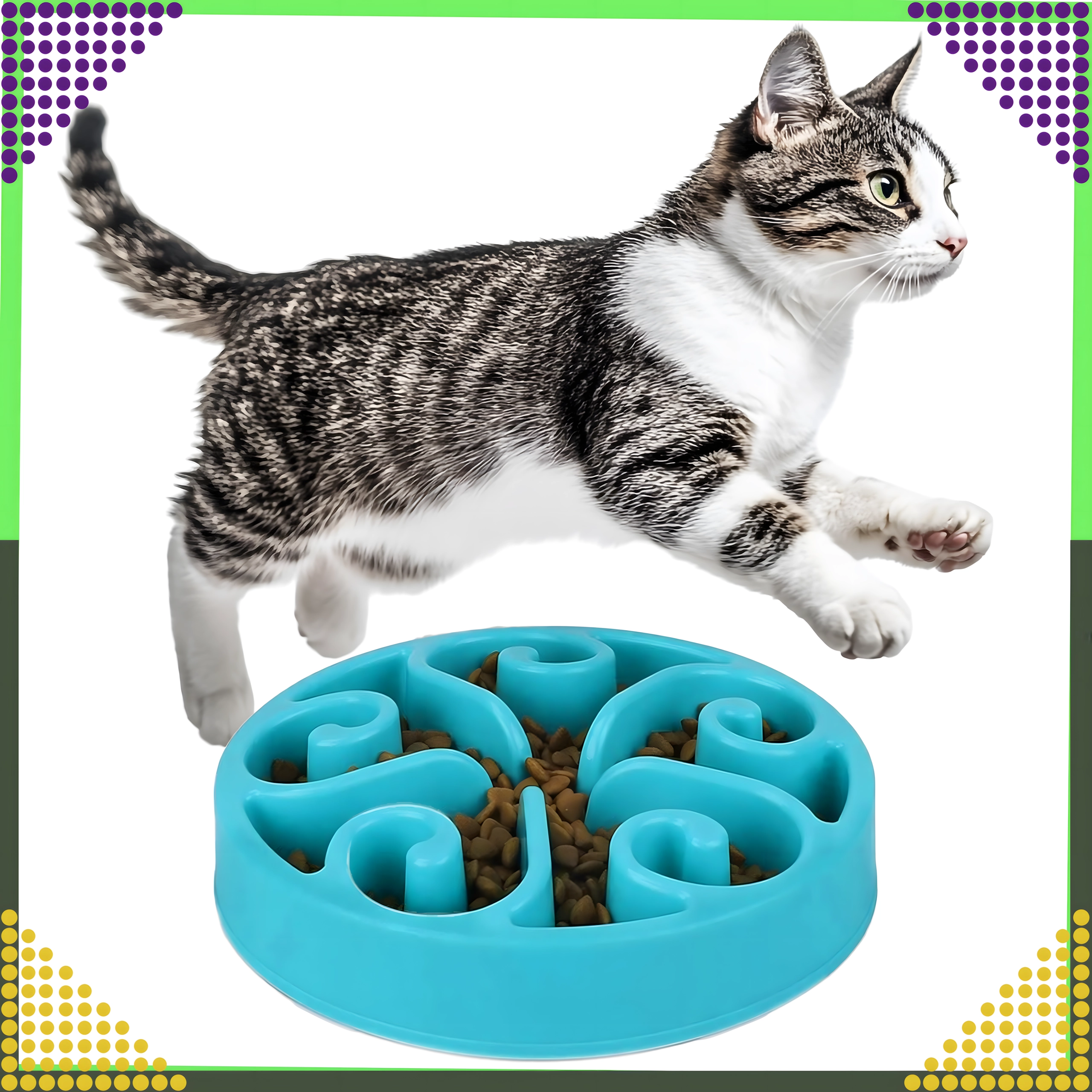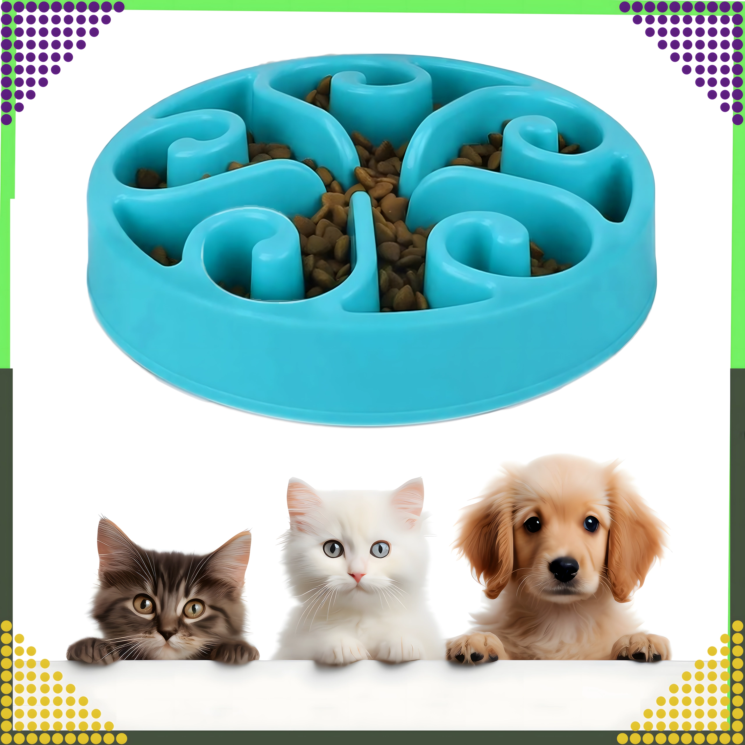 Praktická miska pro pomalé krmení pro psy i kočky pomáhá omezit hltání a podporuje zdravé trávení. Díky vnitřním přepážkám ve tvaru labyrintu se jídlo rozprostře a zvíře jí pomaleji, což může snížit riziko nadýmání a obezity, podpořit lepší trávení a zároveň poskytnout mentální stimulaci. Vhodná pro suché i mokré krmivo.