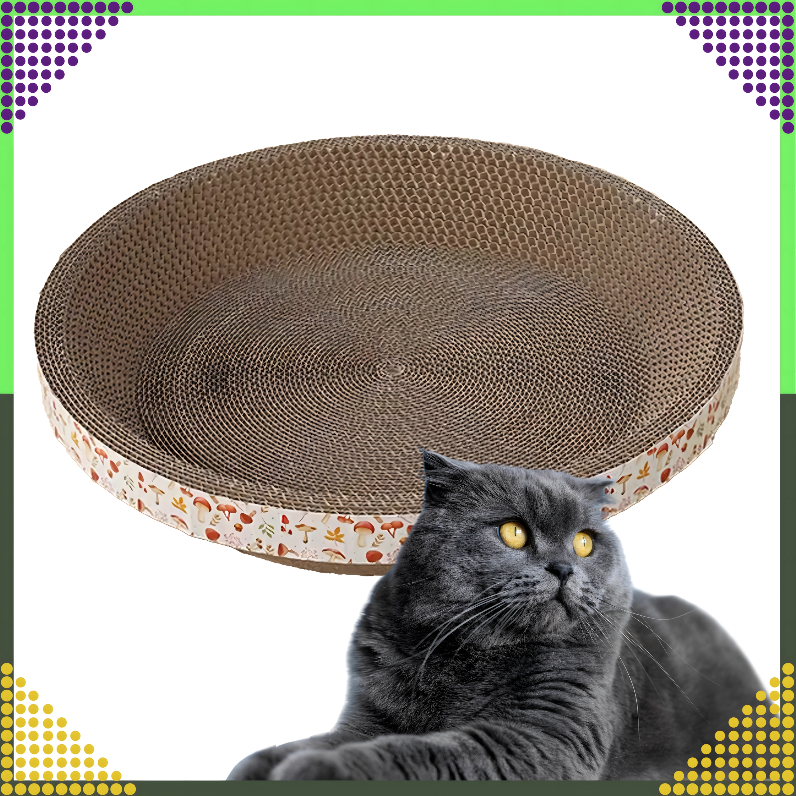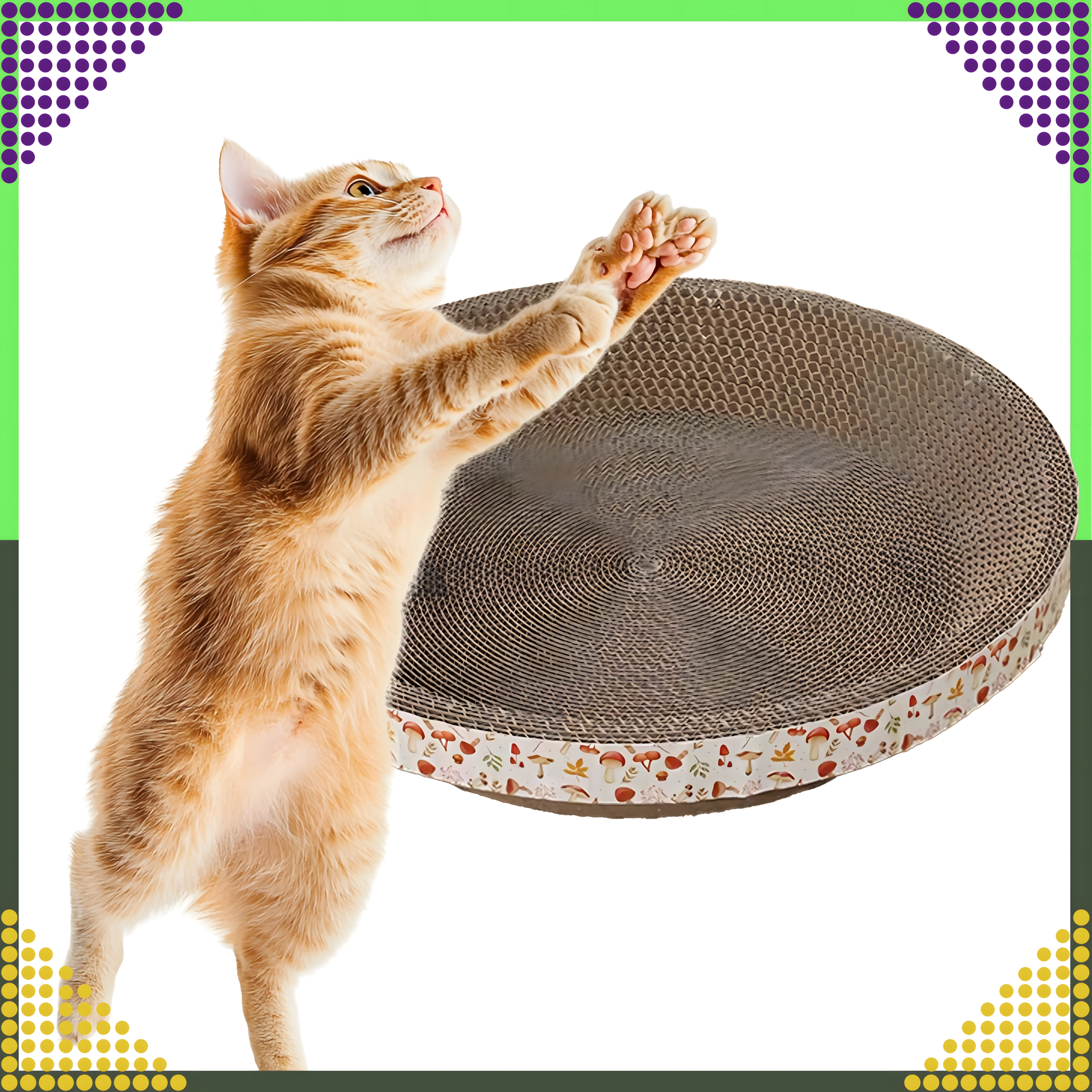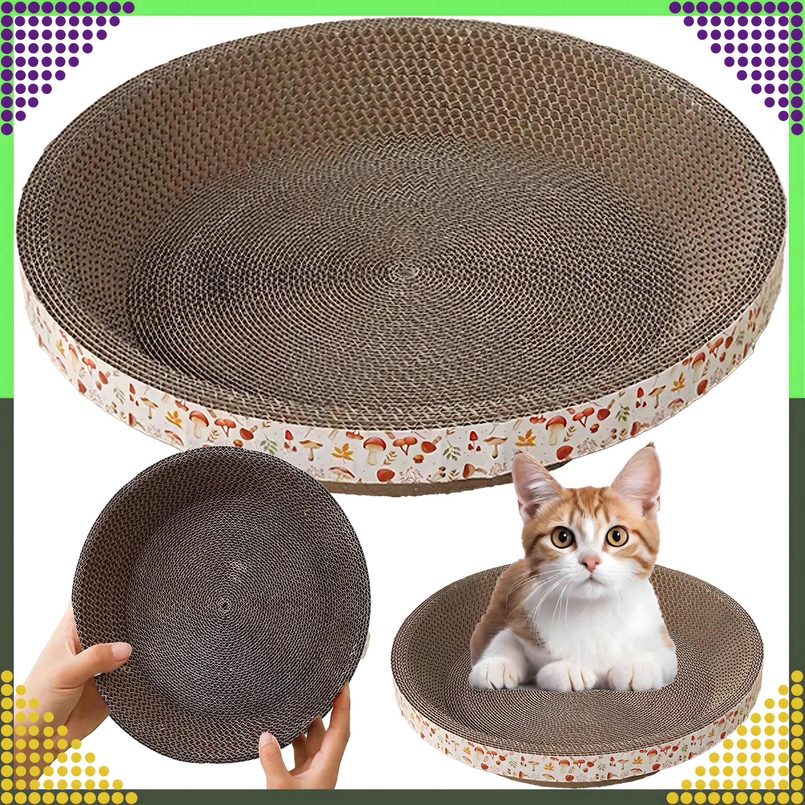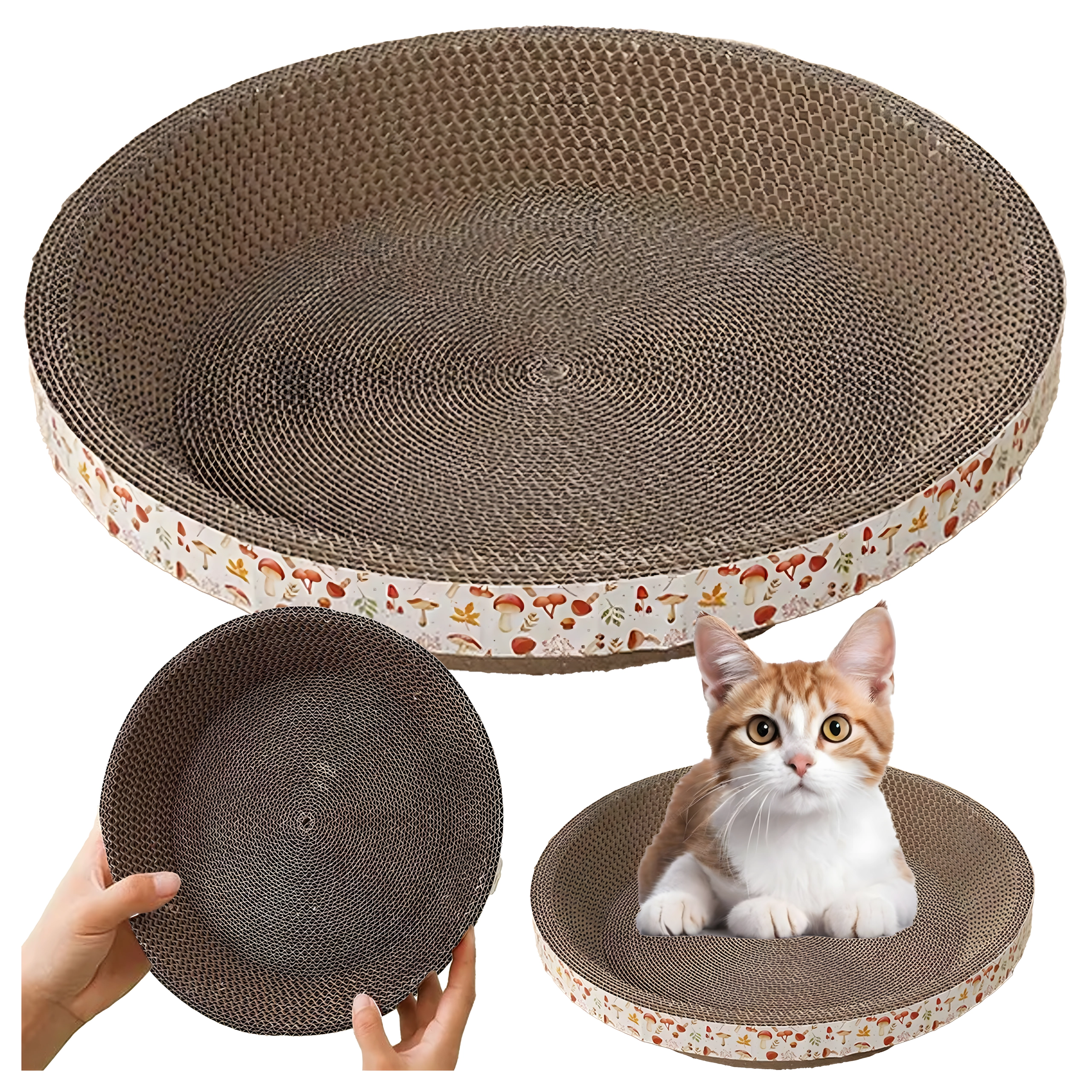 Praktický kulatý škrábací pelíšek pro kočky spojuje dvě funkce v jednom: odolná škrábací plocha a pohodlné místo k odpočinku. Vyroben z pevné vlnité lepenky z recyklovaných materiálů, nepouští drobky, je šetrný k životnímu prostředí a pomáhá chránit nábytek před poškrábáním.