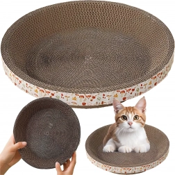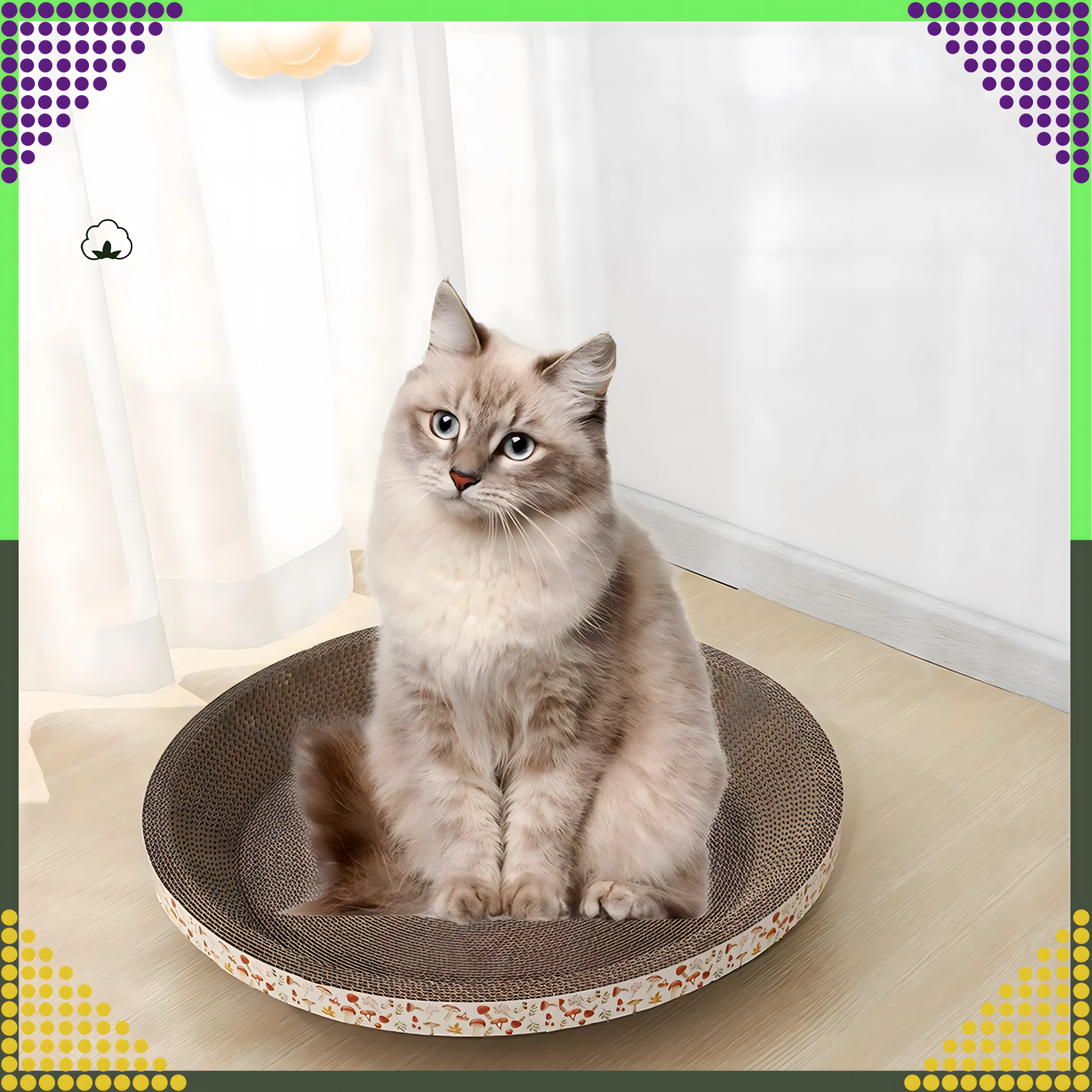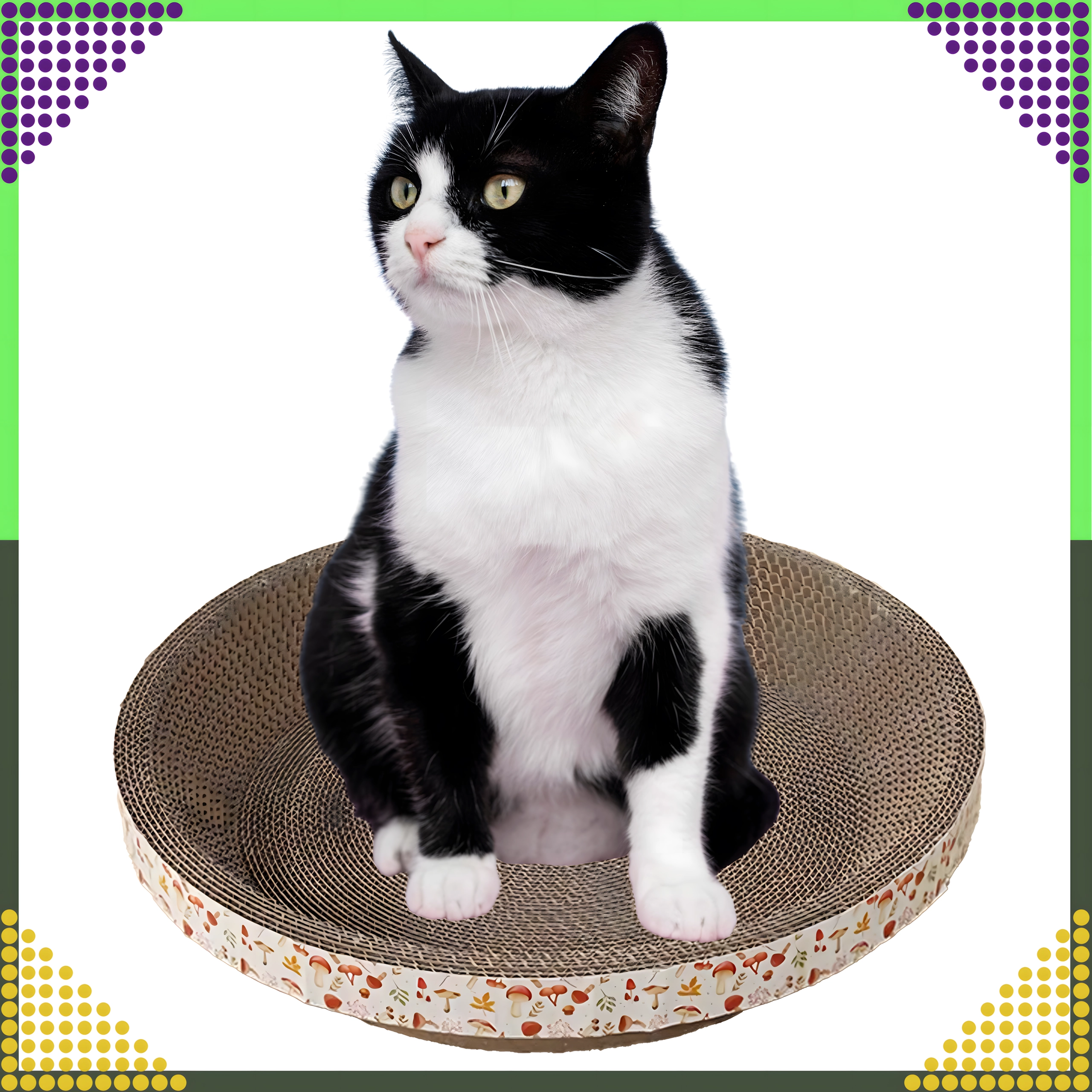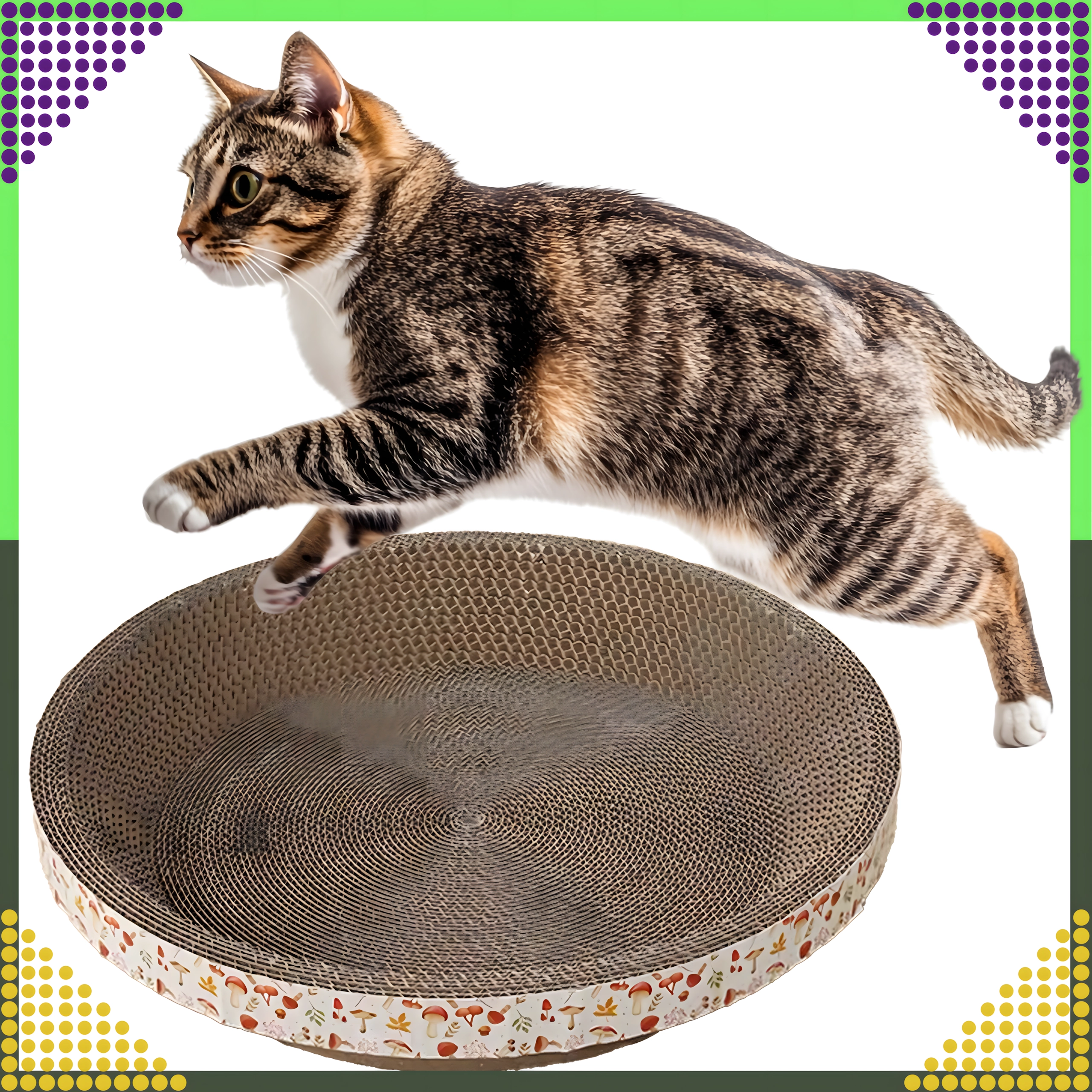 Praktický kulatý škrábací pelíšek pro kočky spojuje dvě funkce v jednom: odolná škrábací plocha a pohodlné místo k odpočinku. Vyroben z pevné vlnité lepenky z recyklovaných materiálů, nepouští drobky, je šetrný k životnímu prostředí a pomáhá chránit nábytek před poškrábáním.