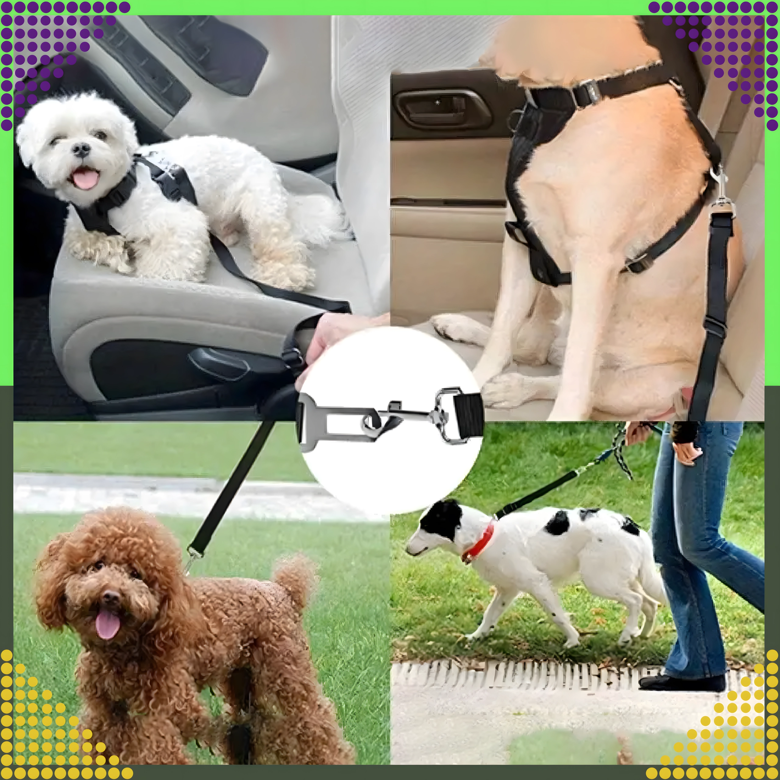 Praktický pás pro zajištění psa či kočky během jízdy autem. Jednoduše jej zasunete do standardní zásuvky bezpečnostního pásu a druhý konec otočnou karabinou připnete k postroji (doporučeno místo obojku). Nastavitelná délka 45–72 cm umožňuje zvířeti sedět nebo ležet, ale zároveň brání nebezpečnému pohybu po voze.