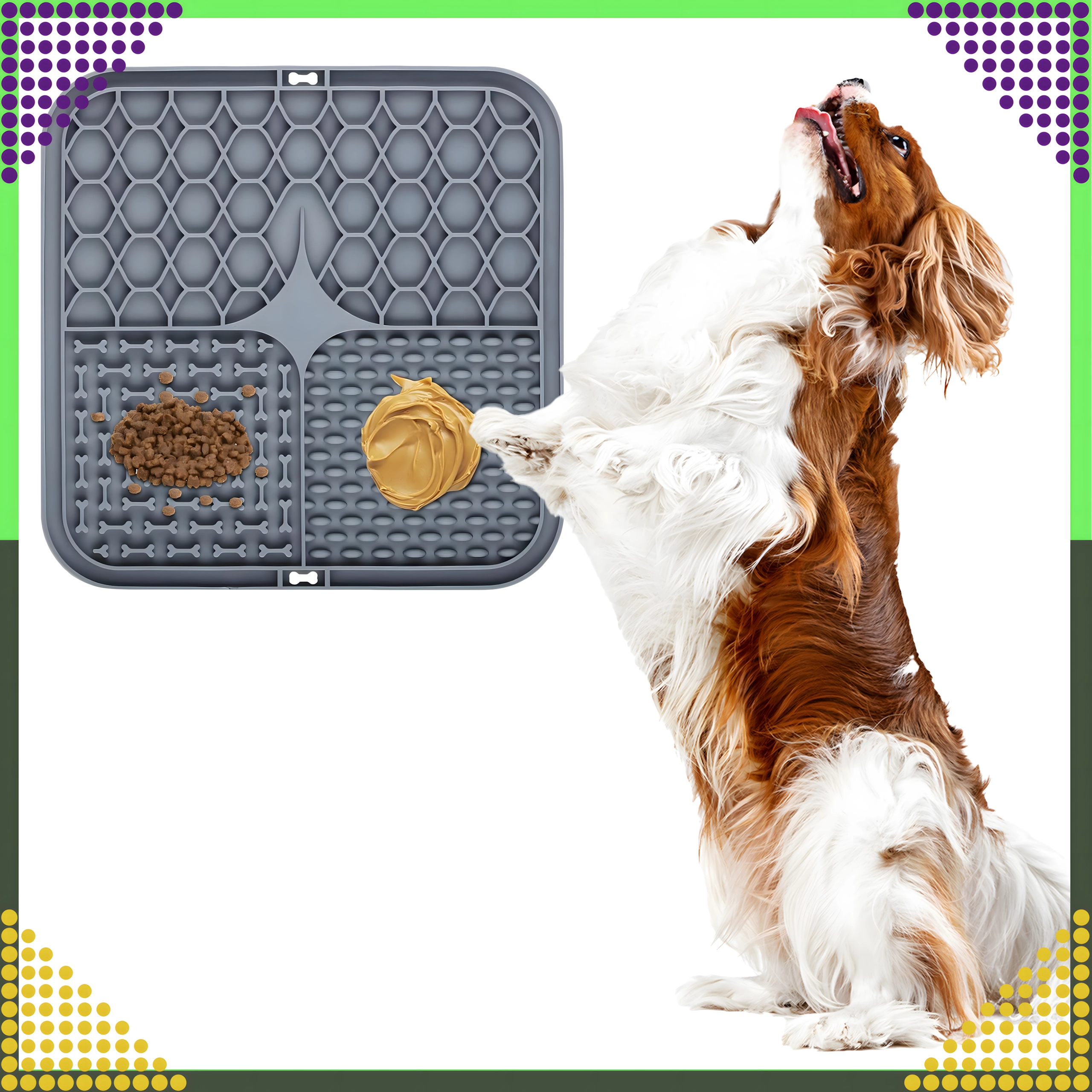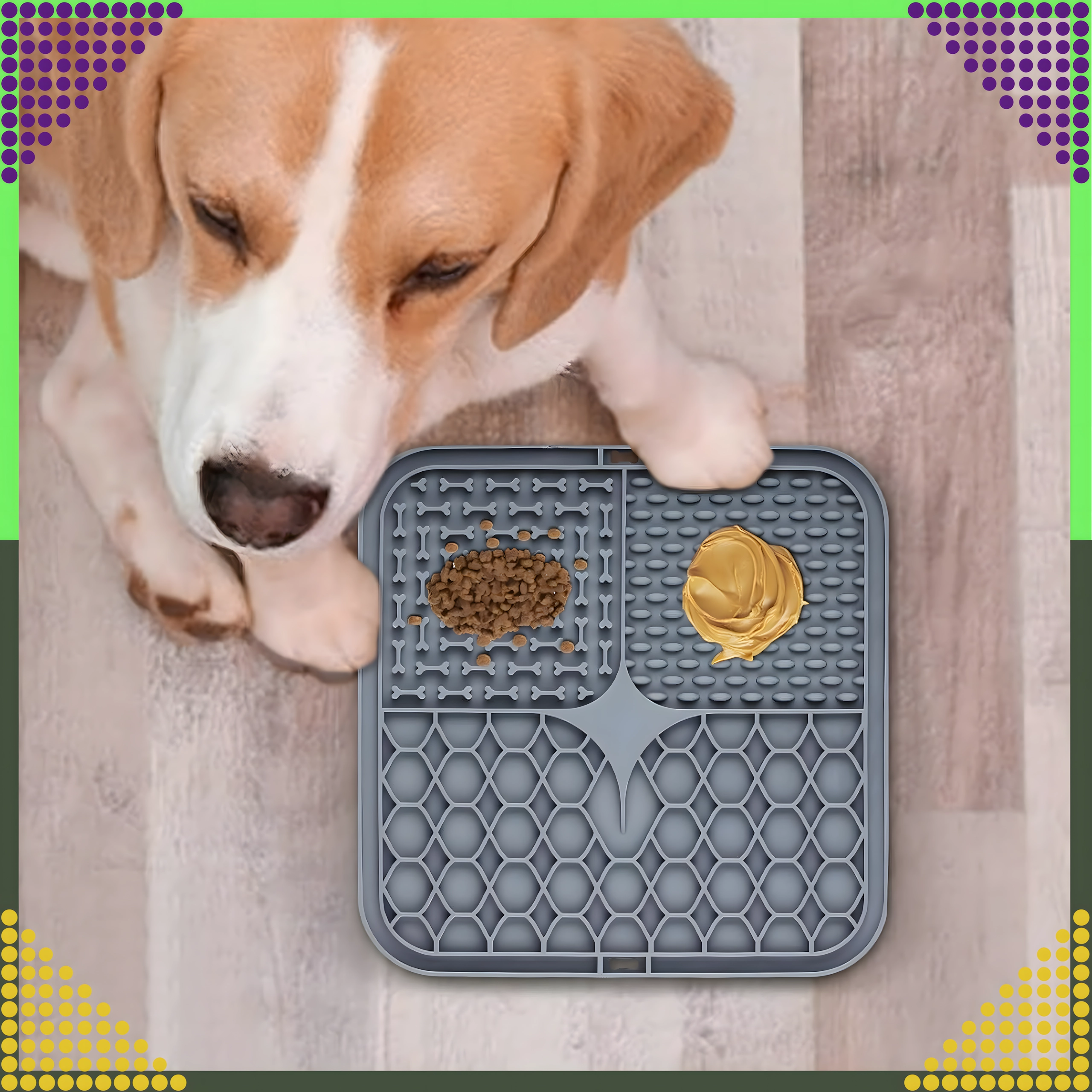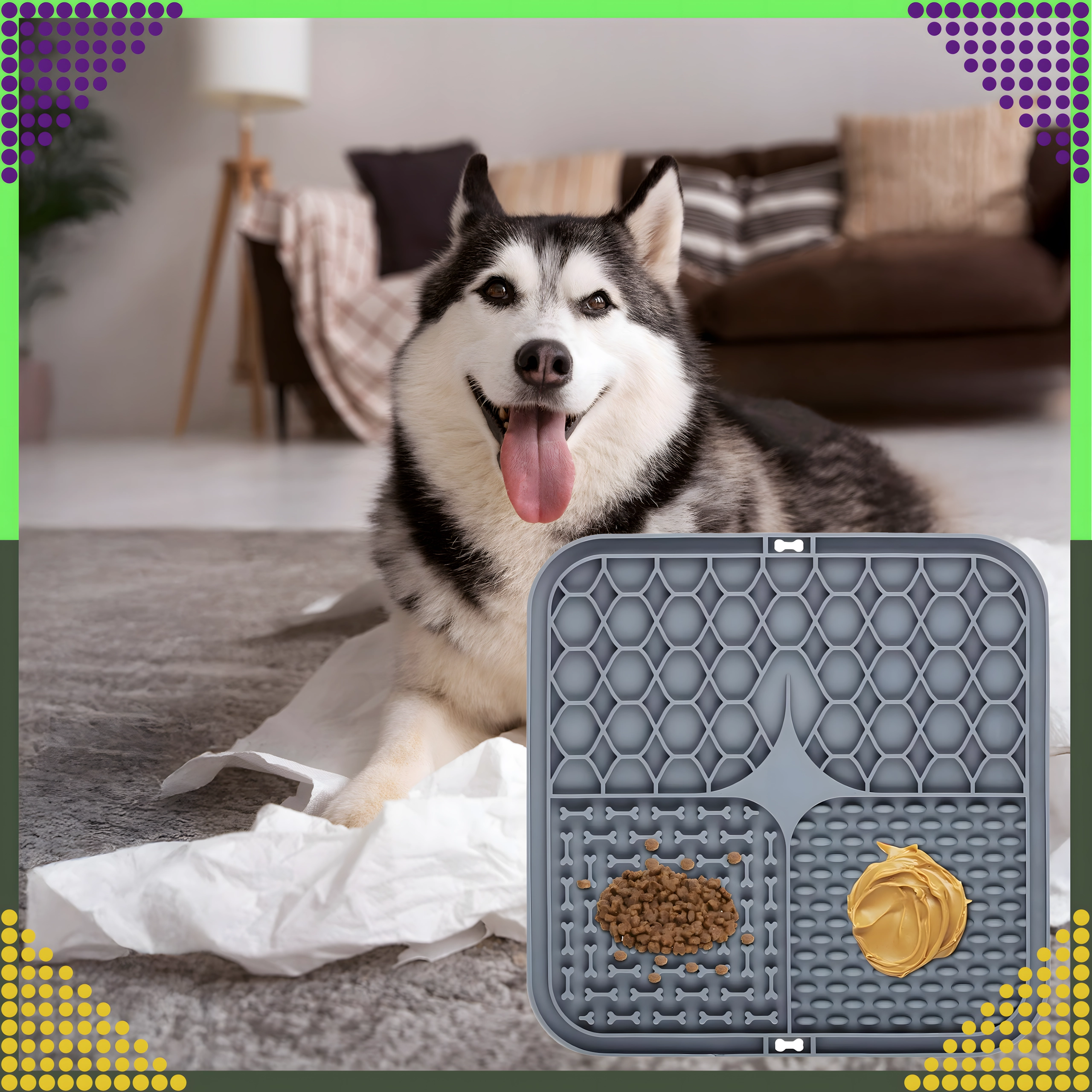 Praktická lízací podložka ze silikonu pro psy a kočky zpomaluje krmení, pomáhá proti stresu a podporuje hygienu dutiny ústní. Díky různým texturám a přísavkám na zadní straně zůstává stabilní a zábavná. Zpomaluje hltání, snižuje úzkost a čistí jazyk při každodenním používání.