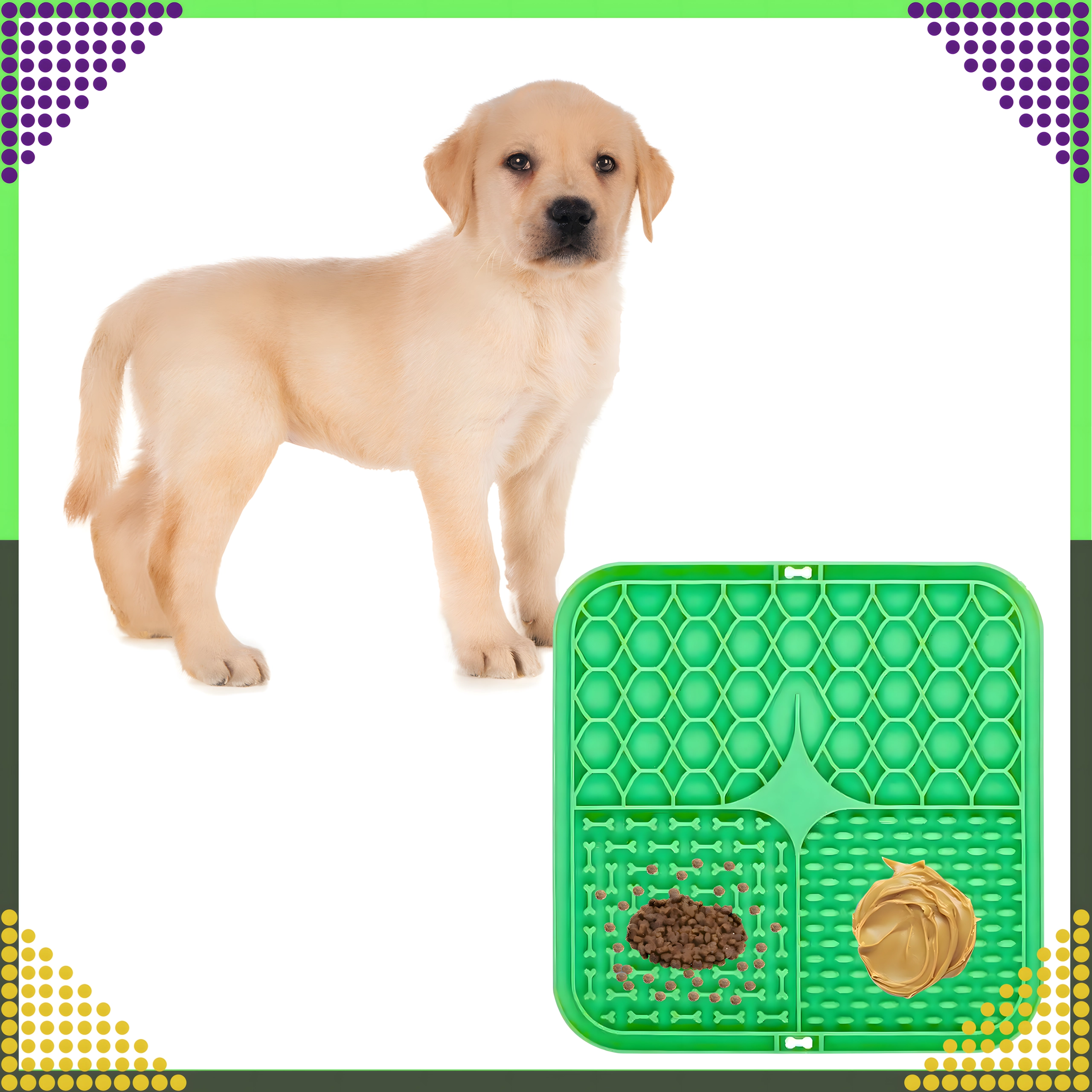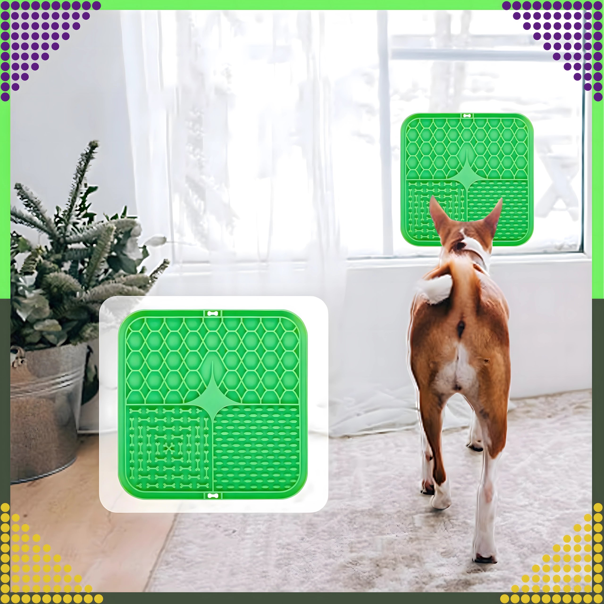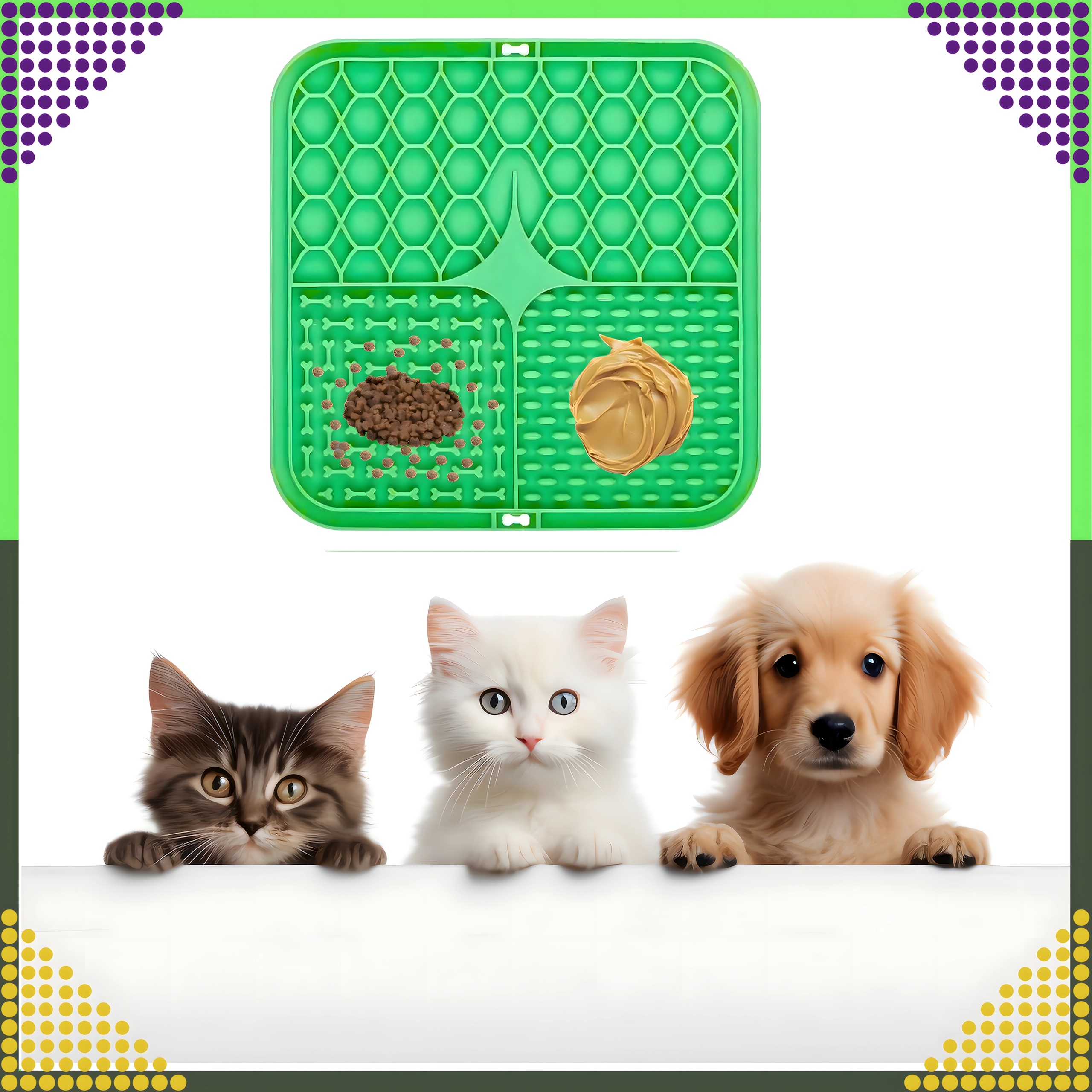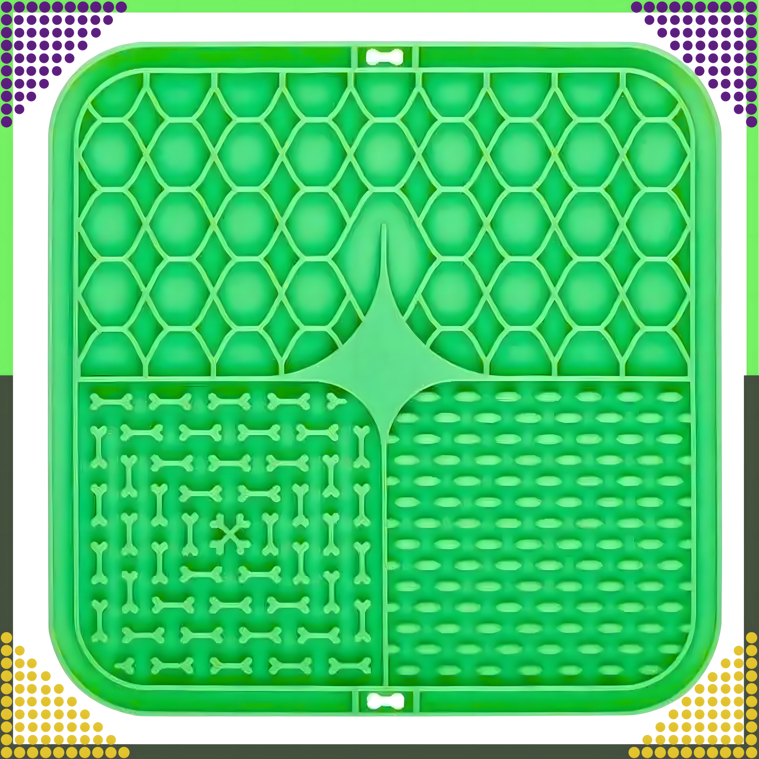 Lízací podložka je vyrobena z měkkého, bezpečného silikonu a má několik texturovaných zón, do kterých rozetřete oblíbené pamlsky (paštika, jogurt, arašídové máslo bez xylitolu, vlhké krmivo). Struktura podněcuje pomalé vylizování, čímž předchází hltání, podporuje lepší trávení a pomáhá snižovat stres a úzkost.