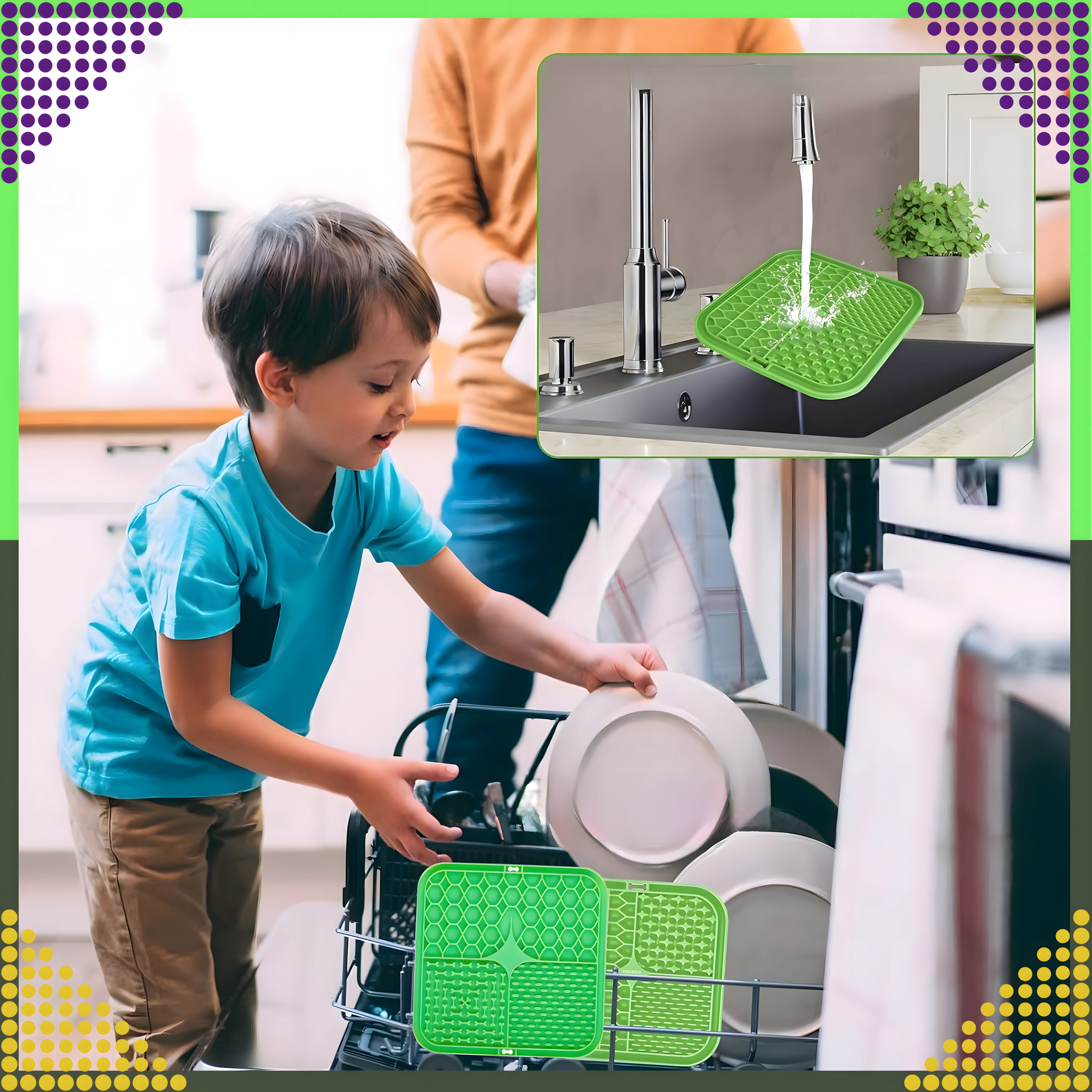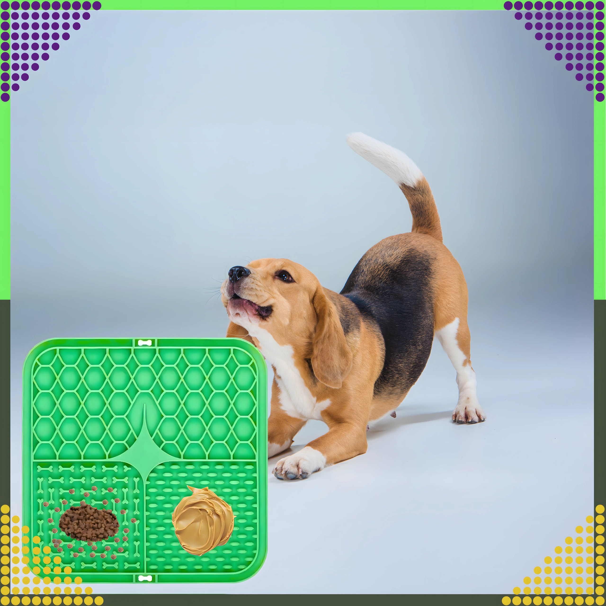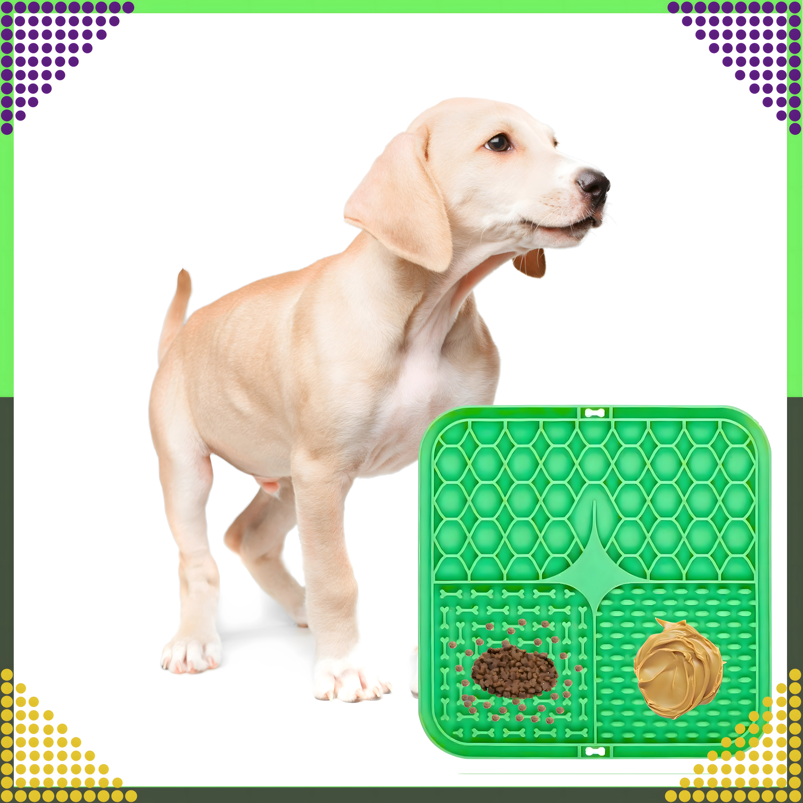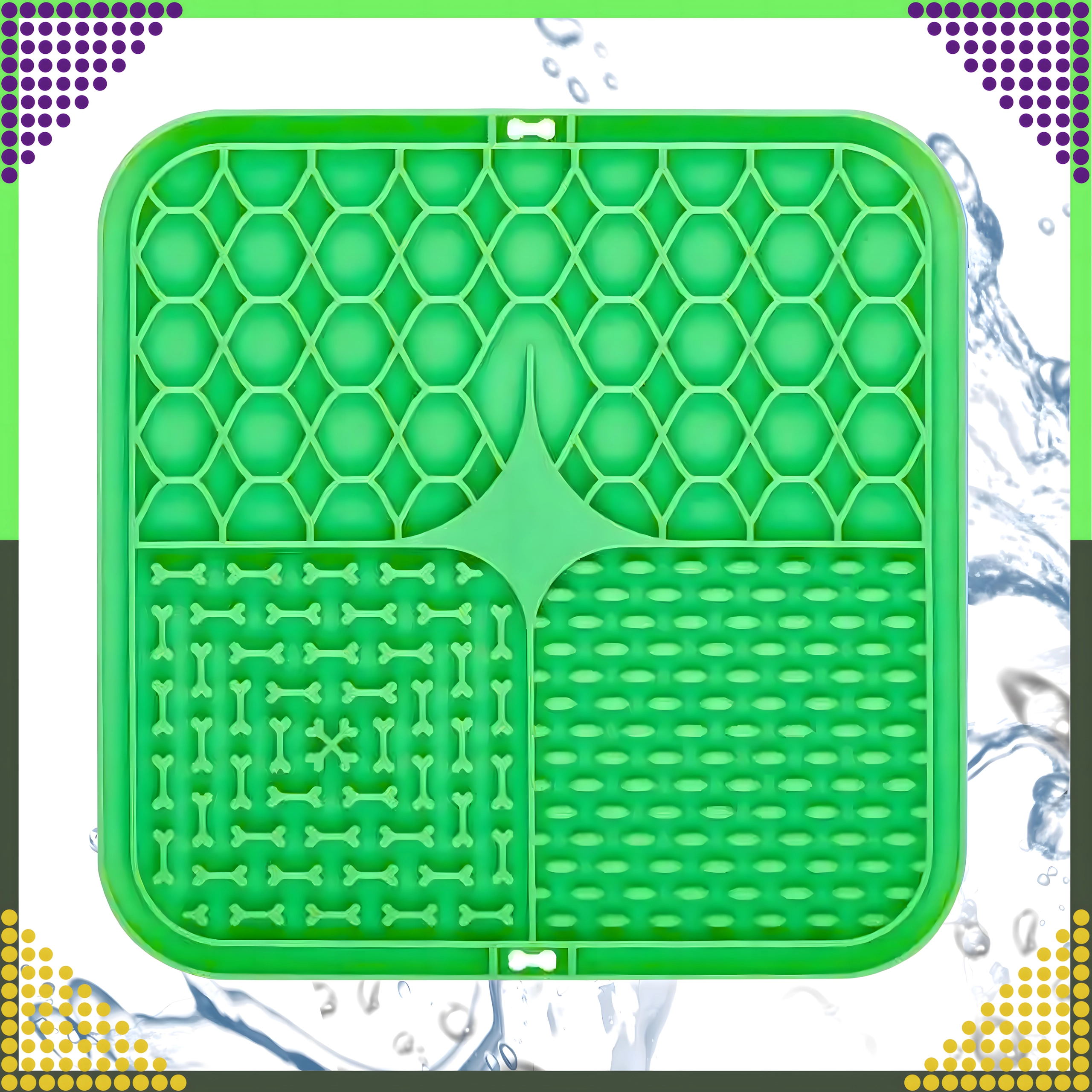 Lízací podložka je vyrobena z měkkého, bezpečného silikonu a má několik texturovaných zón, do kterých rozetřete oblíbené pamlsky (paštika, jogurt, arašídové máslo bez xylitolu, vlhké krmivo). Struktura podněcuje pomalé vylizování, čímž předchází hltání, podporuje lepší trávení a pomáhá snižovat stres a úzkost.