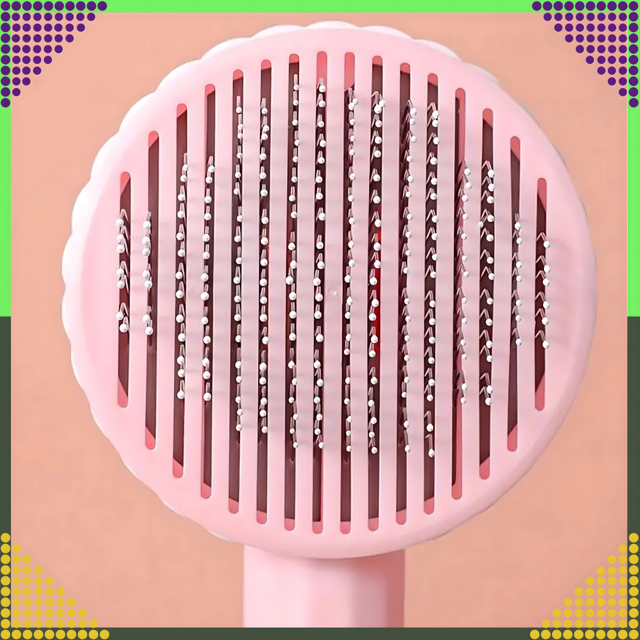Hledáte účinný, ale zároveň šetrný kartáč pro každodenní péči o srst vašeho mazlíčka? Tento růžový samočisticí kartáč kombinuje jemné kovové štětiny s kulatými zakončeními a praktické tlačítko, které jedním stiskem uvolní zachycené chlupy. Česání je tak rychlé, pohodlné a hygienické.