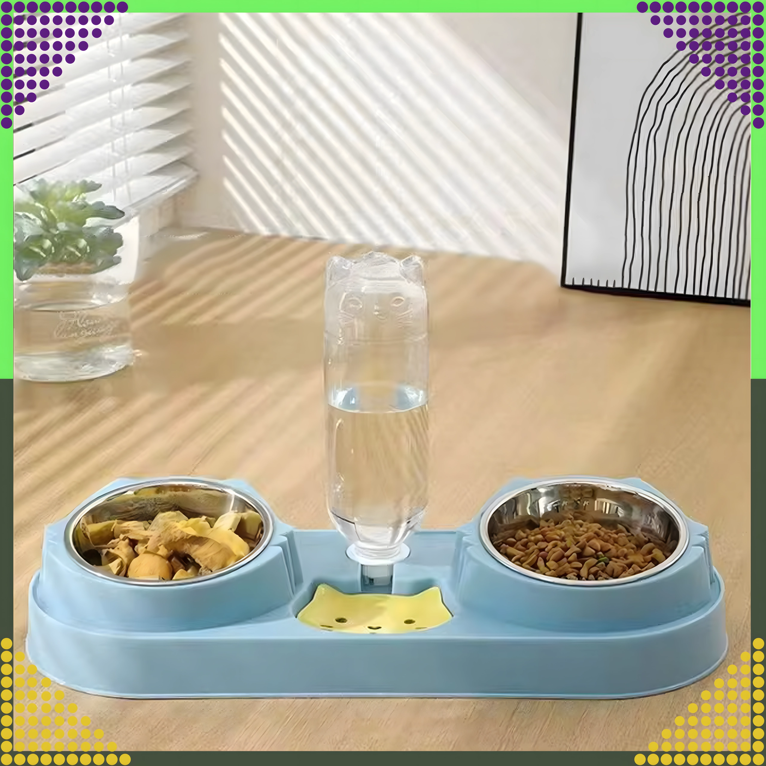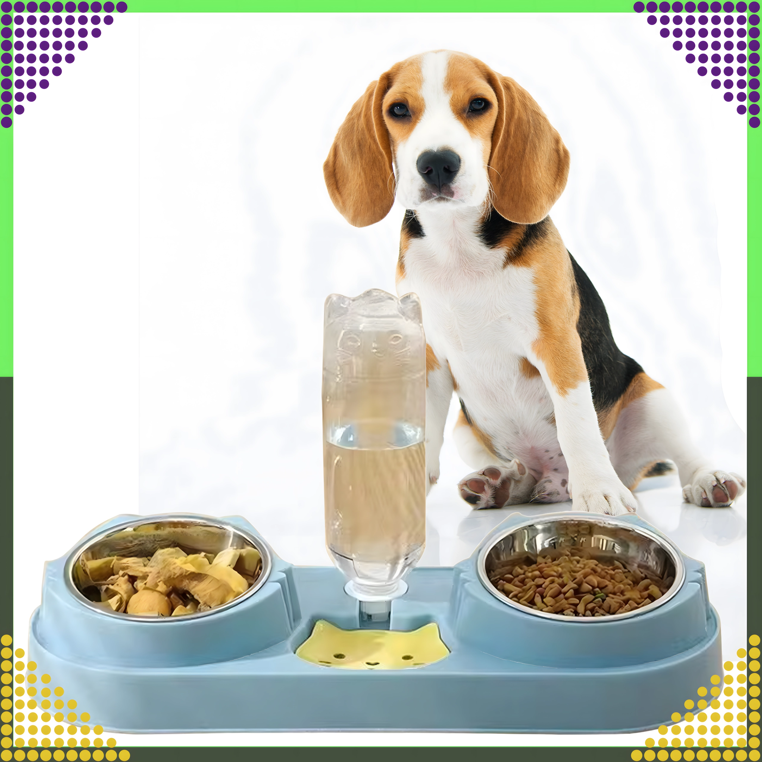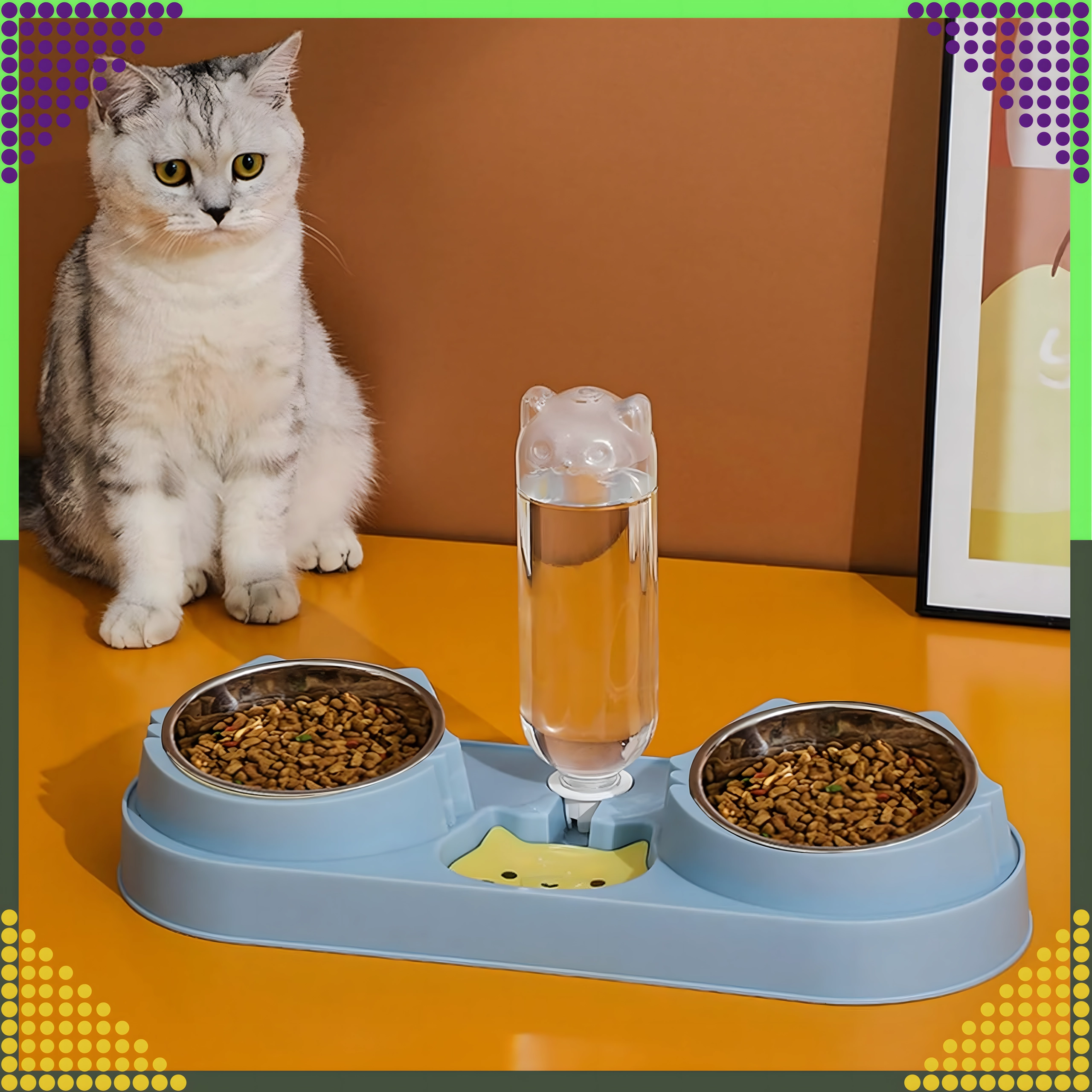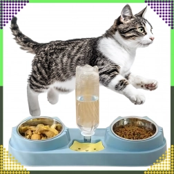 Praktická dvojitá miska pro domácí mazlíčky s integrovaným dávkovačem vody zajistí současné podávání krmiva i čerstvé vody. Vyjímatelné nerezové misky usnadňují rychlé čištění, stabilní základna brání převrácení a gravitační poidlo udržuje vodu čistou a dostupnou i během vaší nepřítomnosti.