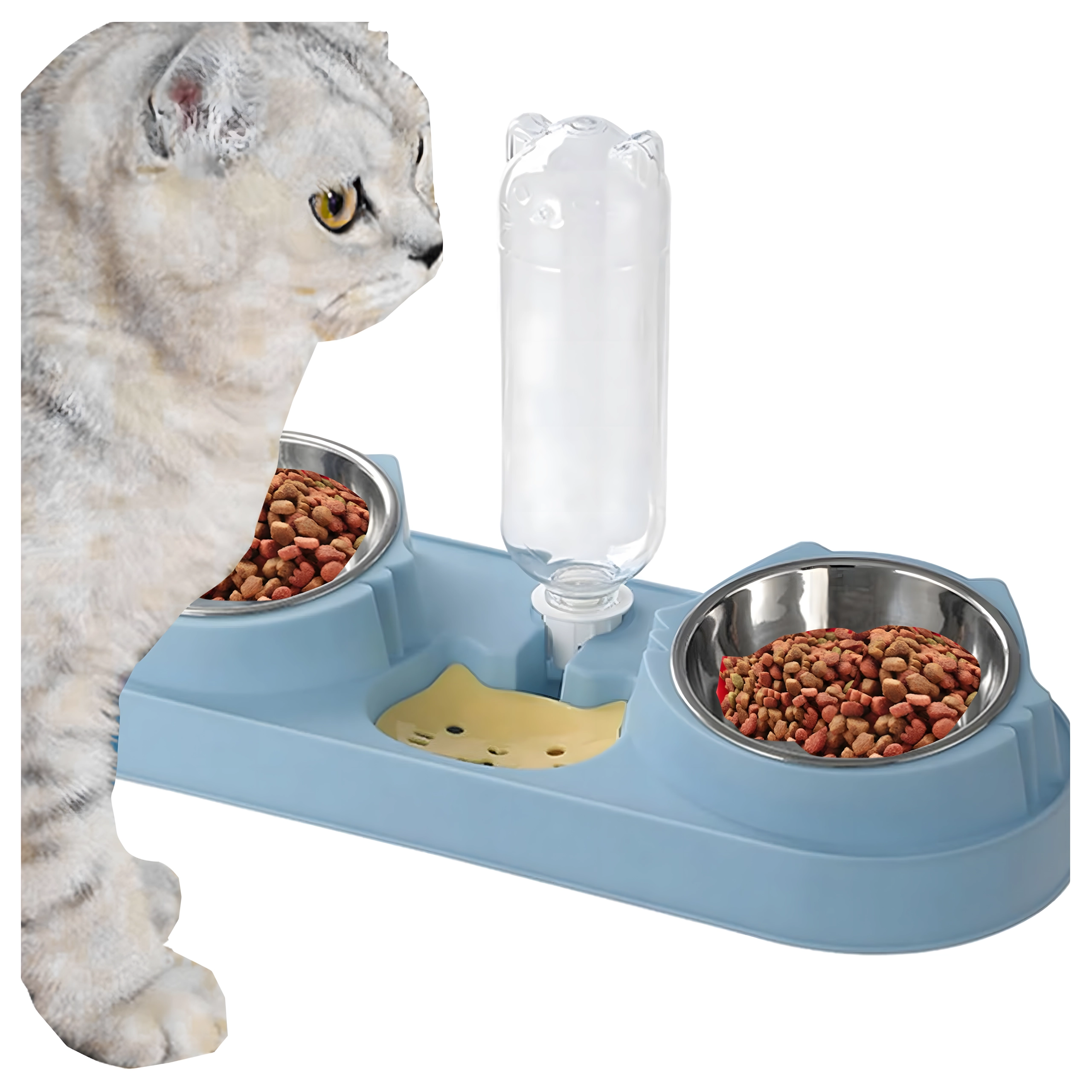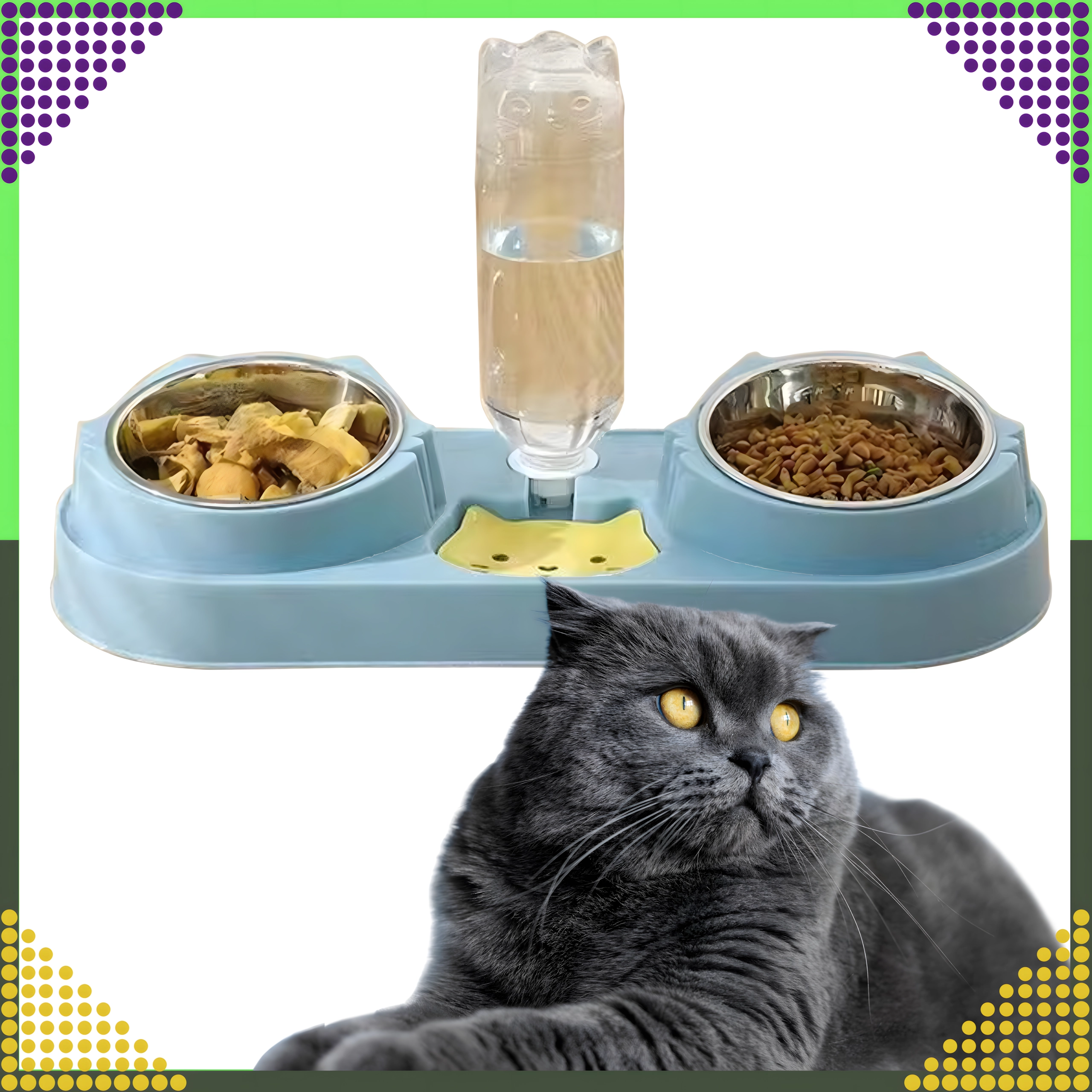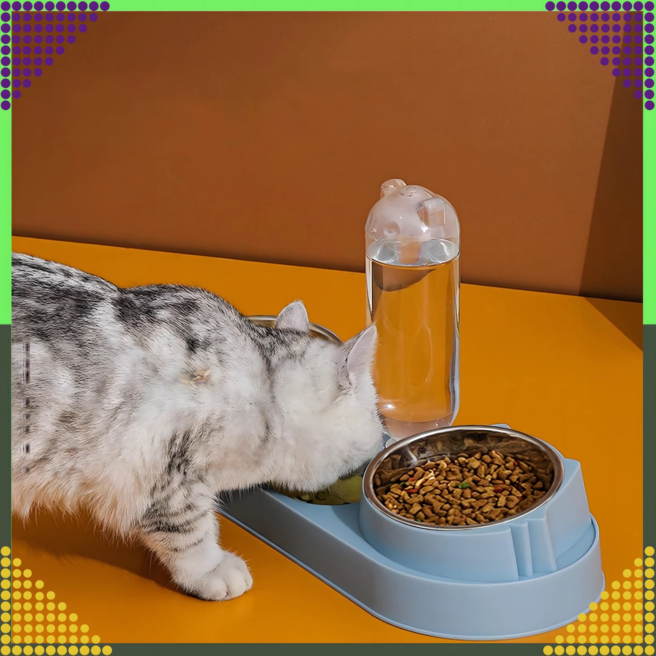 Praktická dvojitá miska pro domácí mazlíčky s integrovaným dávkovačem vody zajistí současné podávání krmiva i čerstvé vody. Vyjímatelné nerezové misky usnadňují rychlé čištění, stabilní základna brání převrácení a gravitační poidlo udržuje vodu čistou a dostupnou i během vaší nepřítomnosti.