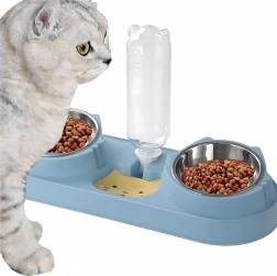 Tato dvojitá miska s automatickým poidlem je ideální pro psy i kočky. Dvě vyjímatelné nerezové misky (každá o objemu 220 ml) umožňují oddělené servírování mokrého a suchého krmiva, zatímco gravitační dávkovač průběžně doplňuje zásobník na vodu. Odolná plastová základna v elegantní modré barvě je stabilní a nenáročná na údržbu.