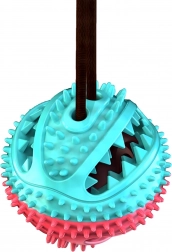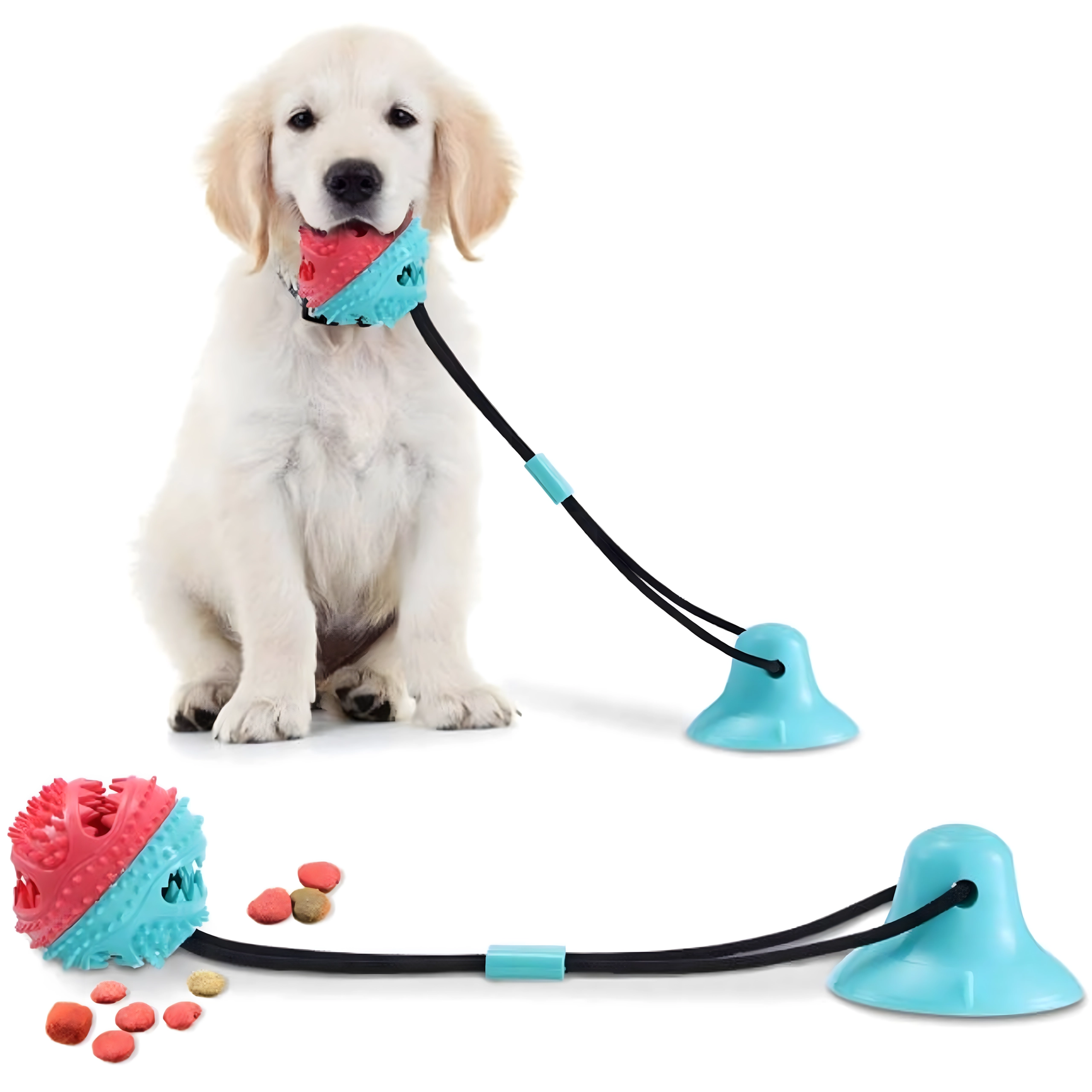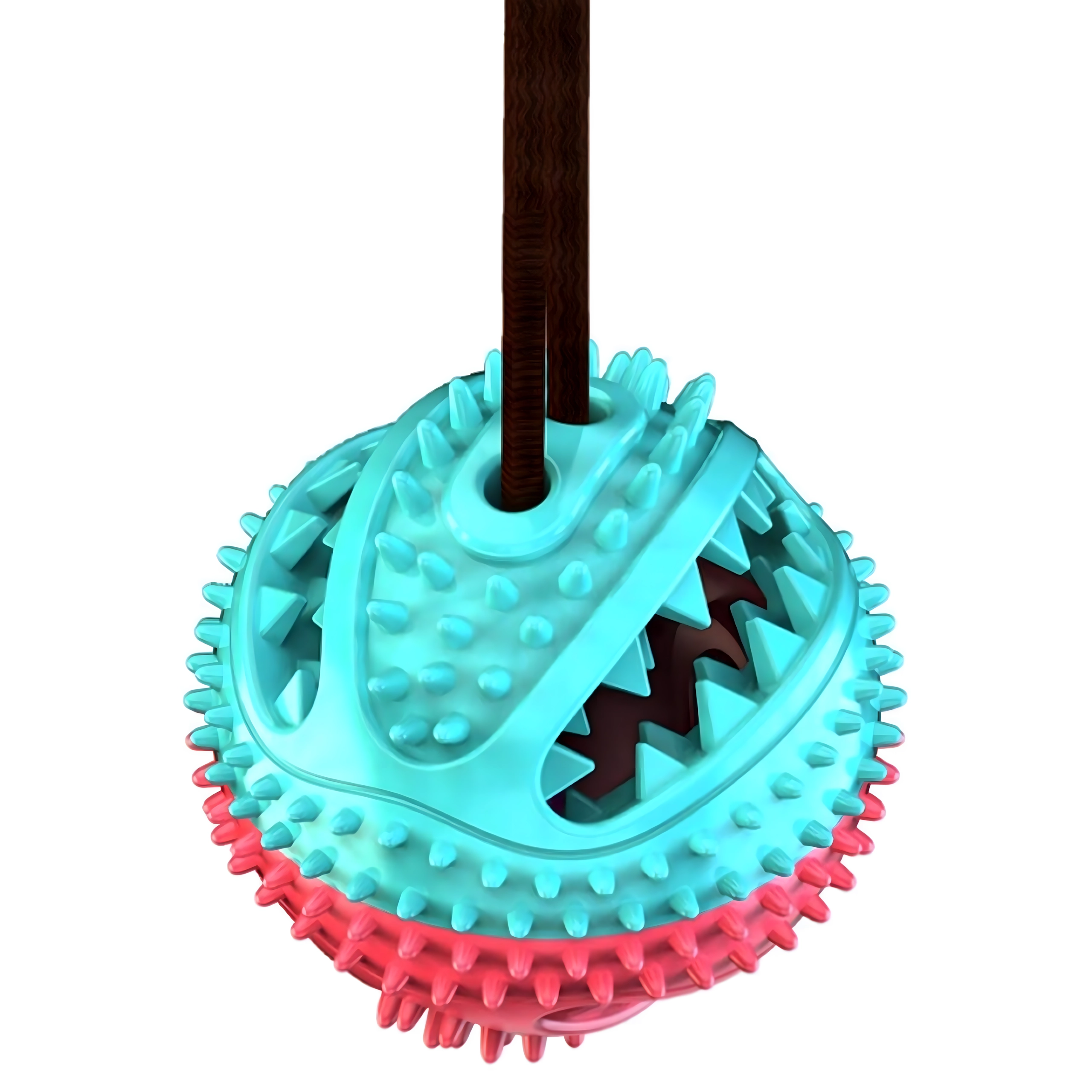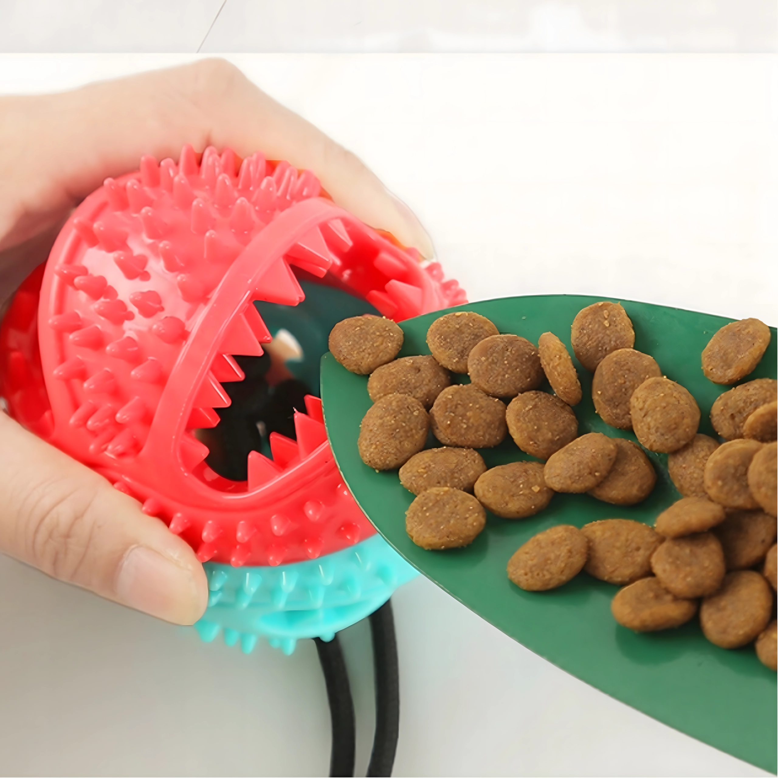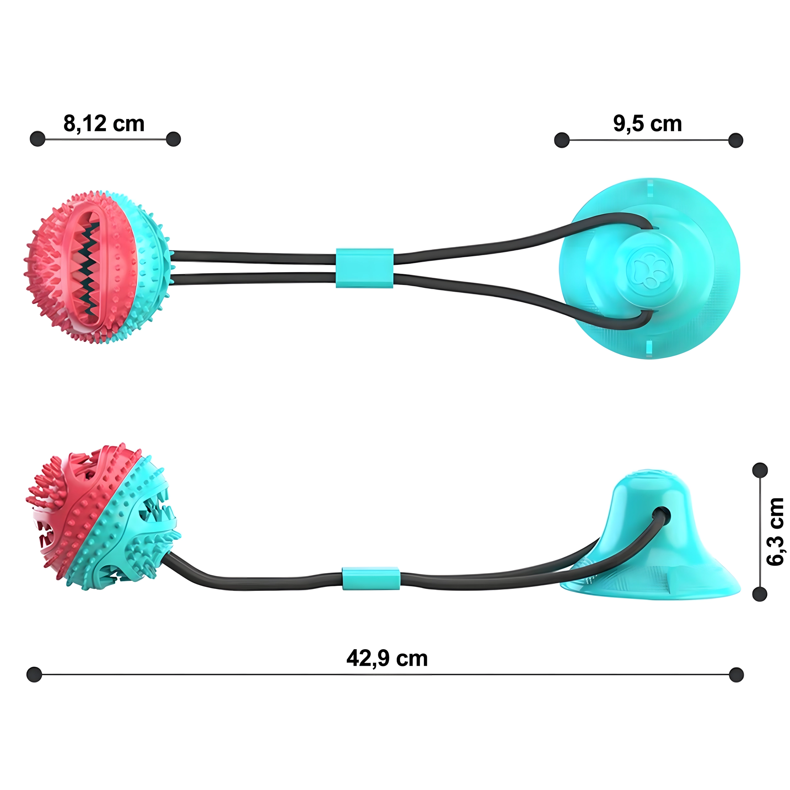 Tato interaktivní hračka s přísavkou kombinuje pamlskový míček s lanem pro tahání a žvýkání. Přísavku snadno upevníte na hladký povrch a pes si může bezpečně hrát i bez vaší asistence. Spiky struktura míčku pomáhá při každém kousnutí redukovat zubní plak a pečovat o dásně. Otvor na pamlsky podporuje pomalejší příjem krmiva a prodlužuje zábavu.