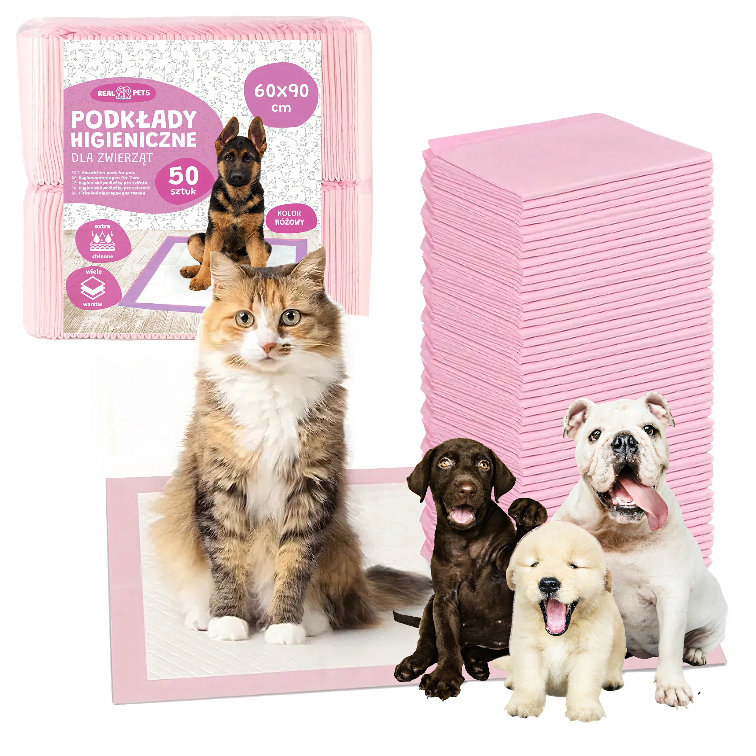 Praktické hygienické podložky pro domácí mazlíčky, které udrží váš domov čistý a svěží. Nabízejí spolehlivou ochranu proti protečení, jsou měkké a pohodlné pro psa i kočku a díky rozměru 60 × 90 cm pokryjí větší plochu. Ideální pro nácvik hygieny, štěňata, seniory i cestování.
