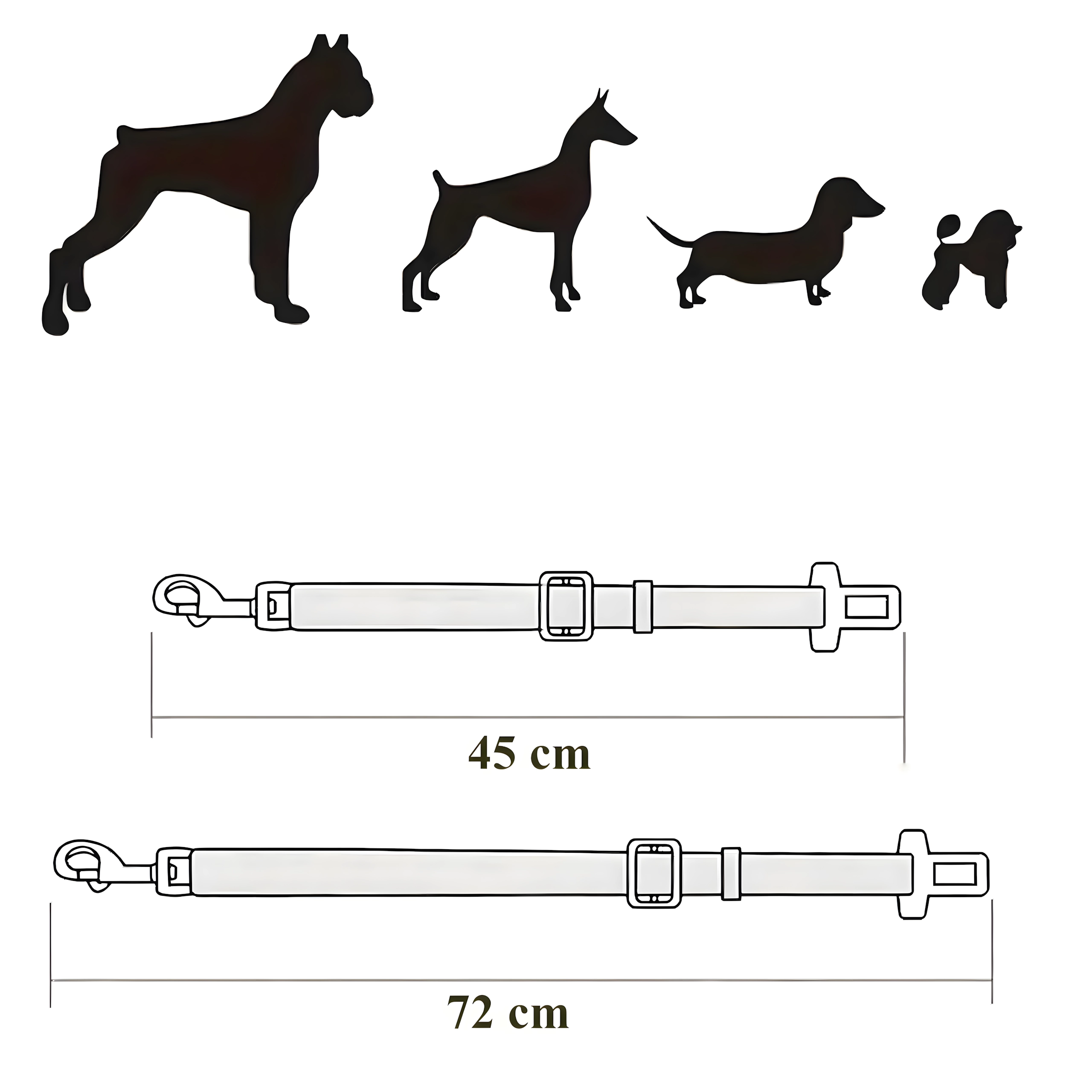 Zajistěte svému mazlíčkovi bezpečnou jízdu autem díky praktickému bezpečnostnímu pásu se standardní automobilovou přezkou a otočnou karabinou. Pás se snadno připne k postroji a do zámku pásu, má plynulou regulaci délky 45–72 cm a je vyroben z odolného nylonu pro dlouhou životnost. Ideální pro každodenní cestování – bezpečné připoutání, univerzální kompatibilita a rychlé použití.