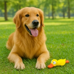 Pískací gumový kuřák o délce 22 cm je univerzální hračka pro každodenní zábavu doma i venku. Jasně žlutá barva s oranžovým zobákem a tlapkami je dobře viditelná v trávě i na podlaze a pískátko uvnitř spolehlivě povzbudí každého mazlíčka ke hře.