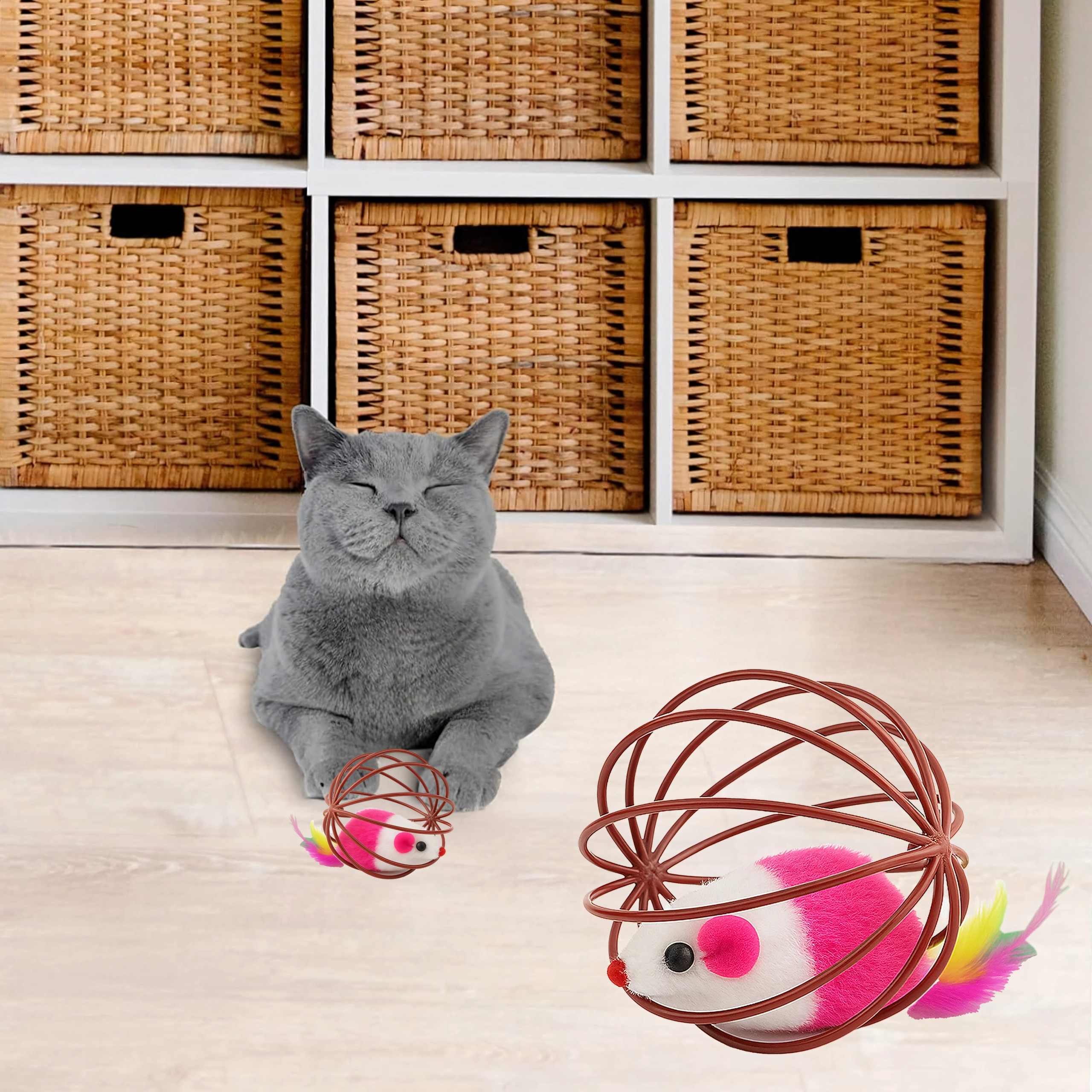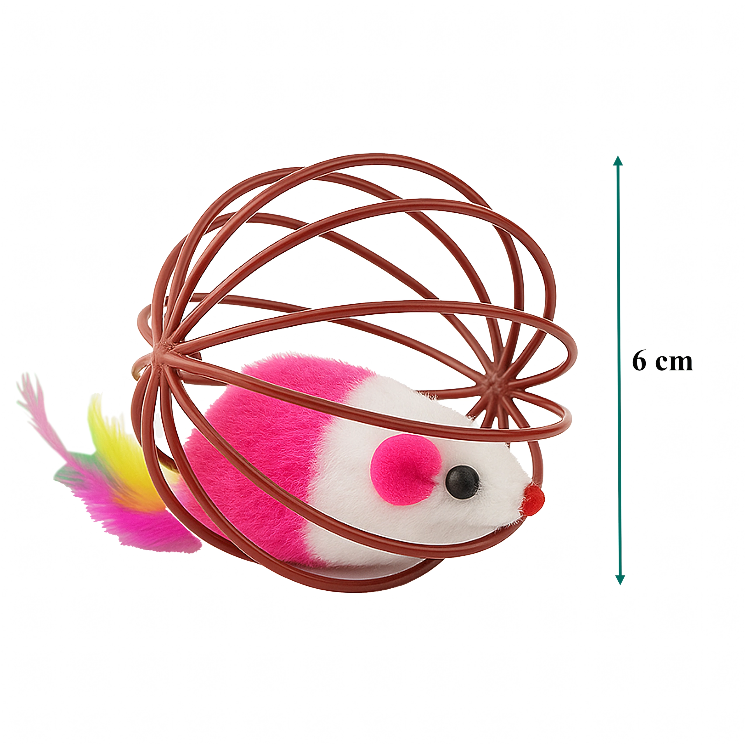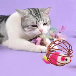Díky odolné drátěné konstrukci se hračka snadno odvaluje, ale myška zůstává bezpečně uvnitř. Otevřená struktura umožňuje kočce hračku dobře uchopit a posouvat, zatímco měkký plyš a pírka poskytují atraktivní textury. Skvělá volba pro samostatnou i interaktivní hru s majitelem.