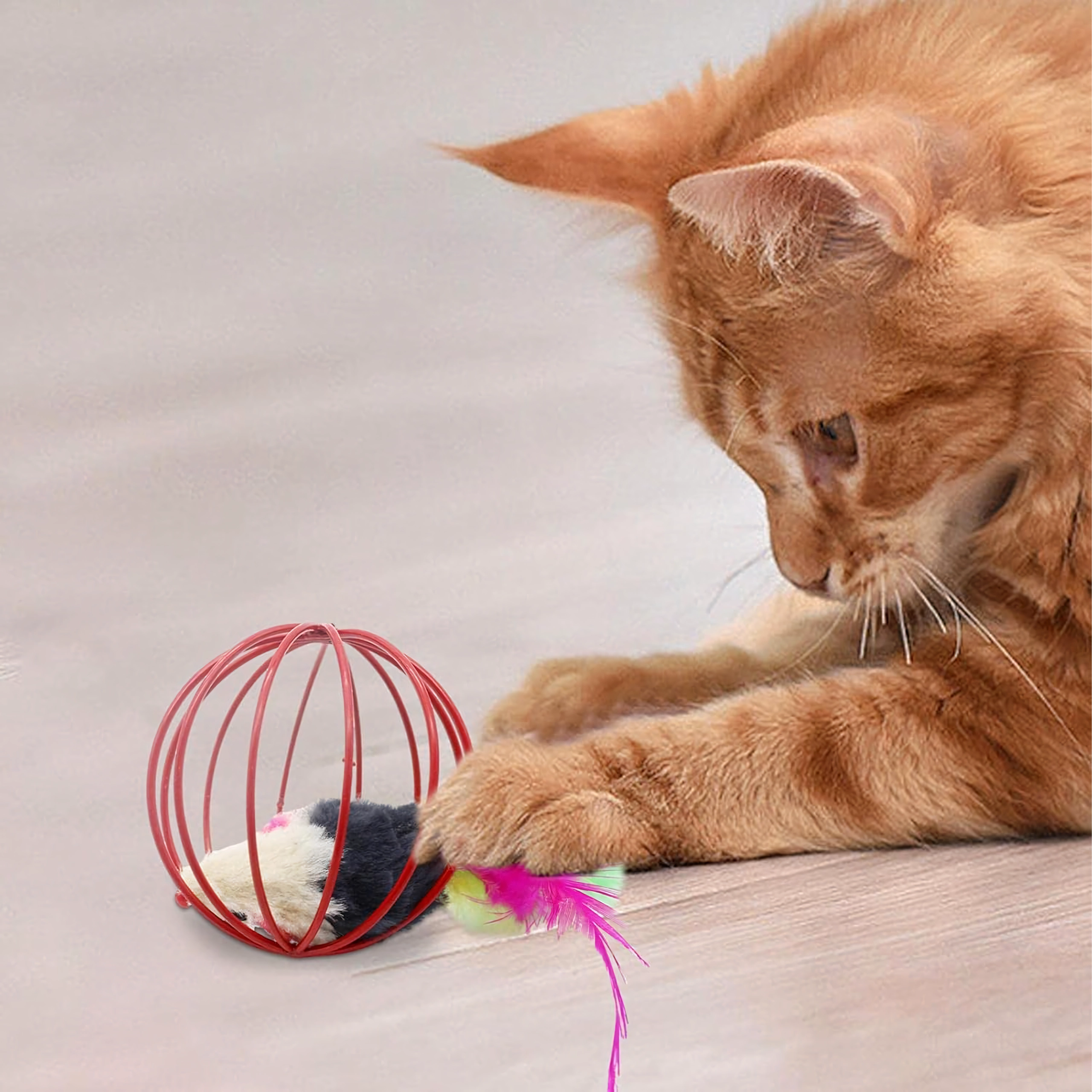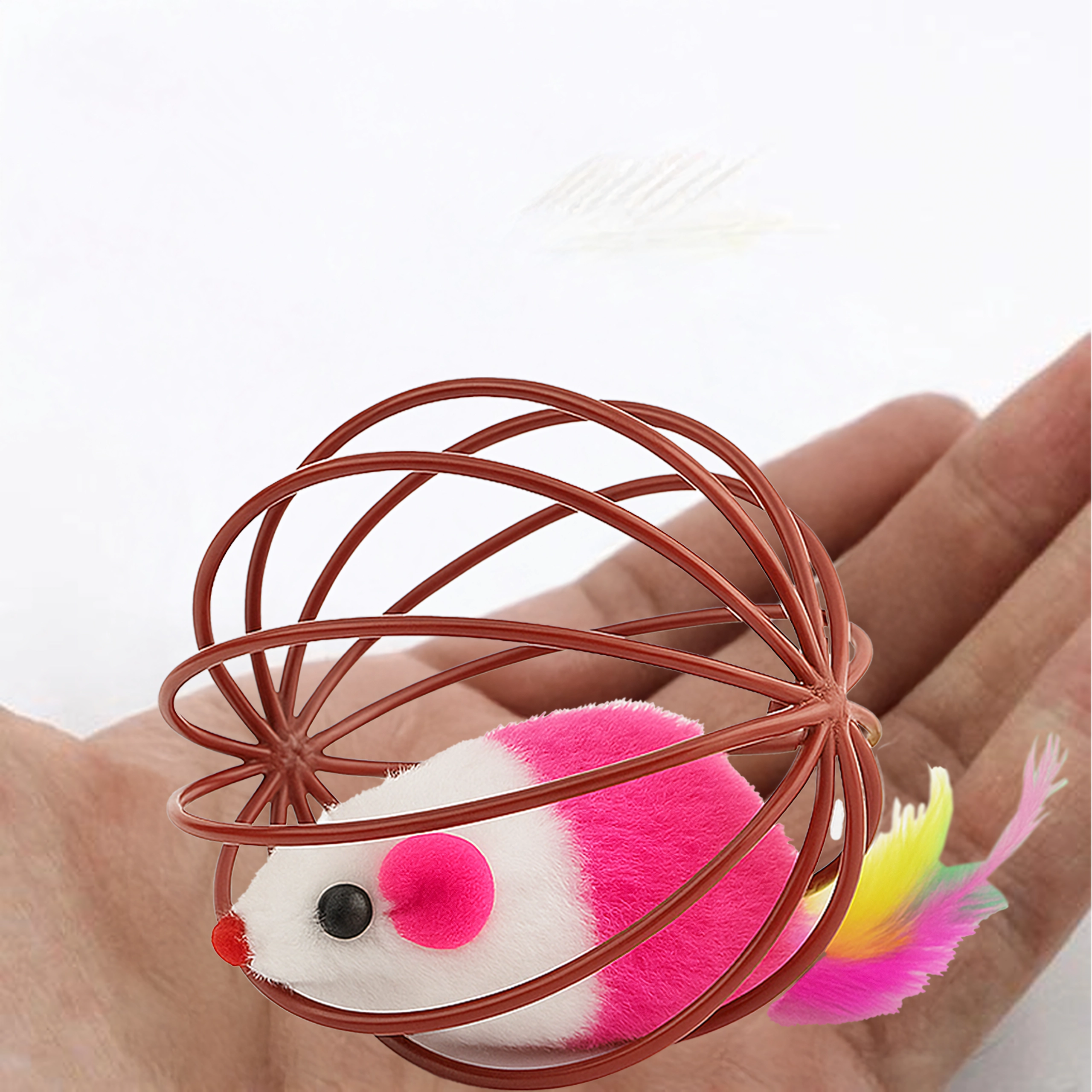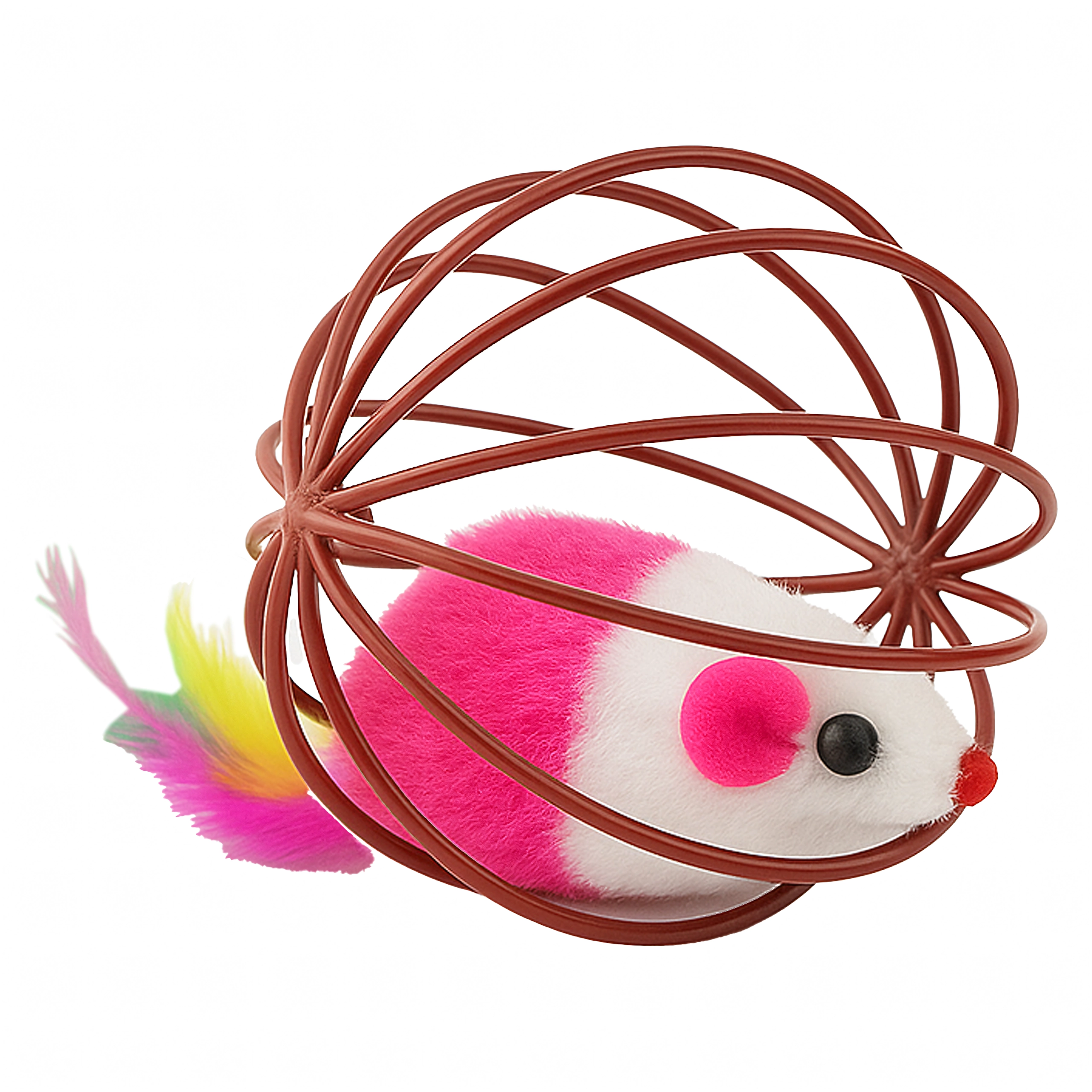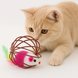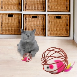Tato chytrá hračka kombinuje lehkou drátěnou kouli, která se hladce kutálí po podlaze, s plyšovou myškou uvnitř. Při pohybu myška jemně chrastí a barevná pírka dále lákají kočku k pronásledování, tlapkování a lovu. Ideální pro koťata i dospělé kočky, které potřebují vybít energii a podpořit přirozené chování.