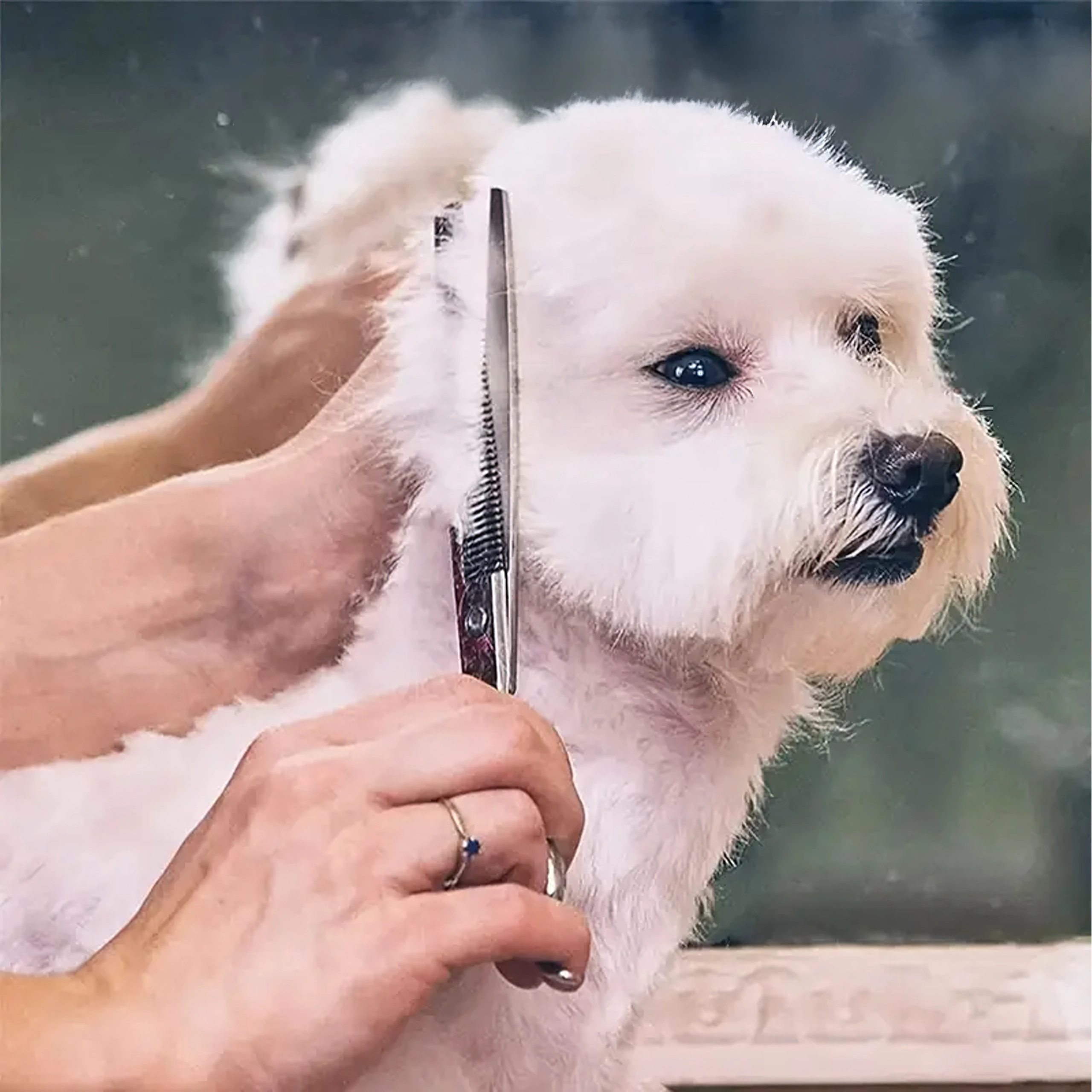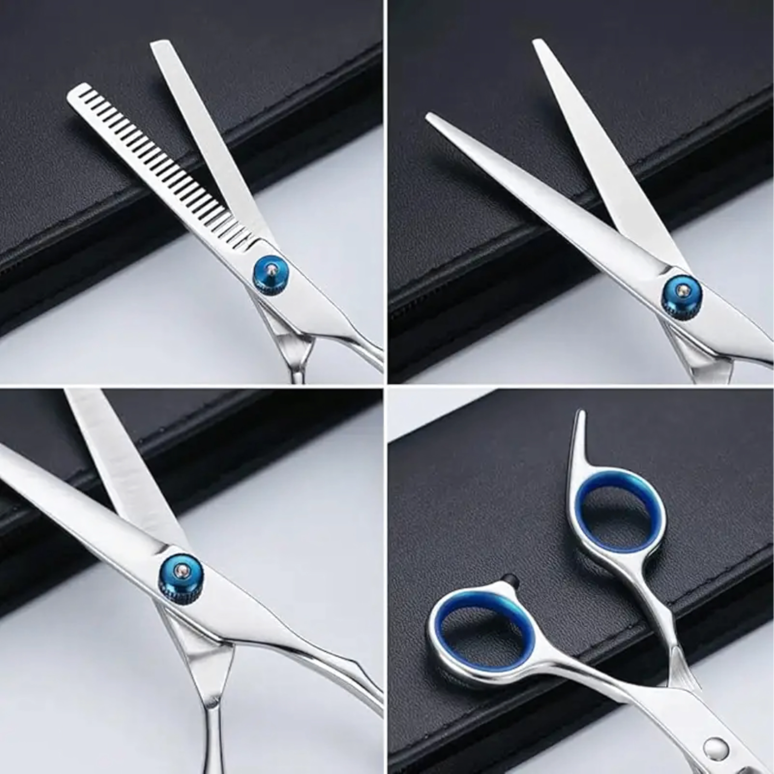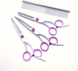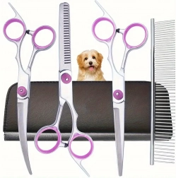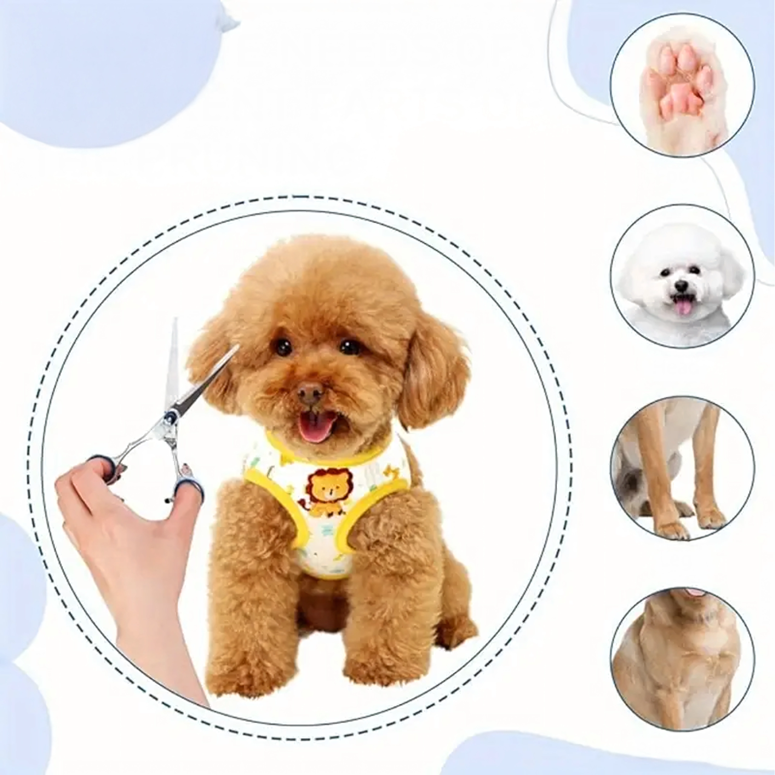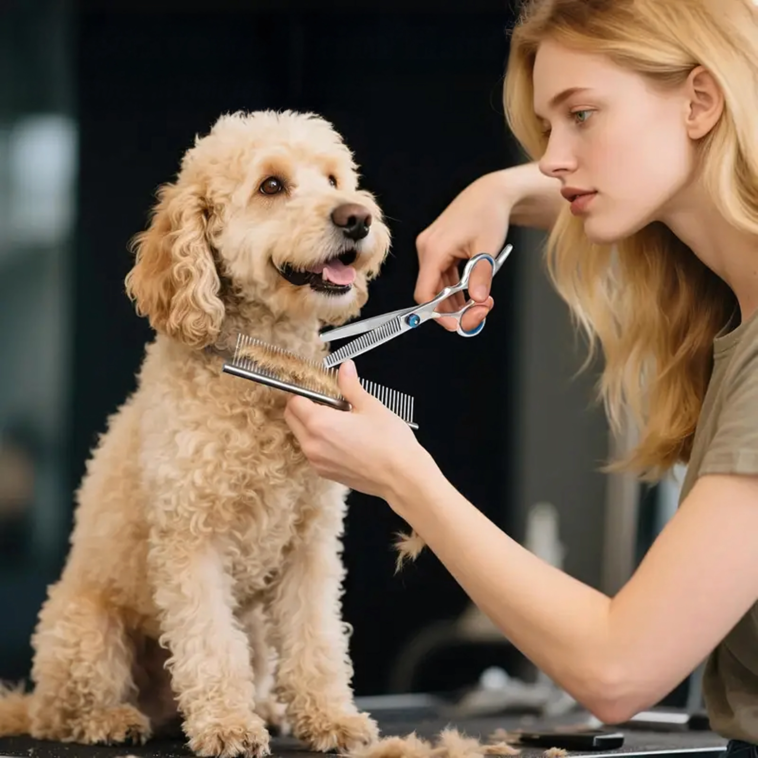 Tato univerzální groomingová sada je navržená pro přesné tvarování, ztenčování i dokončovací úpravy srsti psů a koček. Nerezová ocel zaručuje dlouhou životnost, čistý střih a snadnou údržbu. Díky ergonomickým kroužkům prstů a opěrkám je práce pohodlná i při delším používání.
