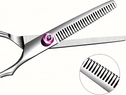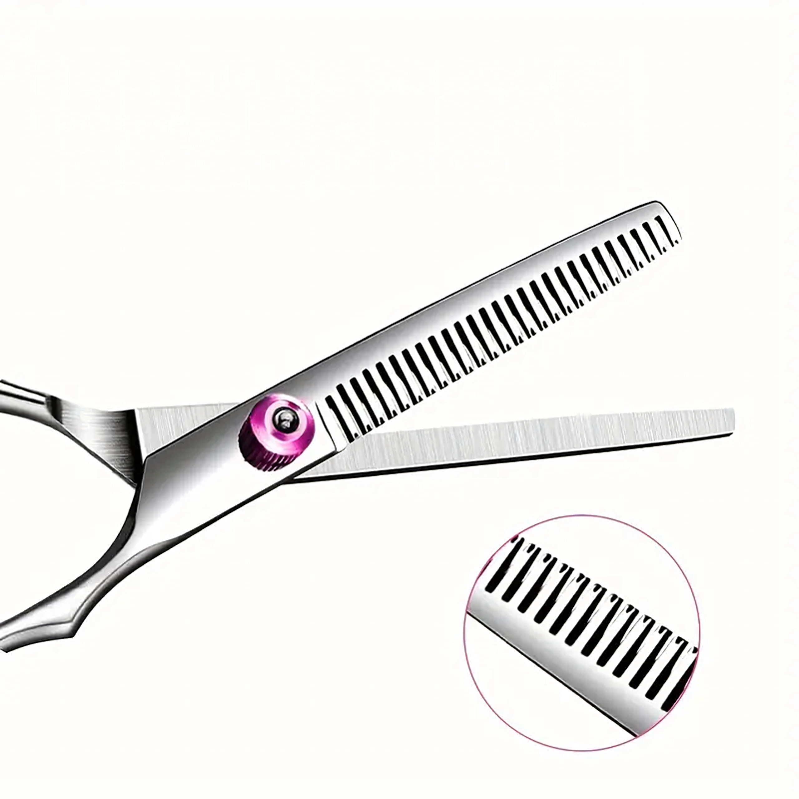 Efilační nůžky s jemnými zuby plynule redukují objem a změkčují přechody, ideální pro přirozený vzhled bez tvrdých linií.
