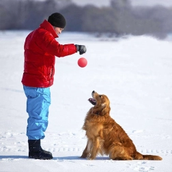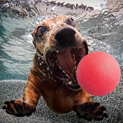 Díky schopnosti plavat je míček perfektní na aportování u jezera či bazénu. Jasná barva usnadňuje dohledání.