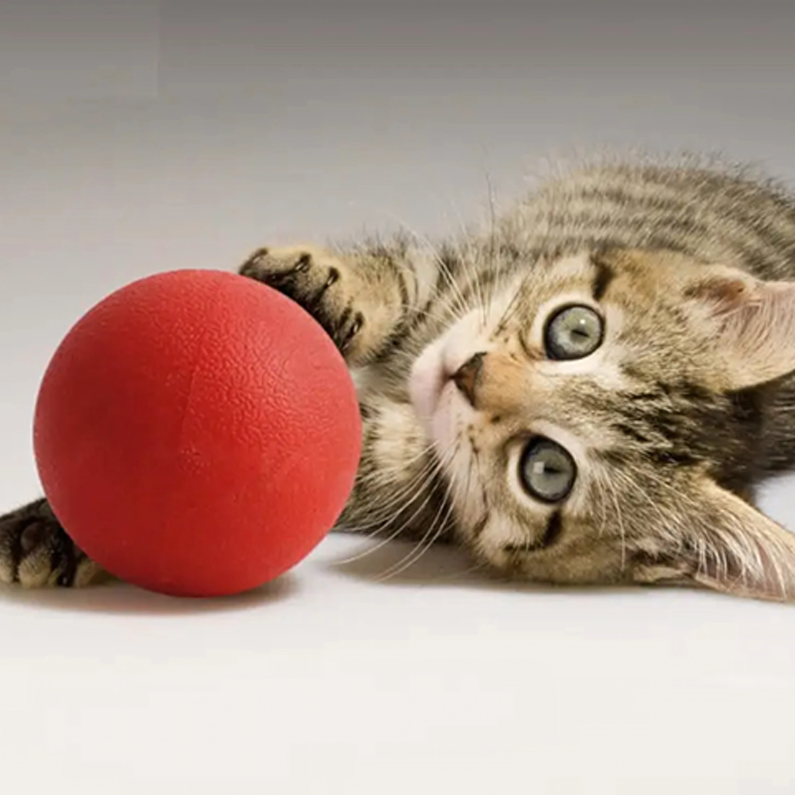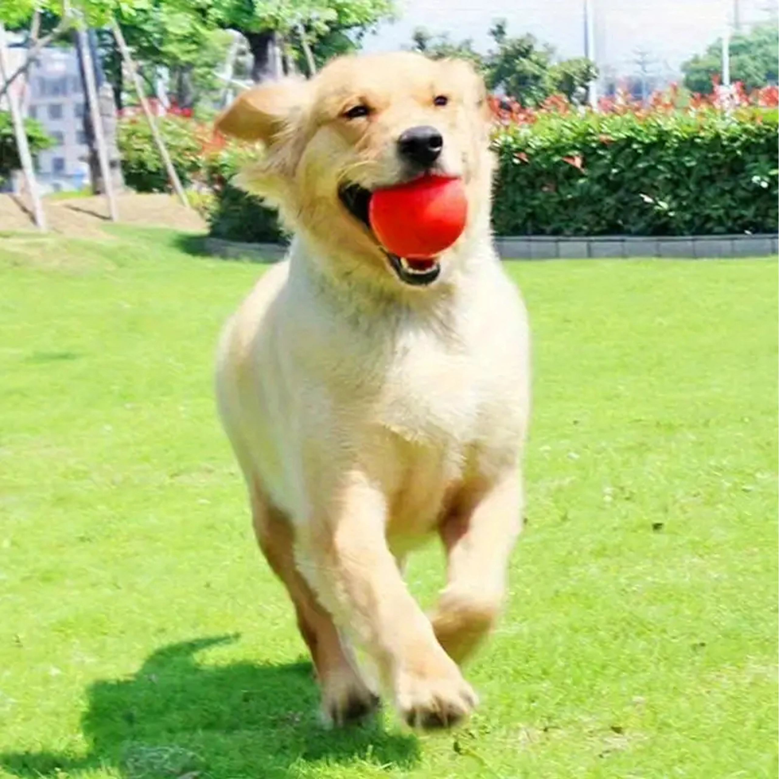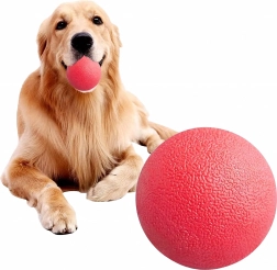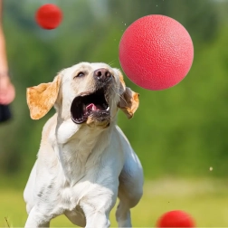Univerzální psí míček o průměru 6 cm z plné gumy pro každodenní zábavu. Je odolný proti kousání, bezpečný pro zuby a dásně, lehce plave na vodě a během hry pomáhá čistit zuby. Skvělý pro aportování doma, na zahradě i u vody.