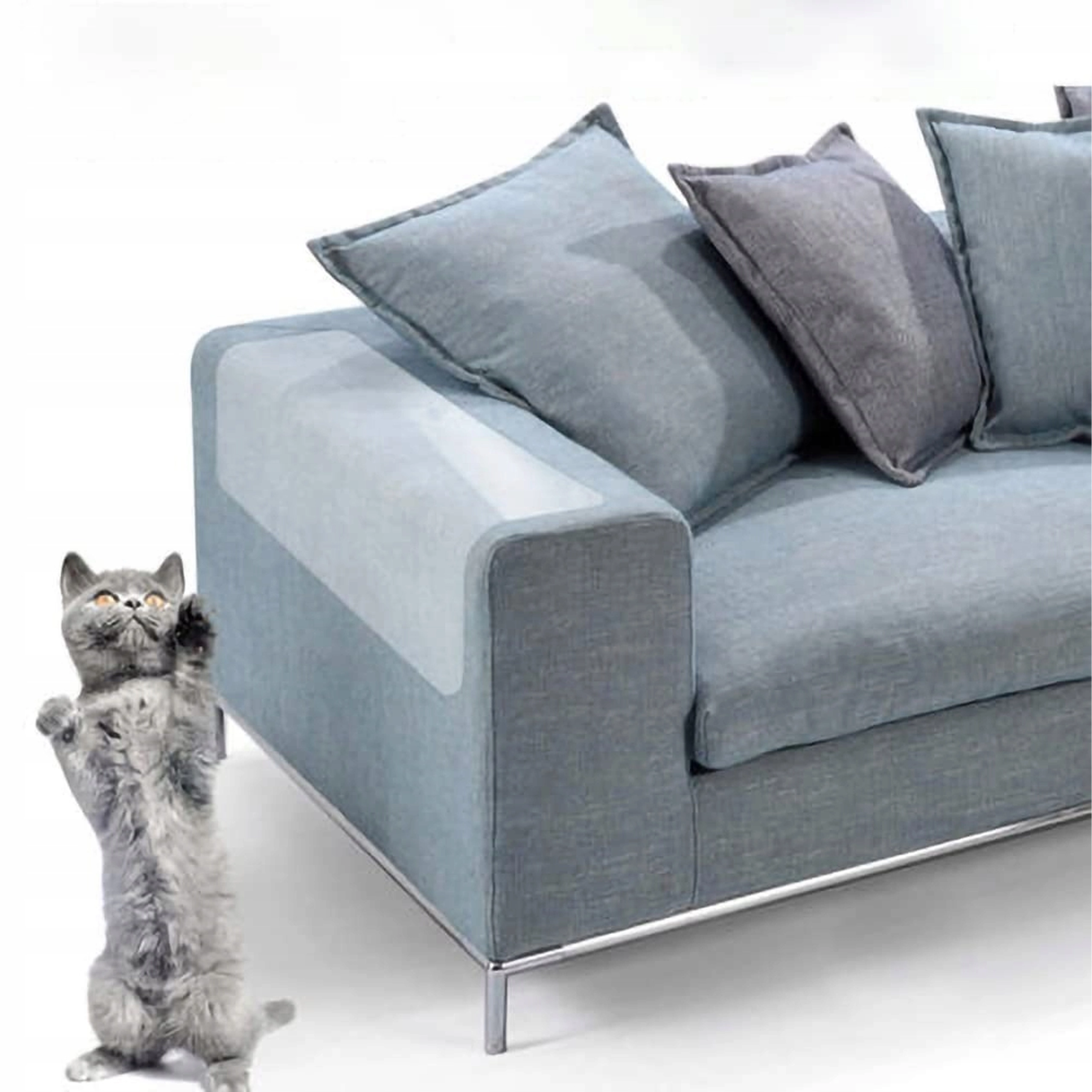 Transparentní fólie splyne s povrchem nábytku a účinně zastaví kočičí drápky bez narušení designu vašeho interiéru.