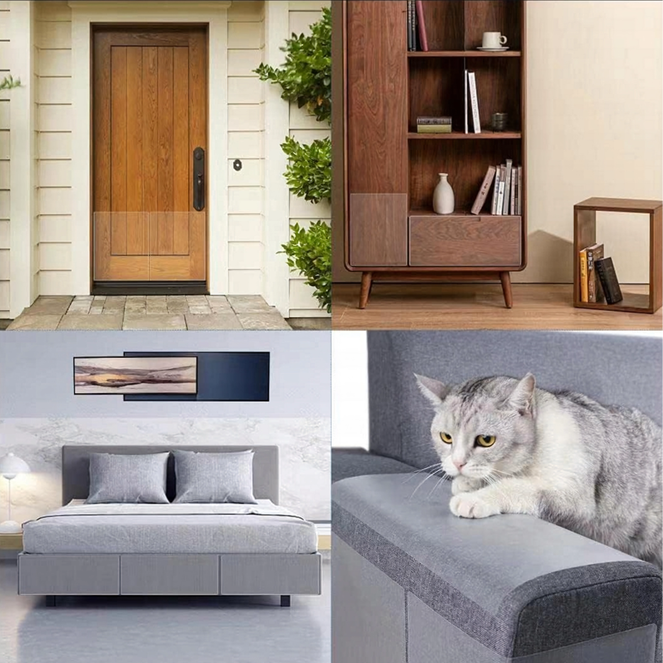 Díky flexibilnímu materiálu dokonale přilne k rovným i lehce zakřiveným plochám. Ochrání čalouněný nábytek, dveře, rámy postelí i dřevěný nábytek, přičemž zachová vzhled interiéru. Fólie je odolná, omyvatelná a při správné aplikaci drží pevně, přesto ji lze šetrně sejmout a znovu použít.