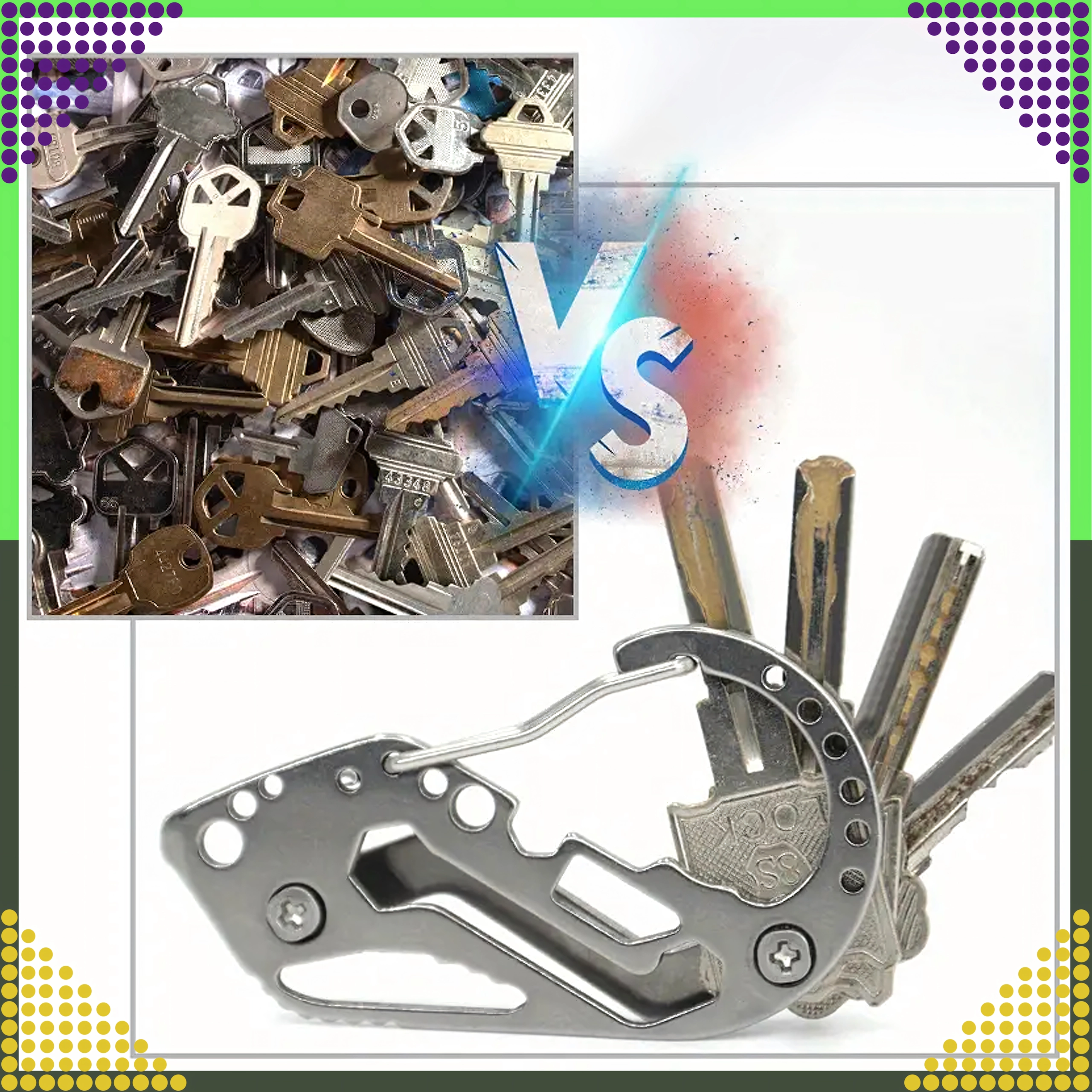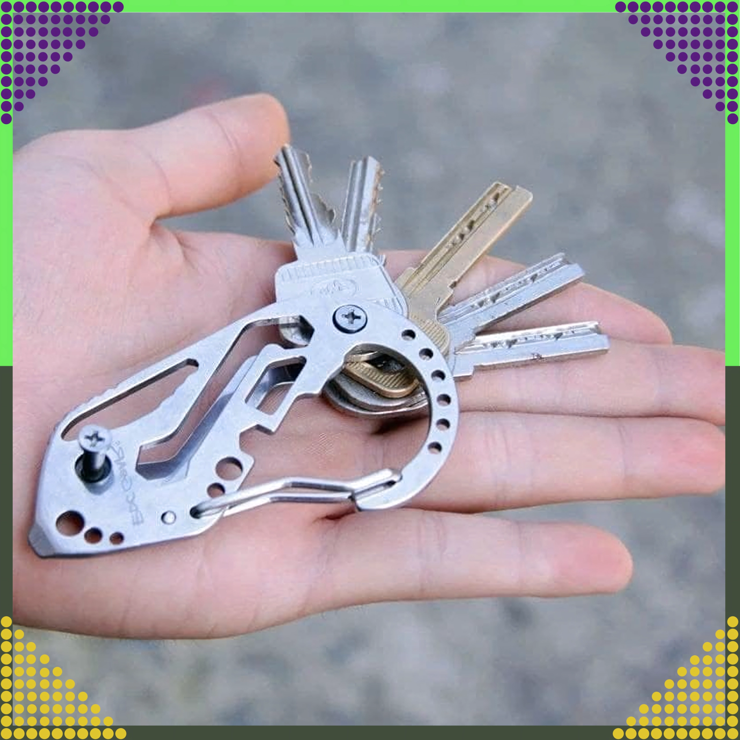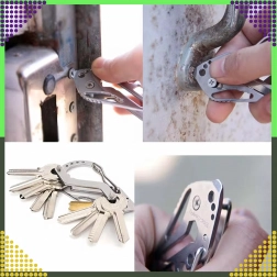Mějte své klíče vždy přehledně po ruce a zároveň získejte praktické nářadí v jednom. Tento kompaktní multi‑tool s karabinou z nerezové oceli nabízí až pro 8 klíčů a integrované nástroje jako šroubovák, otvírák lahví a více velikostí klíčů. Pevná konstrukce, rychlé připnutí k pásku či batohu a univerzální využití v každodenních i outdoorových situacích.